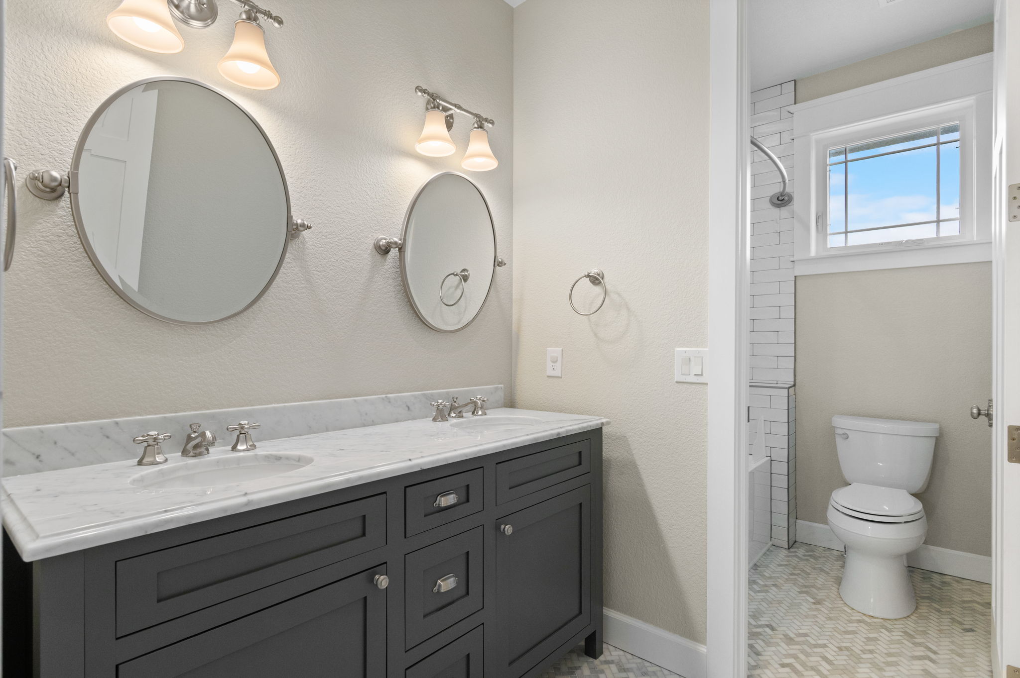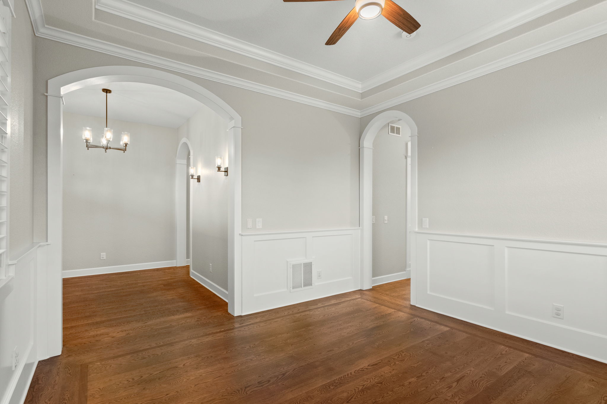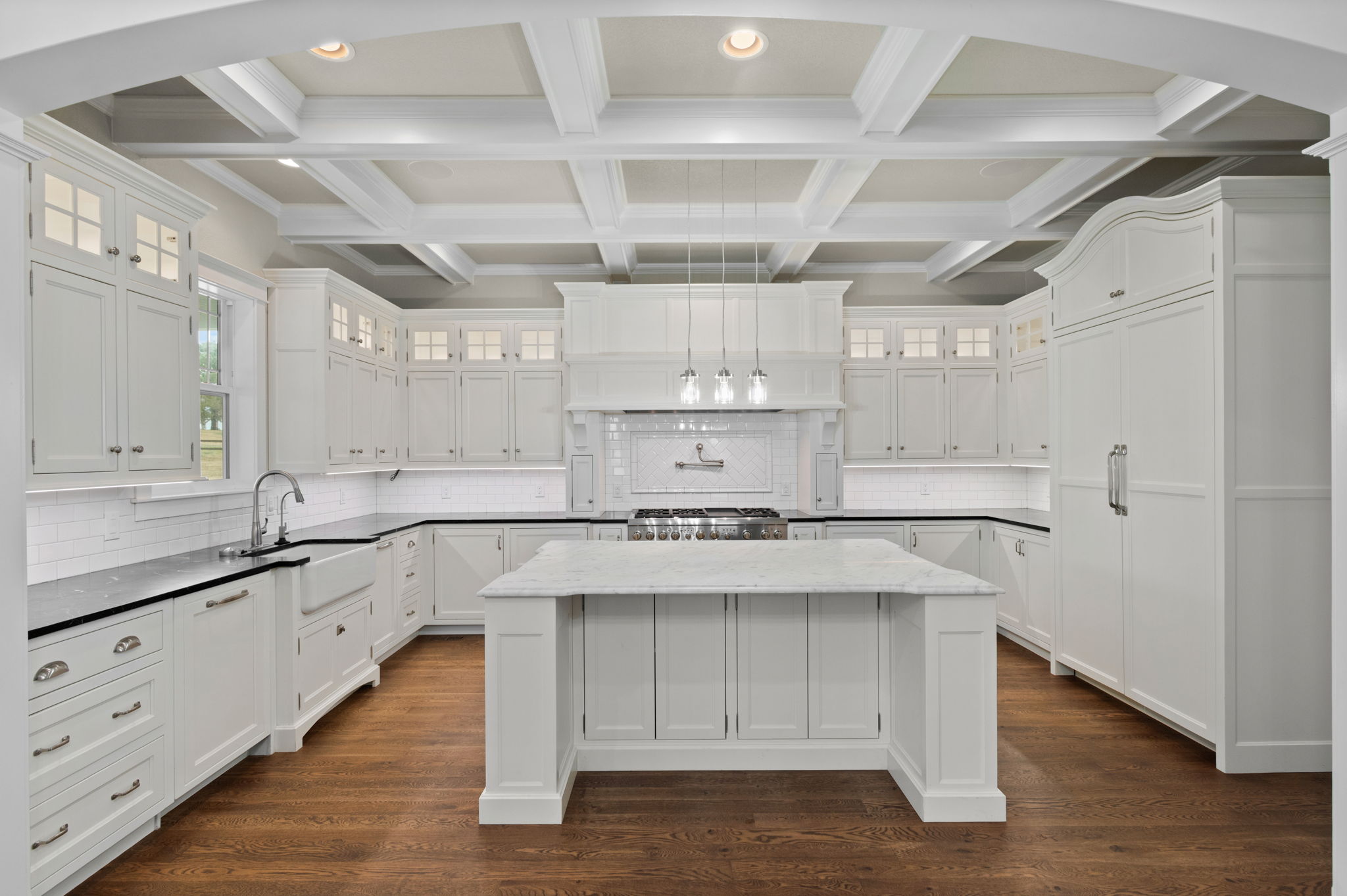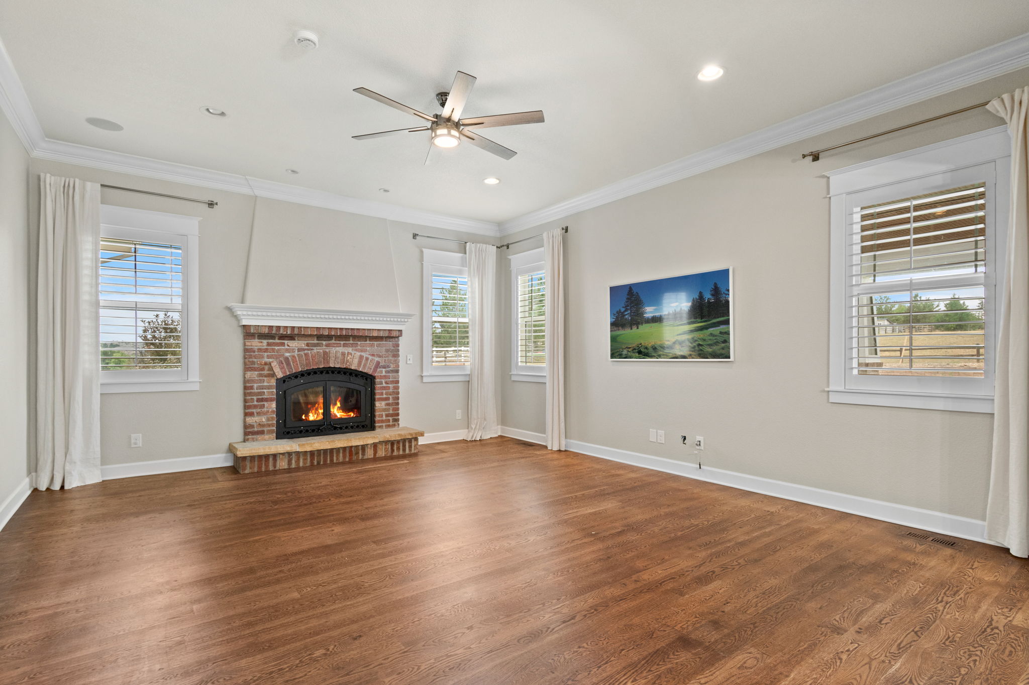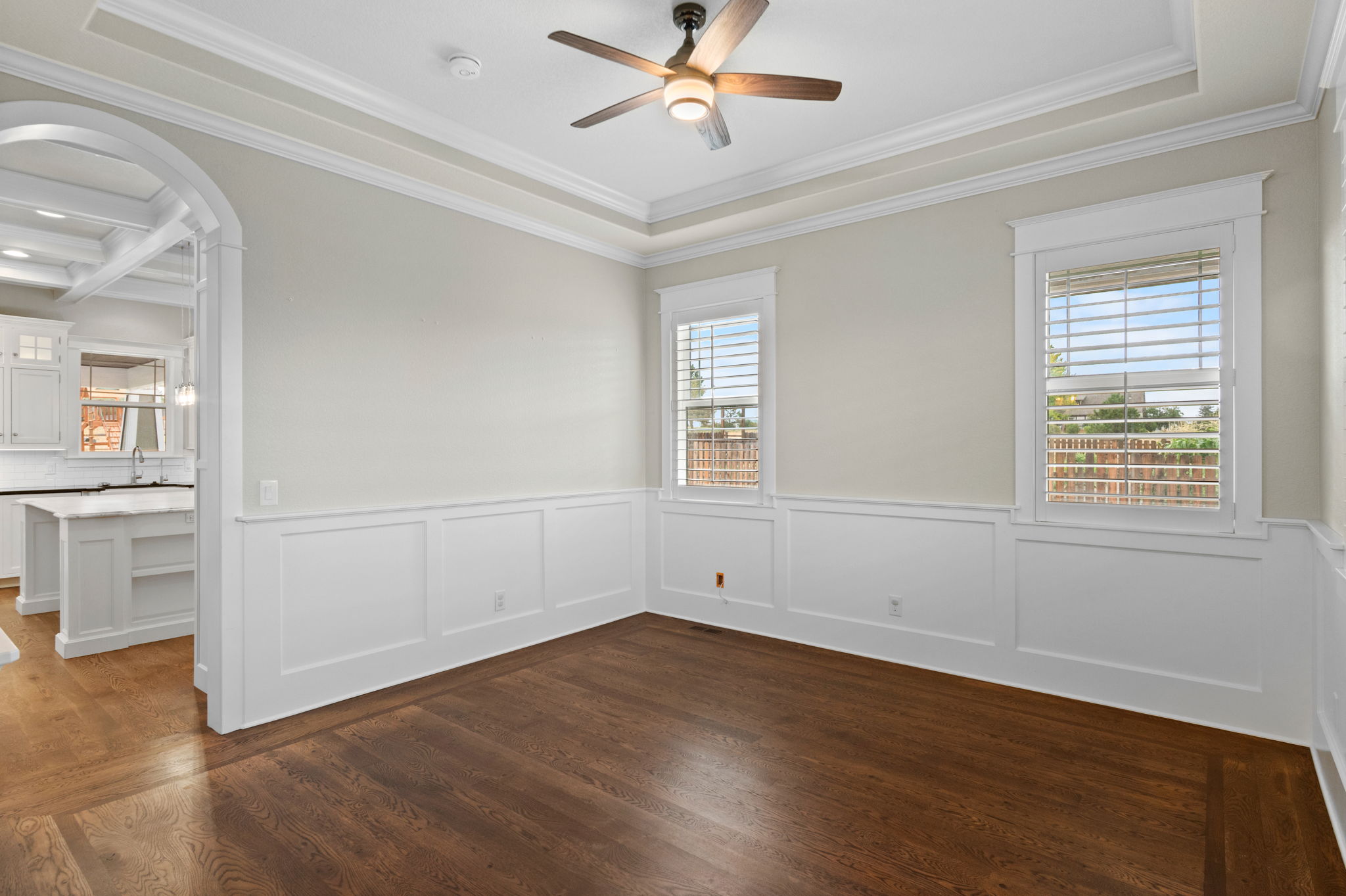 Truly extraordinary farmhouse-style two-story custom home on 2 acres in Parker featuring west-facing property on beautifully landscaped flat lot with native shrubs and flowers. Beyond alder wood front door, discover arched doorways and gleaming espresso-stained oak hardwood floors with walnut inlay, plus millwork that rivals high-end residences. Gourmet kitchen boasts coffered ceiling with top-quality white cabinetry, soapstone counters and marble island, luxury Thermador stainless appliances, 48" six-burner commercial range, and built-in column refrigerator and freezer. Interior highlights include 10' ceilings, plantation shutters, 8' doors, family room with wood-burning fireplace, master retreat with coved ceiling and barn door, plus spa-like en-suite with clawfoot tub, glass shower, marble vanity and Kohler fixtures. Three secondary bedrooms upstairs with California Closets, plus two basement bedrooms with 2024 build-out featuring bar with wine cooler and Control4 automation movie theater with surround sound. Energy features include triple-pane windows, spray foam insulation, private well (no water costs), sixteen raised cedar garden beds, clothesline, firewood shed, and chicken coop. Outdoor living includes covered patio and fire pit area with room for outbuildings within fenced 2 acres plus three-car garage. Property offers reduced utilities, lower carbon footprint, and benefits for sustainable luxury living.