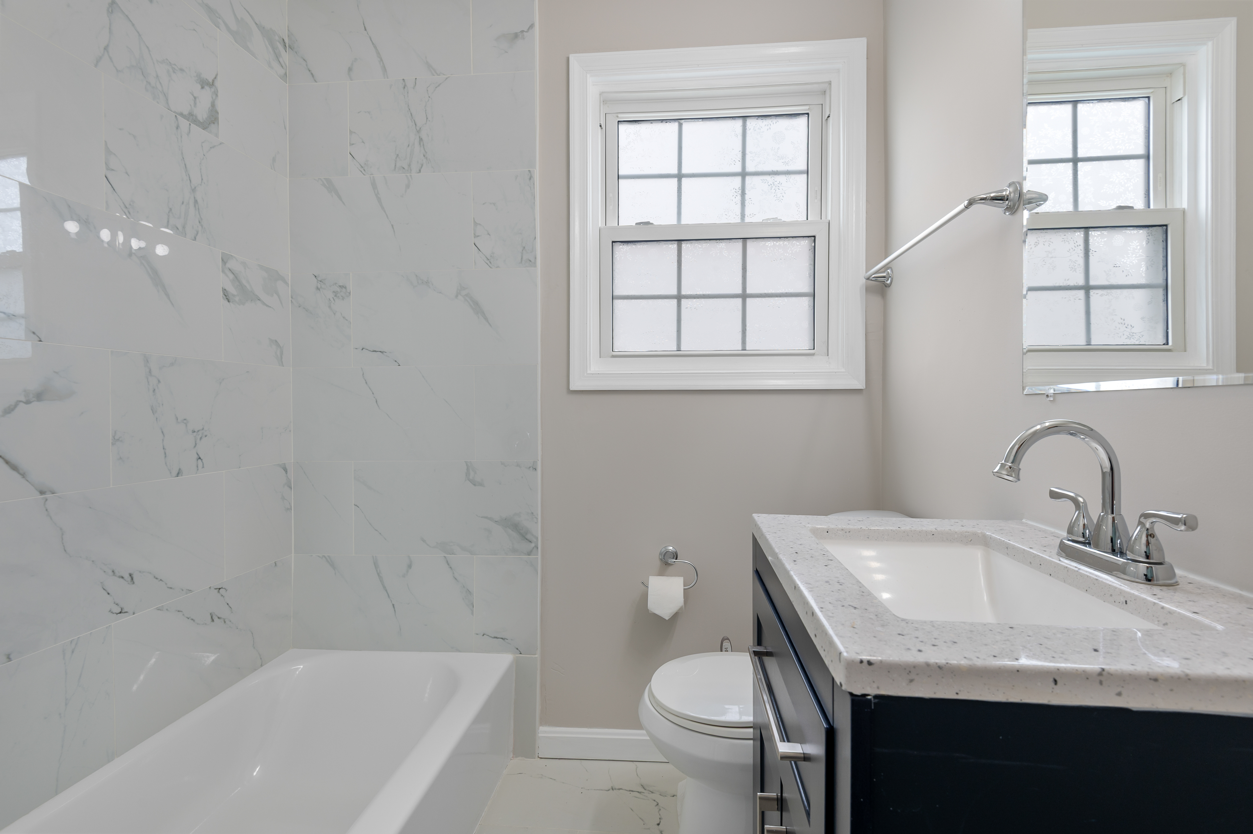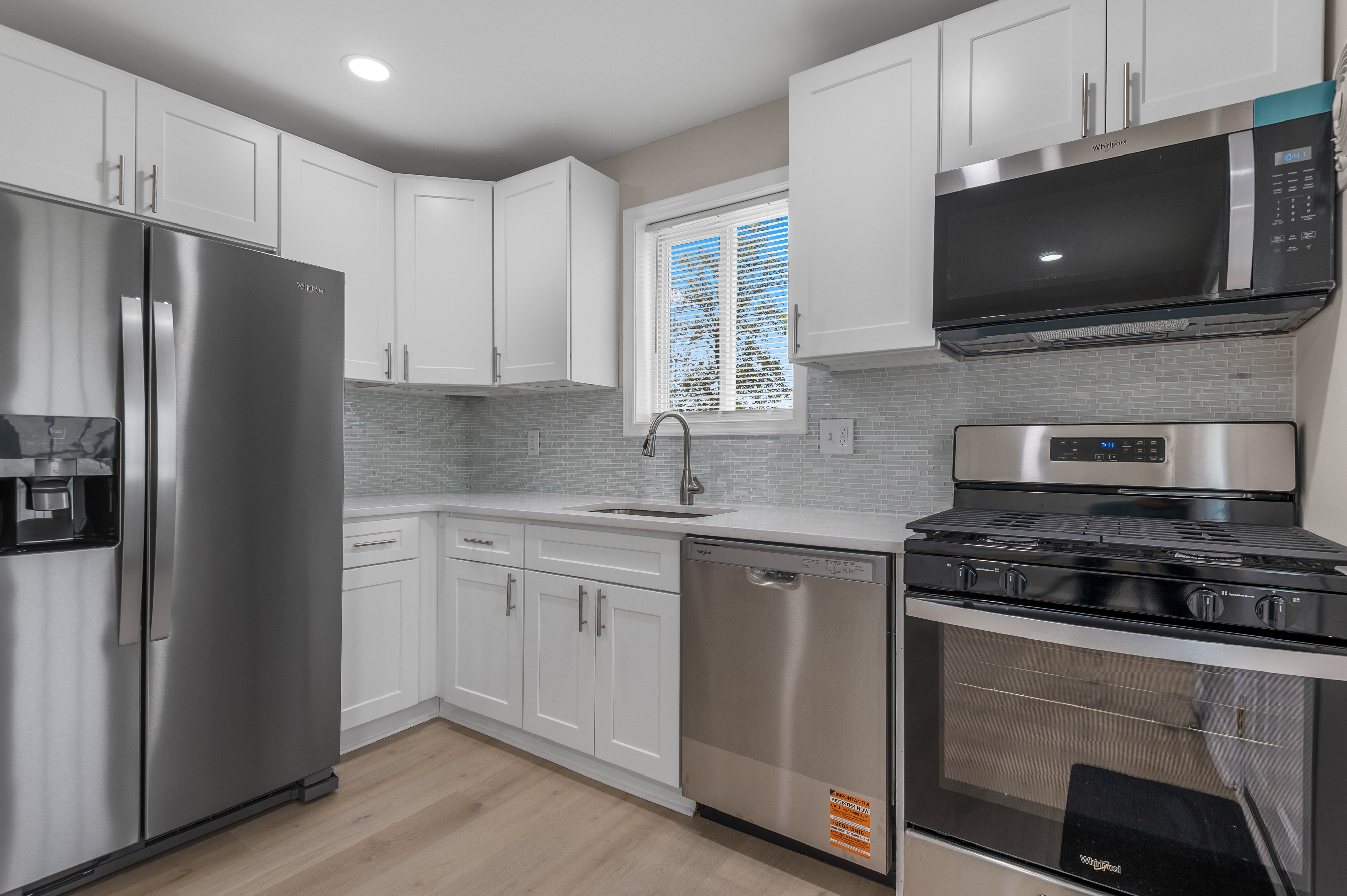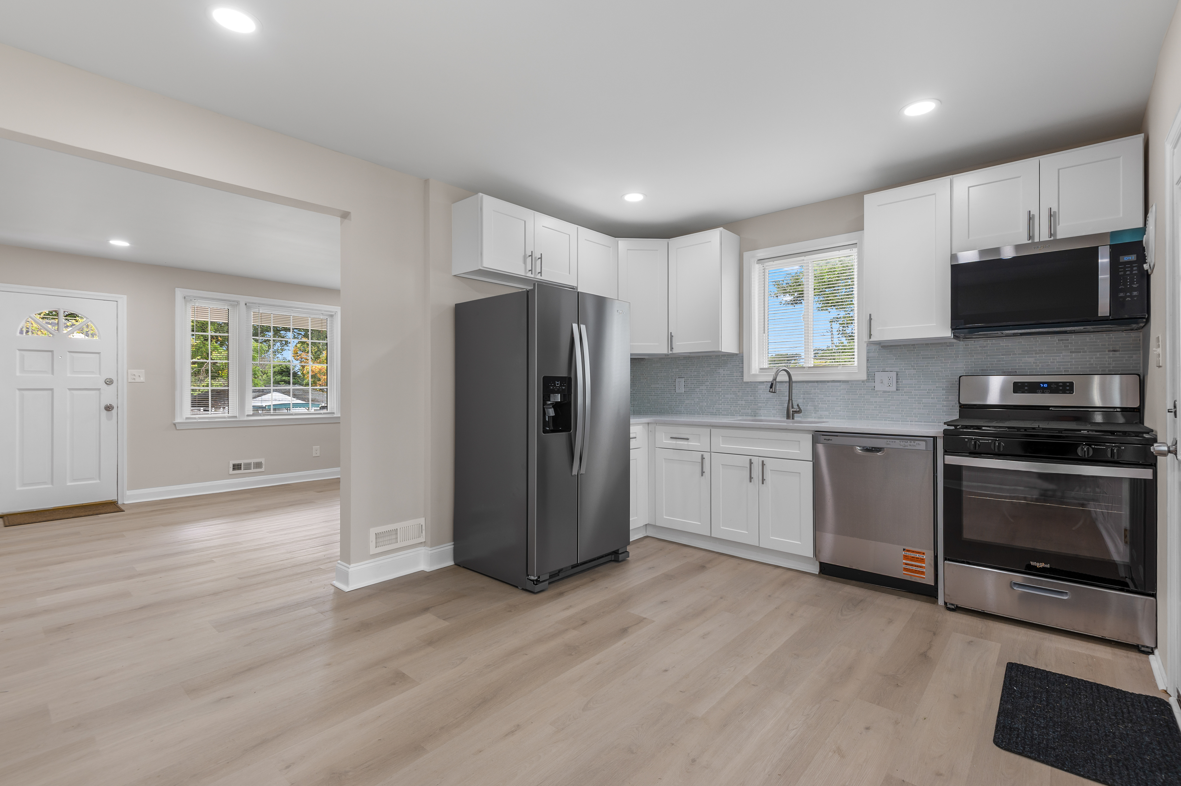A gorgeous newly updated 5 bedroom 3 full bath home with driveway. This private home greets you with an open floor , a gourmet kitchen with new SS appliances and quarts counter tops . Fully finished basement with additional bedroom, bath and large recreation room. Huge back yard is ready for you to shape it as you like. House has new roof, appliances and many more updates..move in ready.