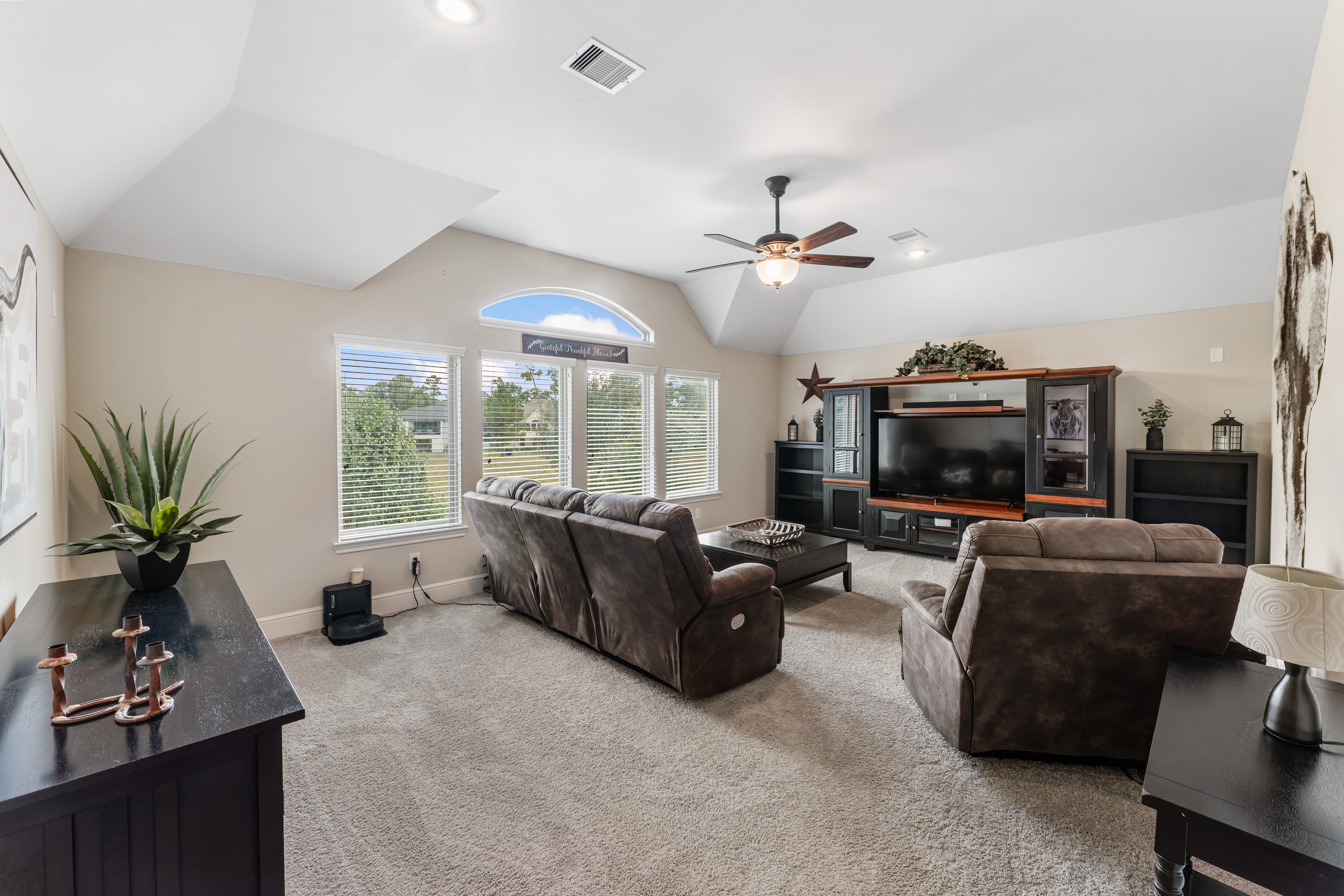 Located in gated community of Alden Woods, this exceptional residence combines timeless elegance with modern amenities. Built in 2019 on an oversized 75’ lot (.25 acre), the home offers refined living in a warm, neighborly setting with no houses in front or behind and direct access to HOA-maintained green space.