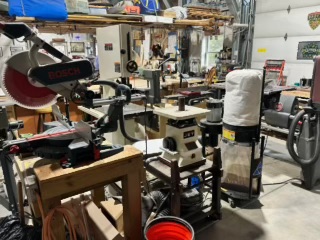 Most contents of home and shop, including all appliances, furniture, decor, fully stocked kitchen, shop equipment, tools, rower, Boflex, and vintage Sansui sound system with 4 Bose 901 speakers.