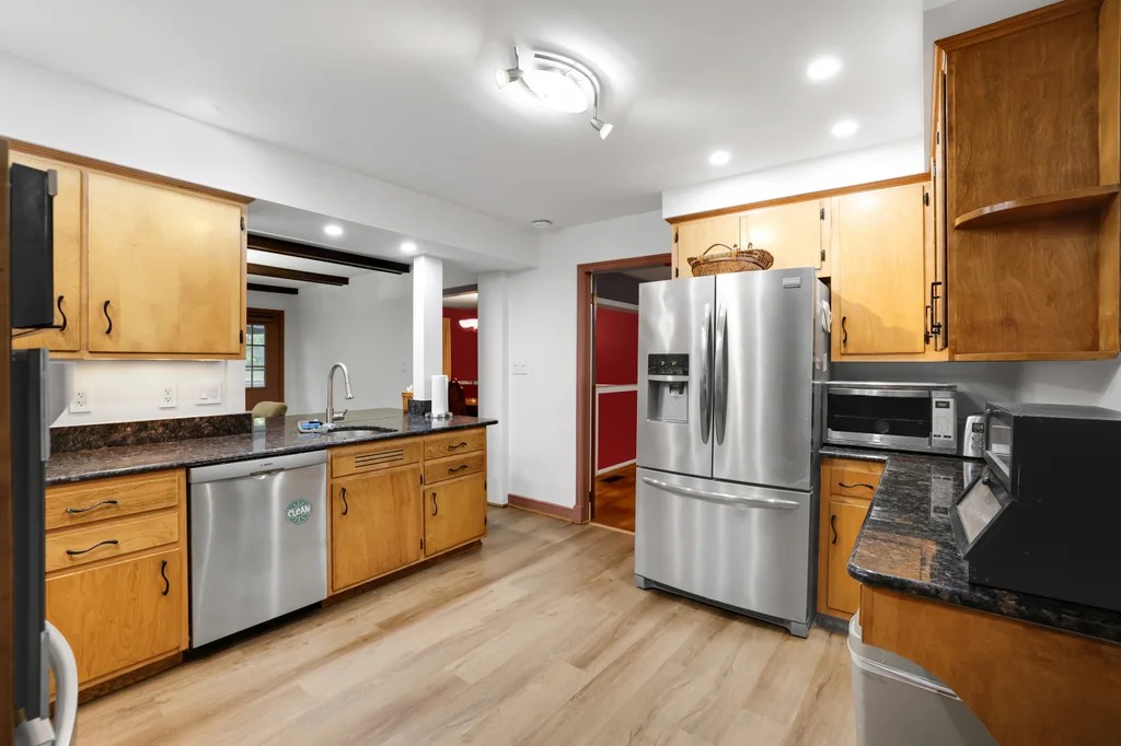 This stunning five-bedroom home, with three full bathrooms offers extraordinary luxury and comfort. The master suite features two generous full sized closets, a vanity, a cozy sitting area, and a fireplace. The library boasts elegant ultra-suede walls and its own fireplace. The kitchen is adorned with granite countertops and new flooring, seamlessly flowing into a charming breakfast room with a pantry and a lovely bay window overlooking the expansive backyard. Enjoy outdoor living with a fenced-in, in-ground swimming pool, measuring approximately 20 by 40 feet, a 12 by 12-foot wooden storage shed, and a Trex deck off the kitchen. The finished basement offers new carpeting, fresh paint, a sink, and ample storage, and is accessible from both inside and outside. The large laundry room includes a double sink and more storage. Your comfort is maximized with a 4-zone HVAC system that serves the entire home as well as the large two-car garage which also has its own dedicated heating, air conditioning, and a pass-through door for easy access. Conveniently located within a mile of the Shady Grove Metro for easy access to Washington D.C., and close to the ICC toll Highway and Interstate 95. Nearby, you'll find Lake Needwood, offering hiking, fishing, and golfing, plus an excellent Candlewood education system. This beautiful home sits on over half an acre. Featuring a line of tall mature trees along the back fence for added privacy and a natural back drop. Come experience it for yourself today.
