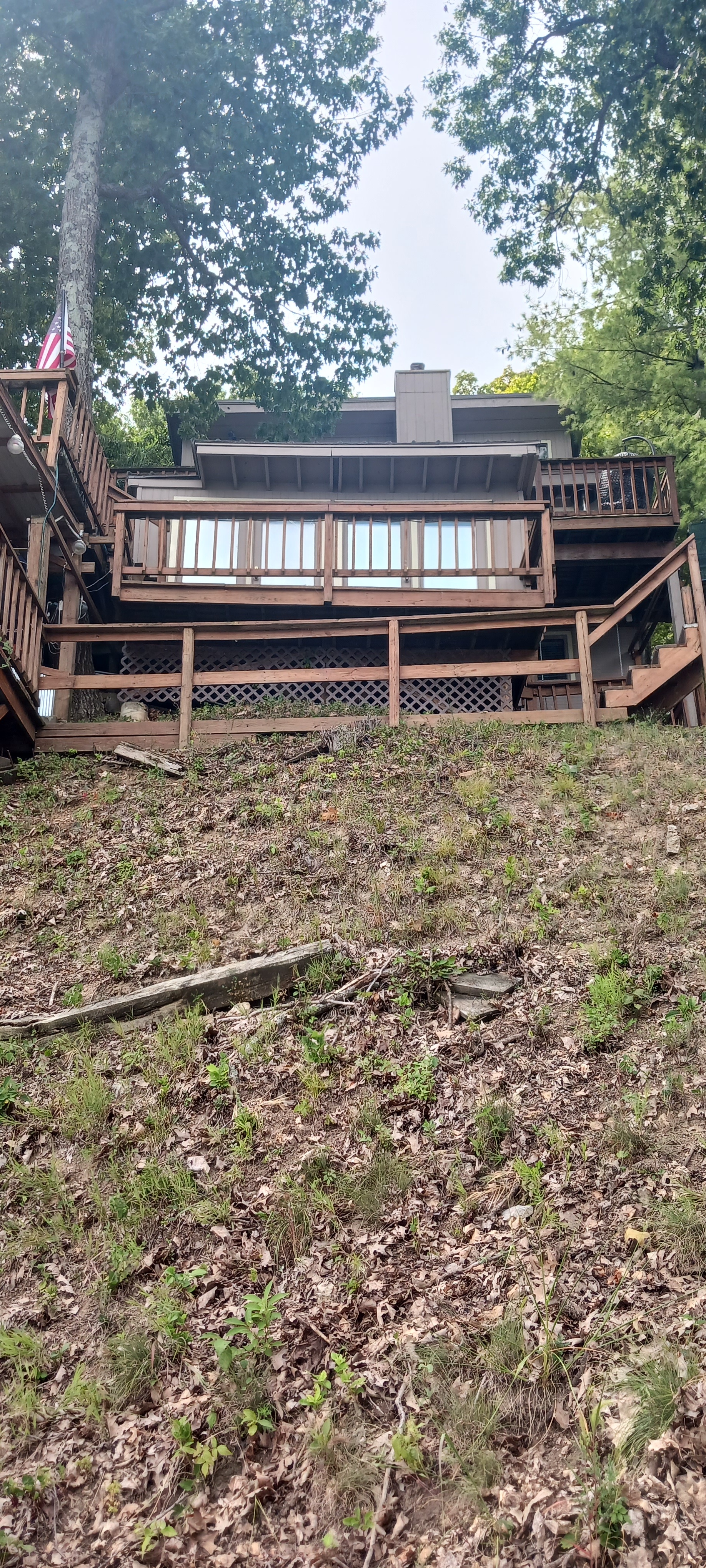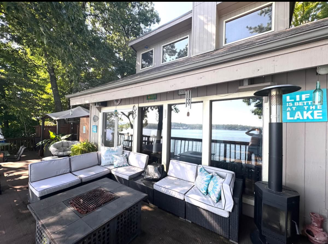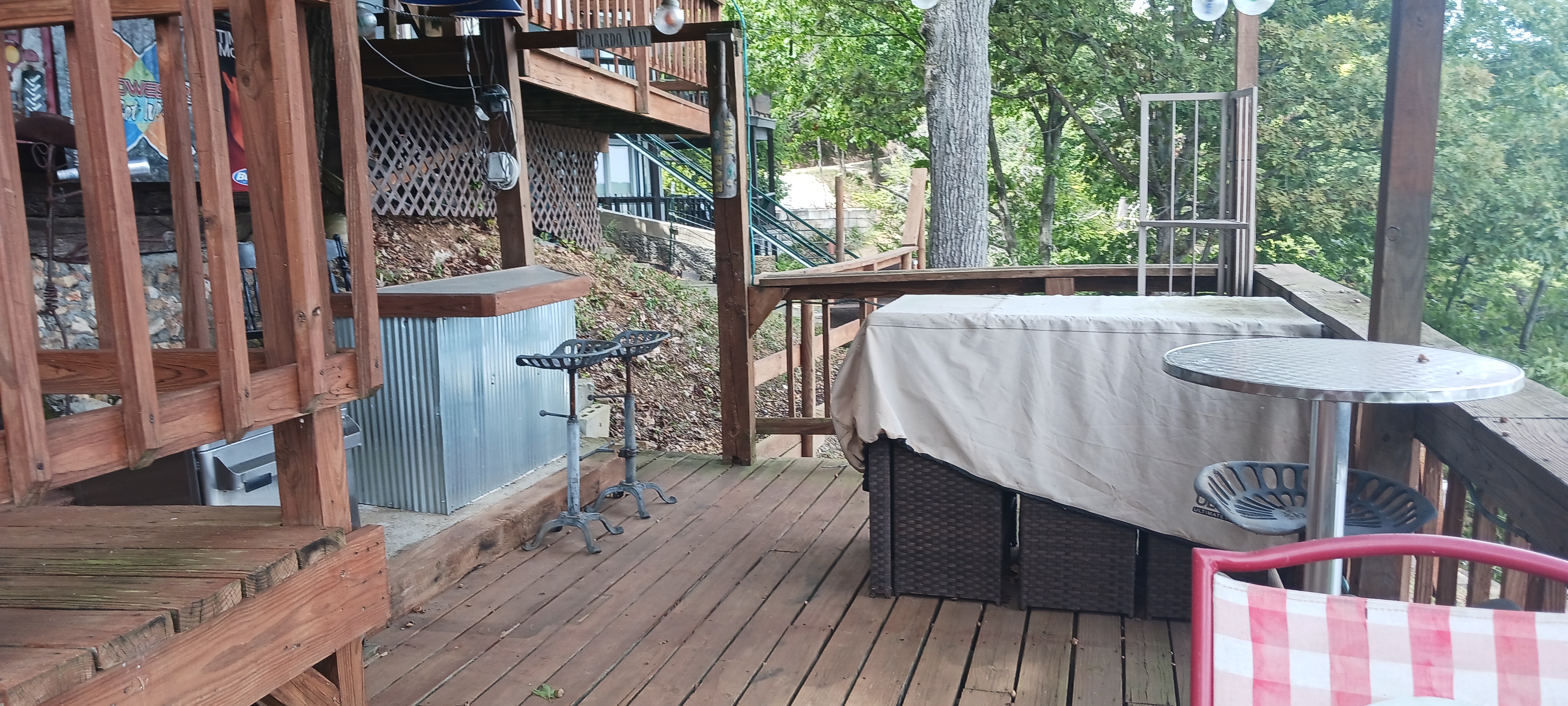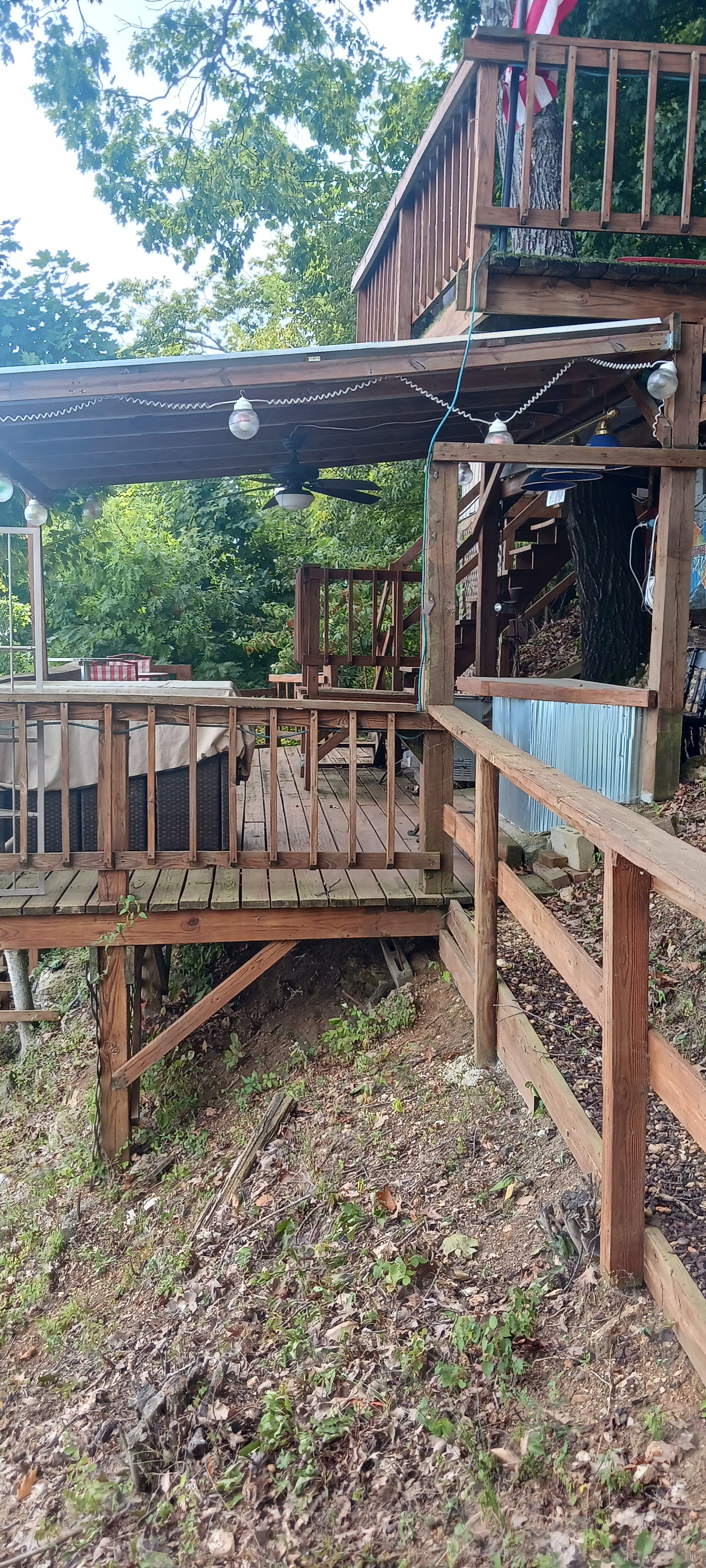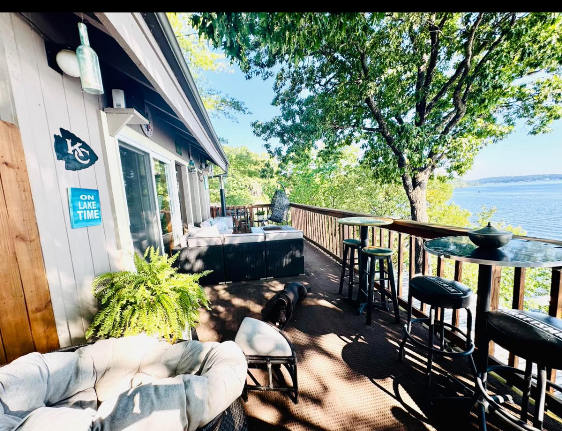 This lakefront home built in 1982 has a million dollar view on mm9 with all the outdoor entertainig space to enjoy everything Lake of the Ozarks has to offer. Paved road with concrete driveway takes you to the home nestled in the trees offering plenty of shade for all 4 decks to enjoy the beauty just outside your home. Admire the view while relaxing from the covered hot tub or grill from the outdoor kitchen to complete your lake living experience. Ride your own tram for effortless access to the swim platform or should you choose to purchase your dream dock the electric is provided. 3 bedroom, 3 bath, city water and sewer. Many updates have been made to this cozy 2054 square foot home. Plenty of parking with car port as well. This unique home also offers a 2 room bungalow which can be used for guests or an additional income source, office, she-shed or man cave. The possibilities are endless. Before this opportunity disappears message us today to arrange a showing.