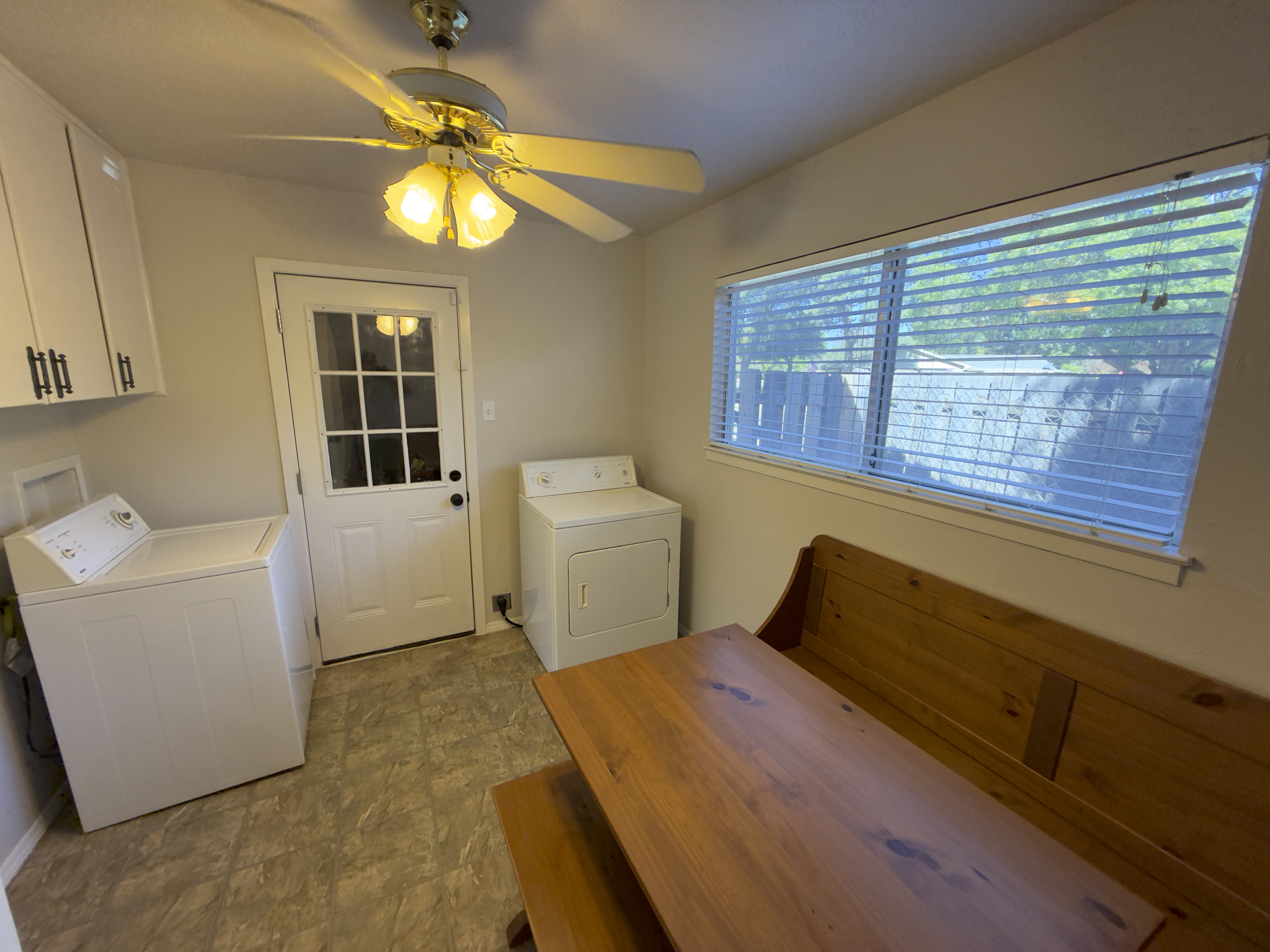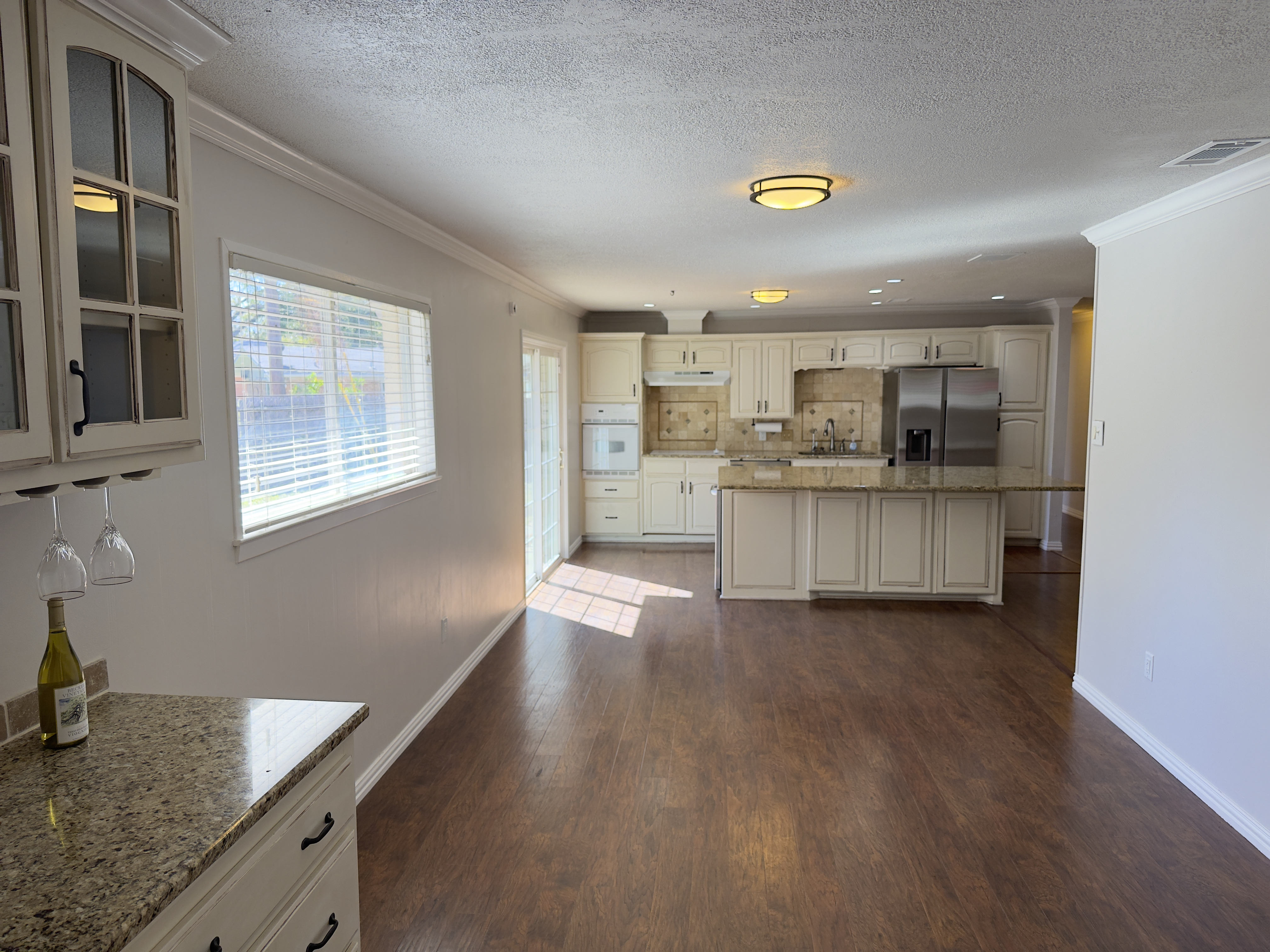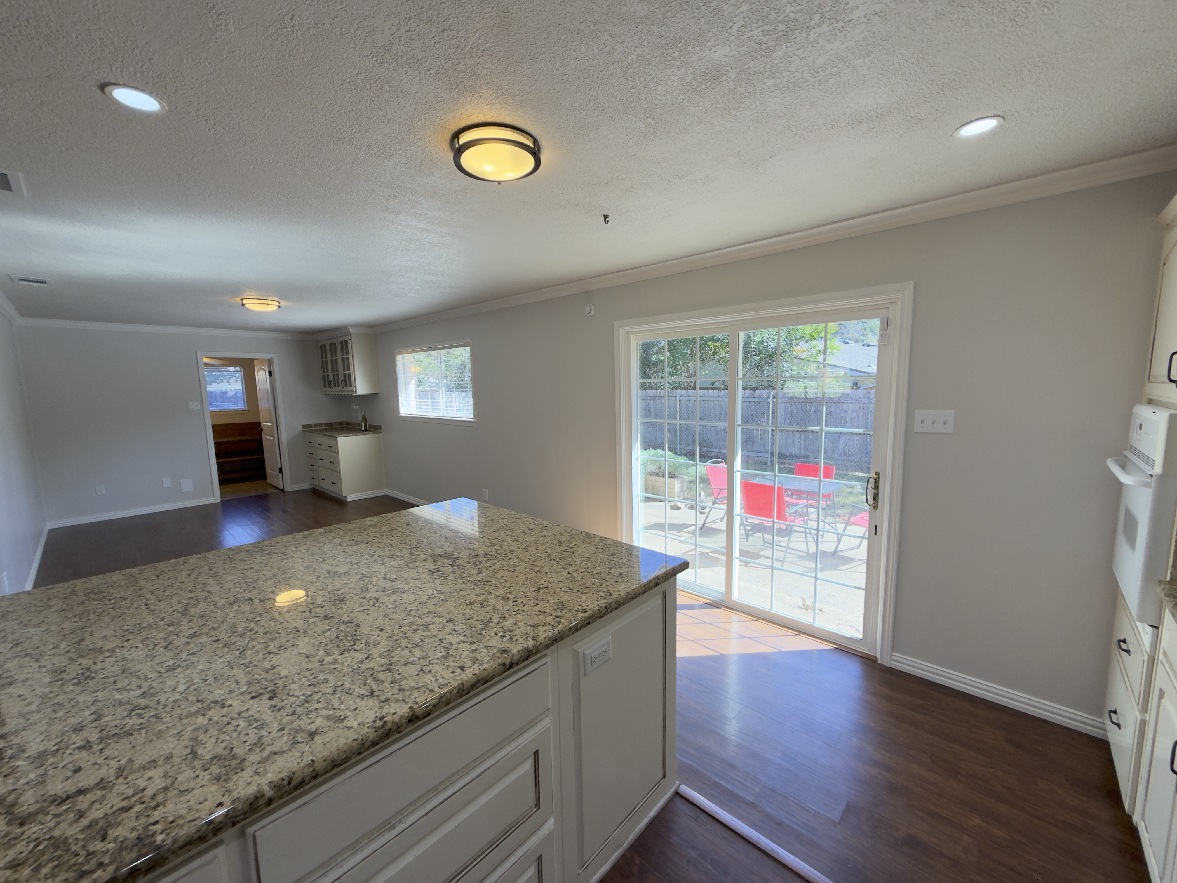 Sliding glass doors off the kitchen that open to the patio, seamlessly blending indoor and outdoor living perfect for morning coffee or evening cookouts.