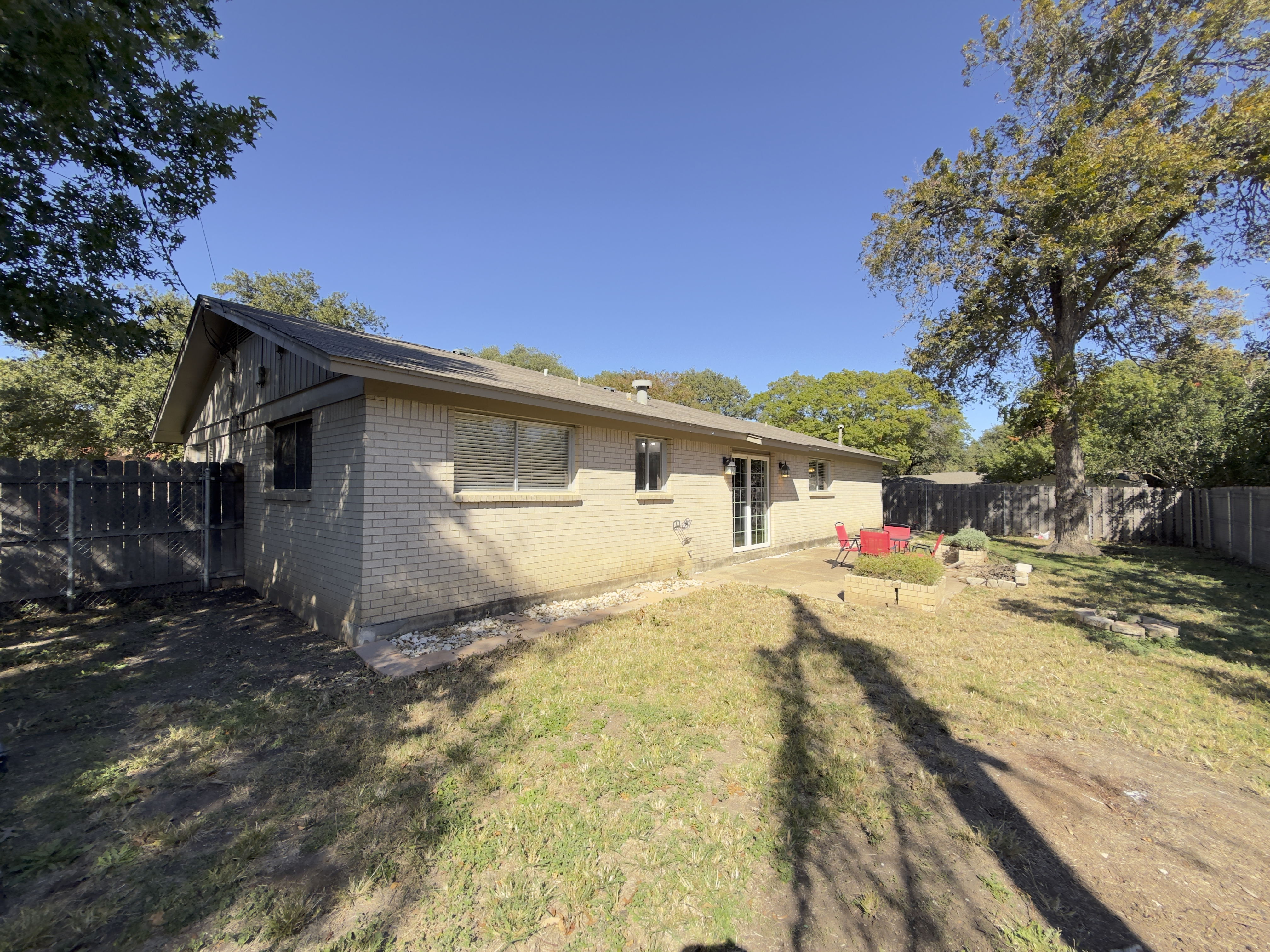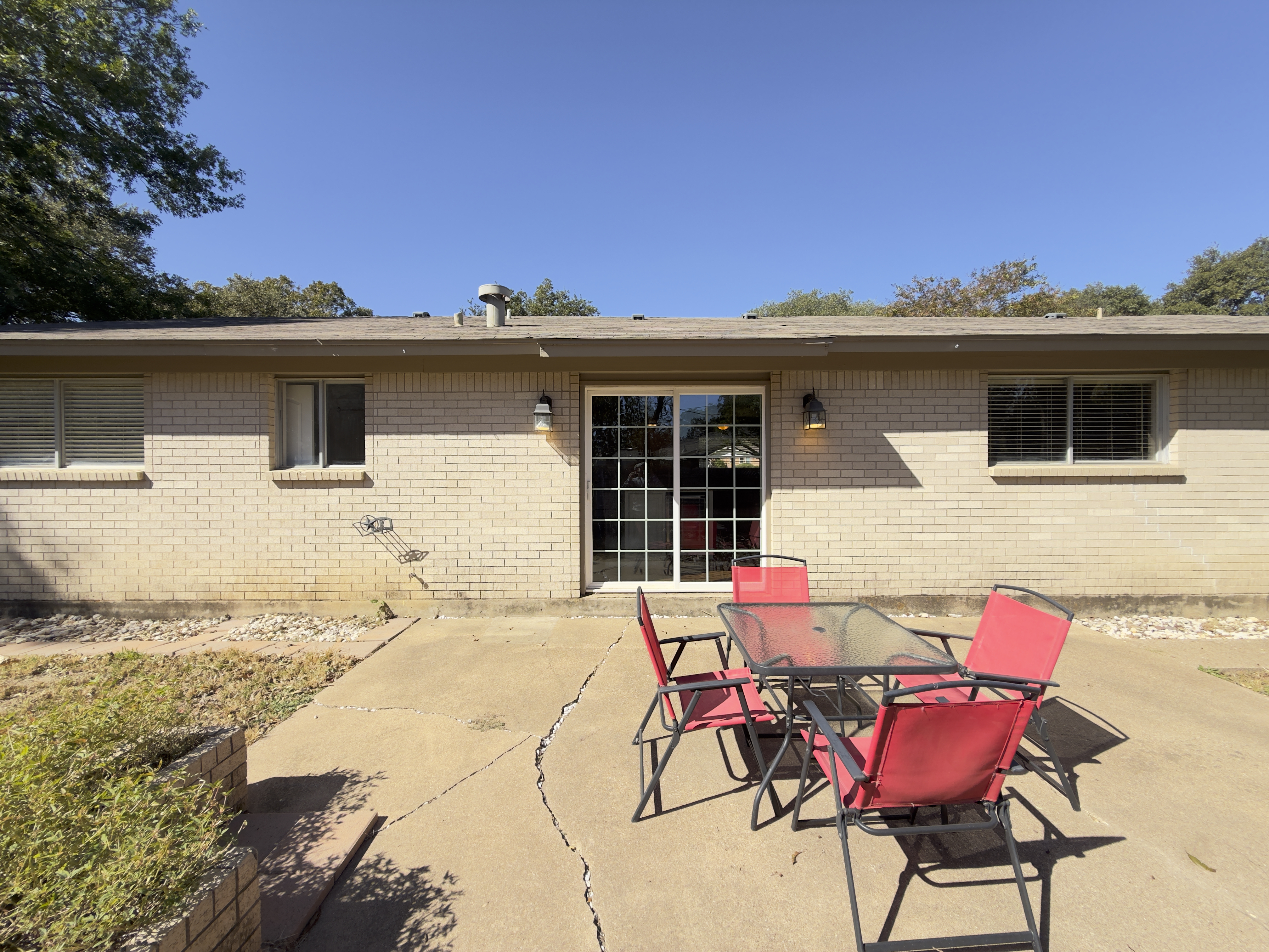 The backyard patio area offers a tranquil spot to unwind and enjoy the Texas weather.