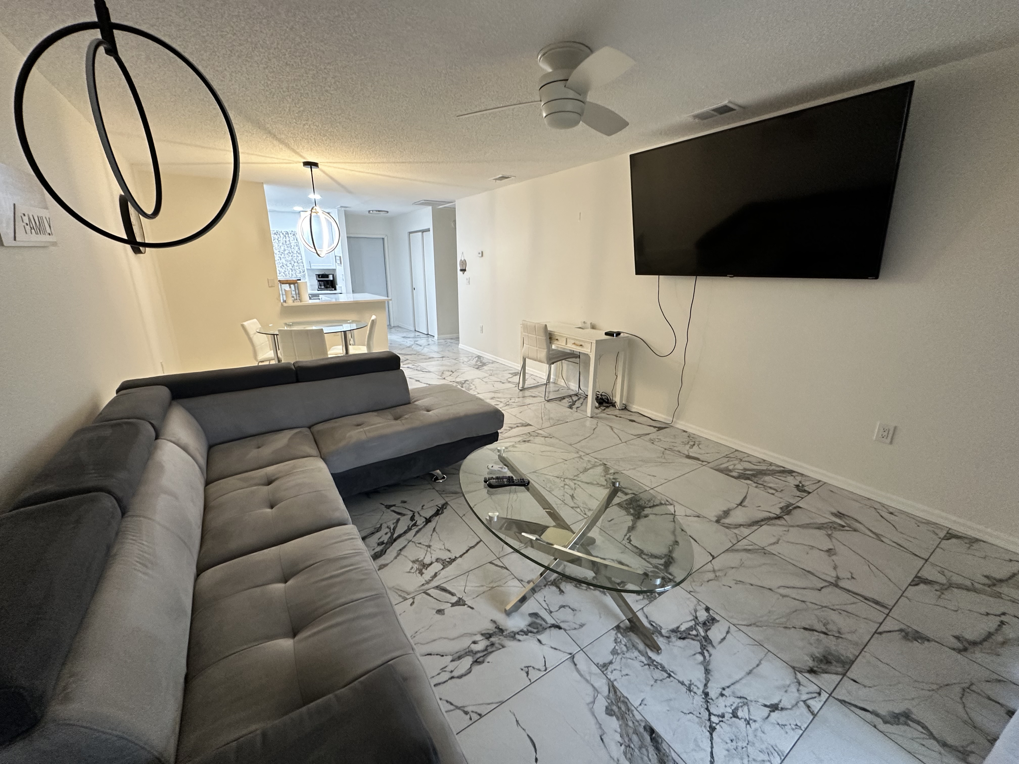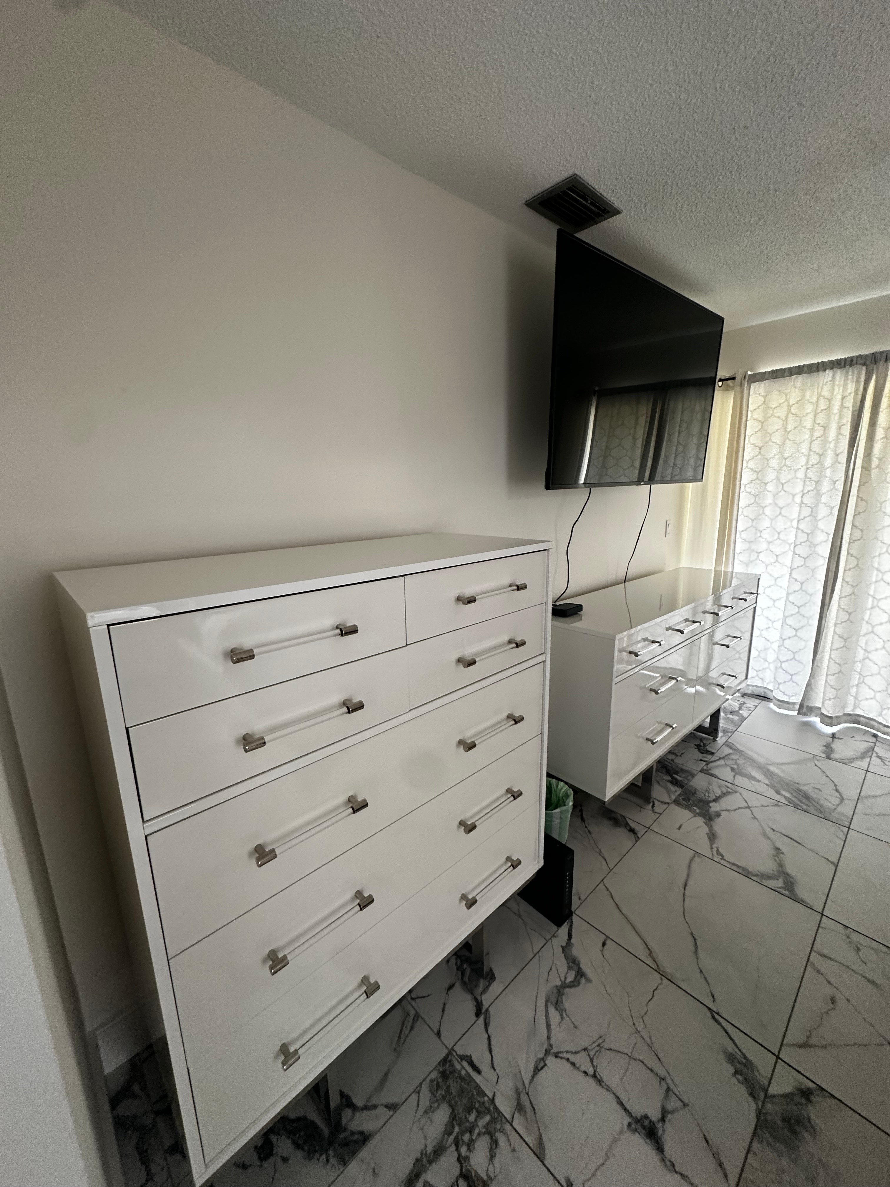 Modern looking. Extra purchase Optional for Furnishings and 75 inch SMART TV’s in all rooms .
