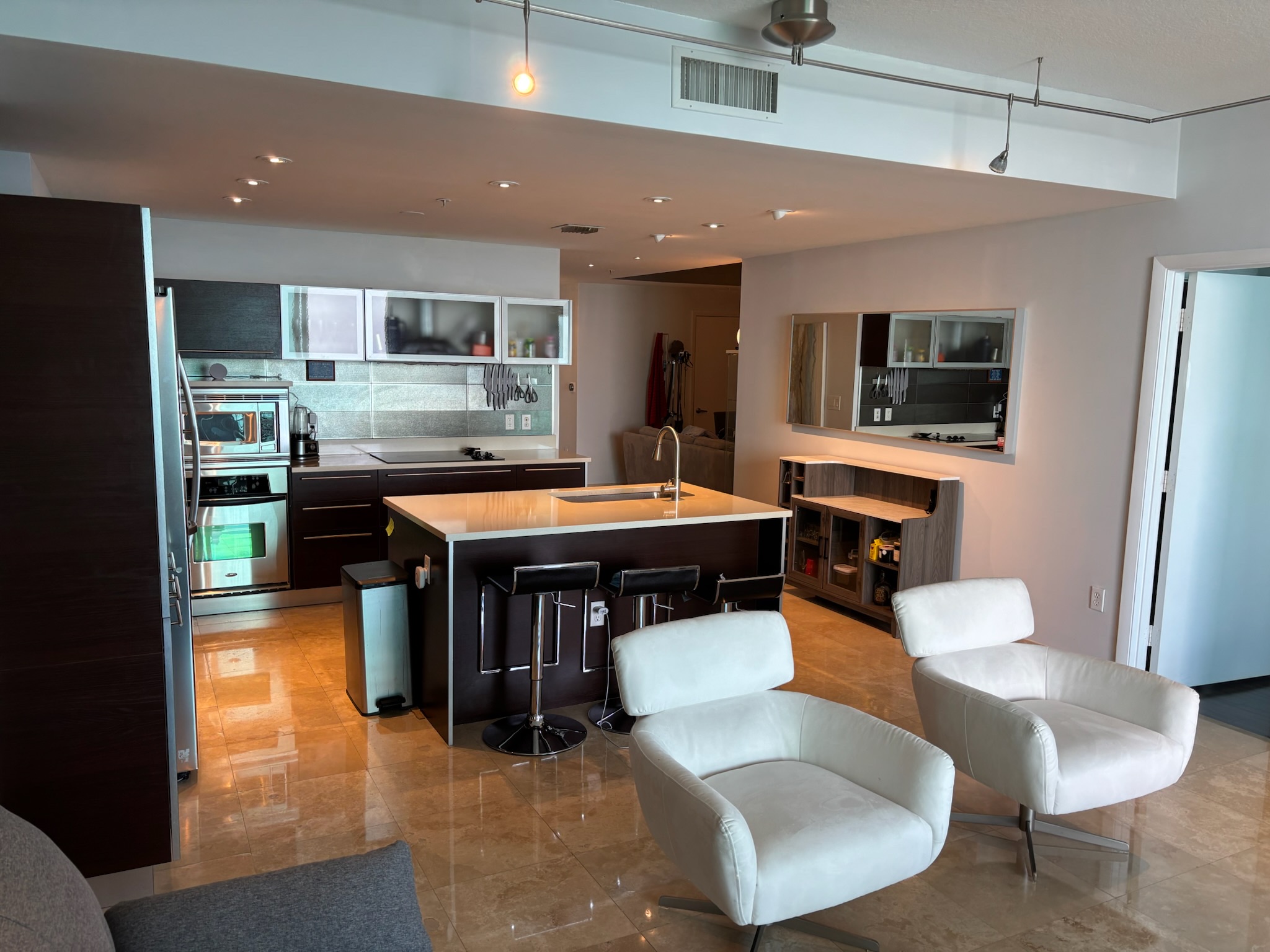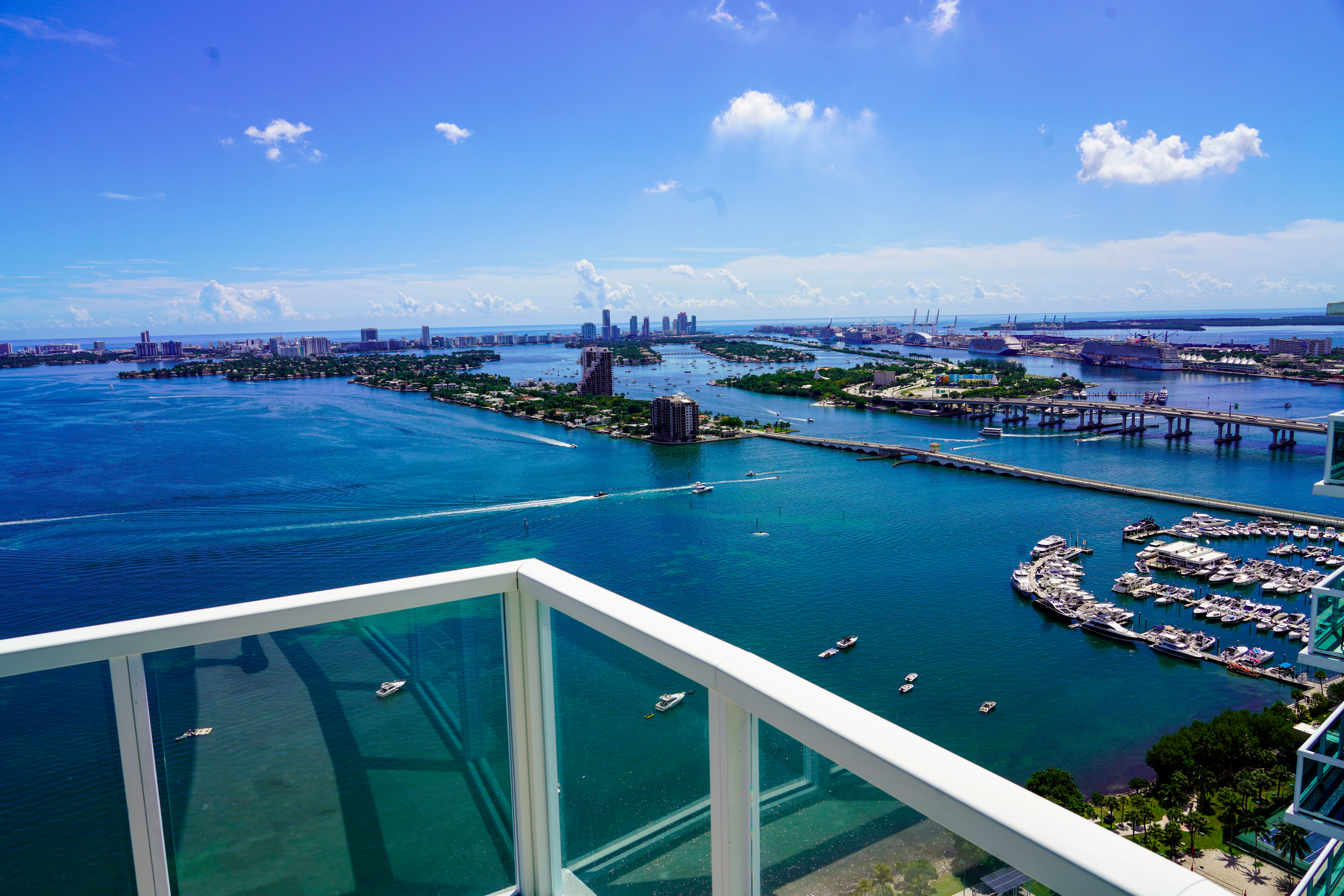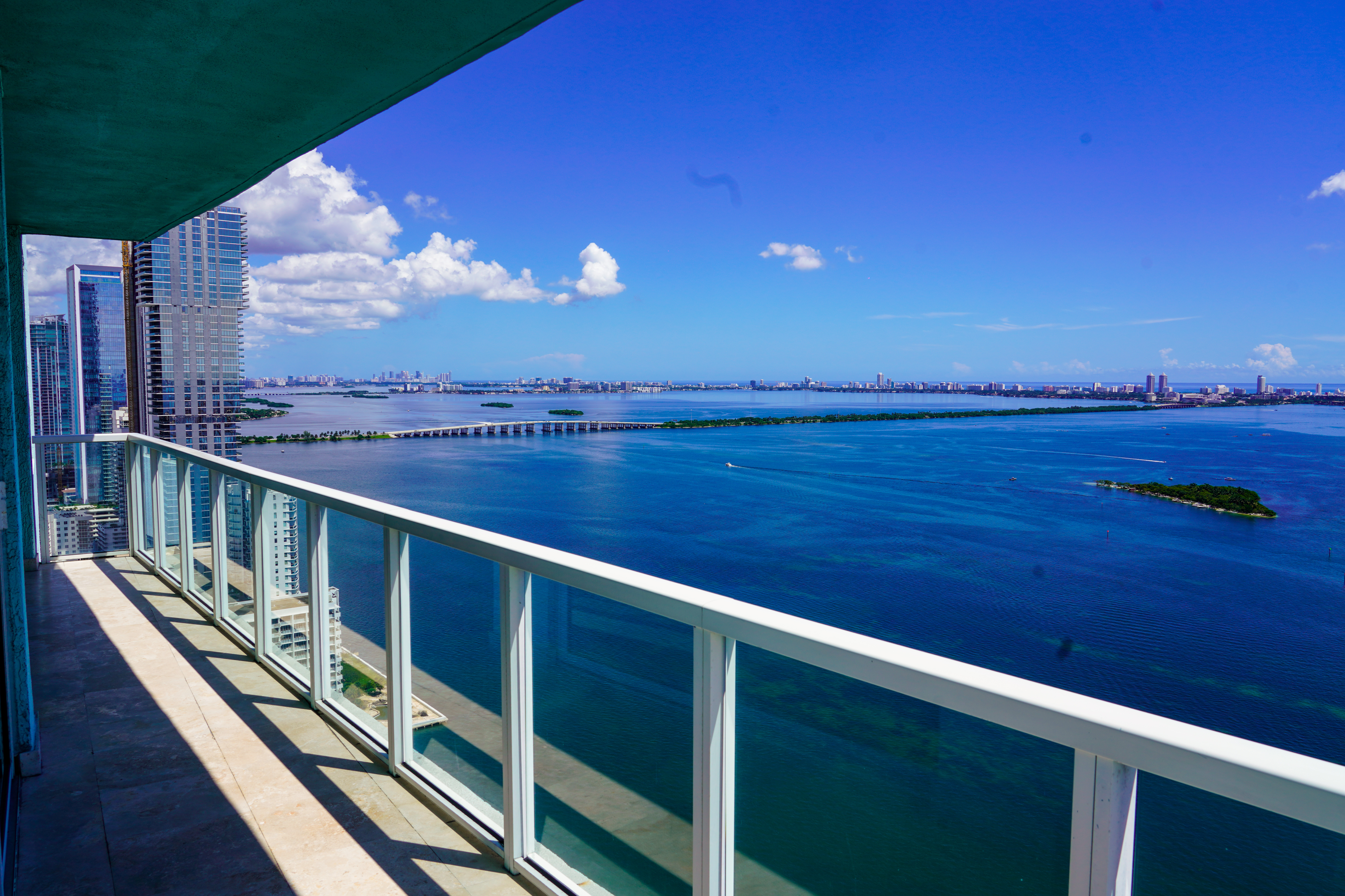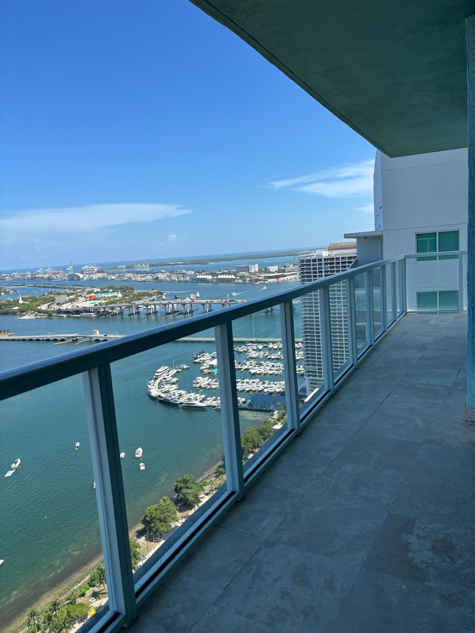 Experience Luxury Living in this high-rise waterfront unit. Panoramic ocean and bay views from the expansive wrap-around balcony. Travertine marble floor in living area and balcony with wood floors in bedrooms. Split floor plan with walk in closets, 2 master bedrooms/2-full baths plus additional half bath, Modern kitchen, new stainless steels appliances, and quartz countertops, full size washer & dryer. Quantum on the Bay offers 2-swimming pools, 2-story fitness center, sauna, residents lounge & theater, business center, valet, 24/7 security, quick, convenience store, beauty salon and dentist plus quick access to Midtown District, Downtown, Brickell, close to Restaurants and Miami Entertainment area Bldg. has solid financials & reserves. The view is panoramic and you can see as far as sunny Isles all the way down to Key Biscayne. There are only 3 units facing direct bay so it feel like the whole floor is yours. I also enjoy having the split plan for the bedrooms bath.