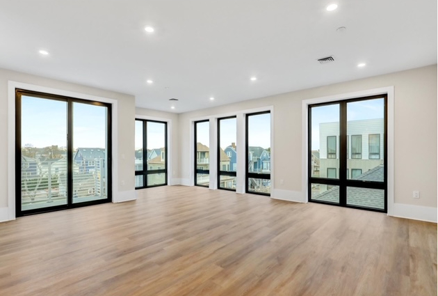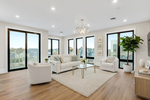 beach house awaits. At over 1200 sq ft this gorgeous 2 bdrm 2 bath in the brand new Aegean building is a must-see. Just 2 short blocks to the beach and a few steps to Asbury's restaurants, music, galleries, and nightlife. This first floor corner location in this elevator building offers stunning views! The open concept with a a private balcony off the massive living area looks out onto a park-like lot. The luxury upgraded kitchen features stainless steel appliances, quartz countertops with an oversized waterfall island, subway tile backsplash, and floating shelves. The spacious primary bedroom features a huge walk in closet and a spa like private bath. A deeded parking space and indoor garage with bike storage make it a Do Not Miss!!
