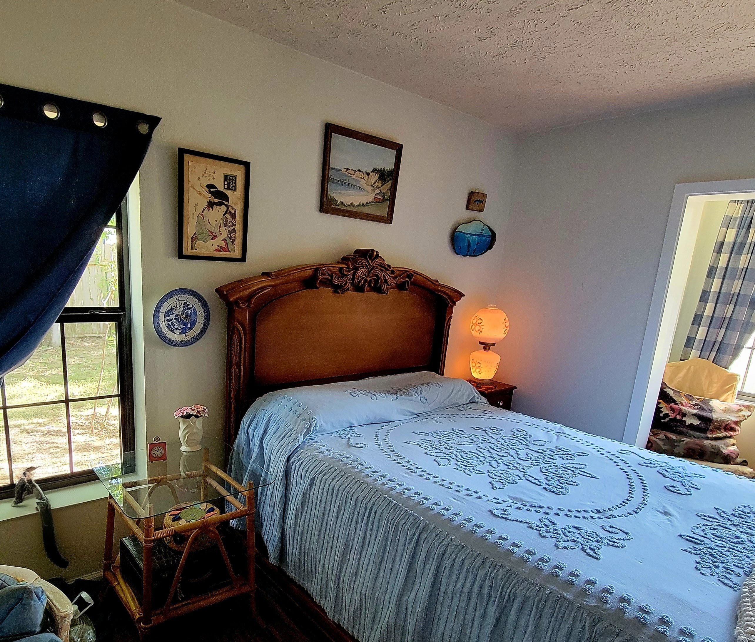 This 3 BR 2 1/2 bath home is located in Paradise Valley where residents enjoy a 16 acre Blanco River Access Park. This home is 2154 And offers high vaulted and beamed ceilings, a floor-to-ceiling rock fireplace in the living area. A rock accent wall in the dining area a rock accent in the entry and a side garden. A 2-car attached garage plus an enclosed breezeway. One of the most enjoyable rooms in the house is the screened-in porch for enjoying the serenity of your Wimberley neighborhood. This home was built in 1976 with recent updates to bathrooms and kitchen. All stainless steel appliances and a separate laundry area are included