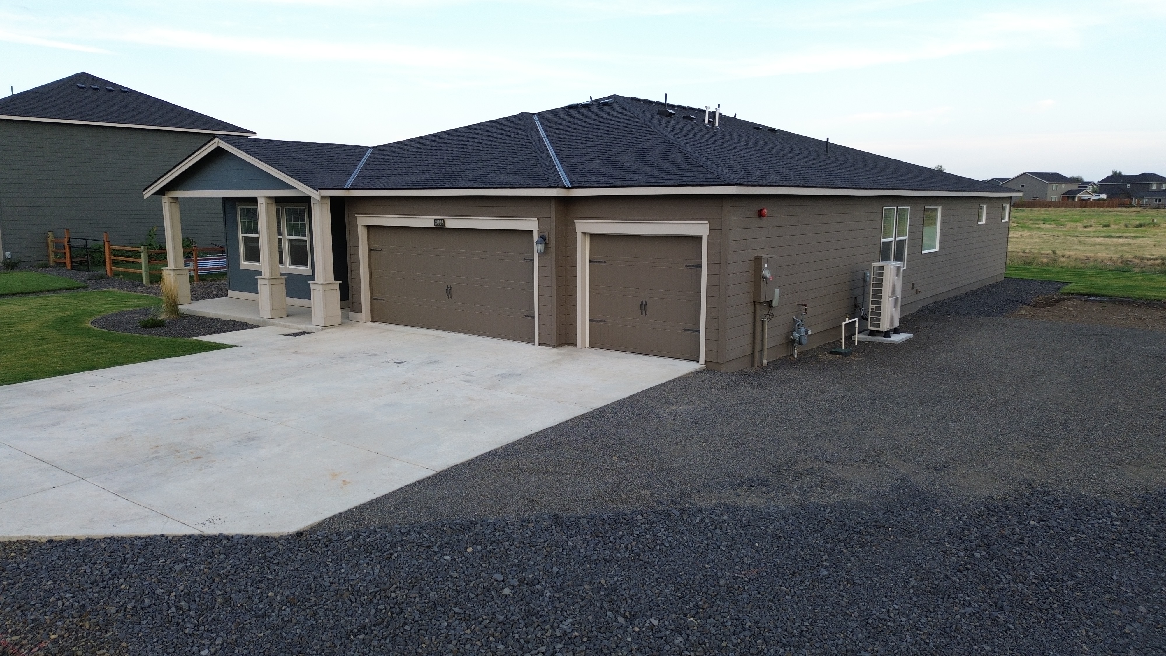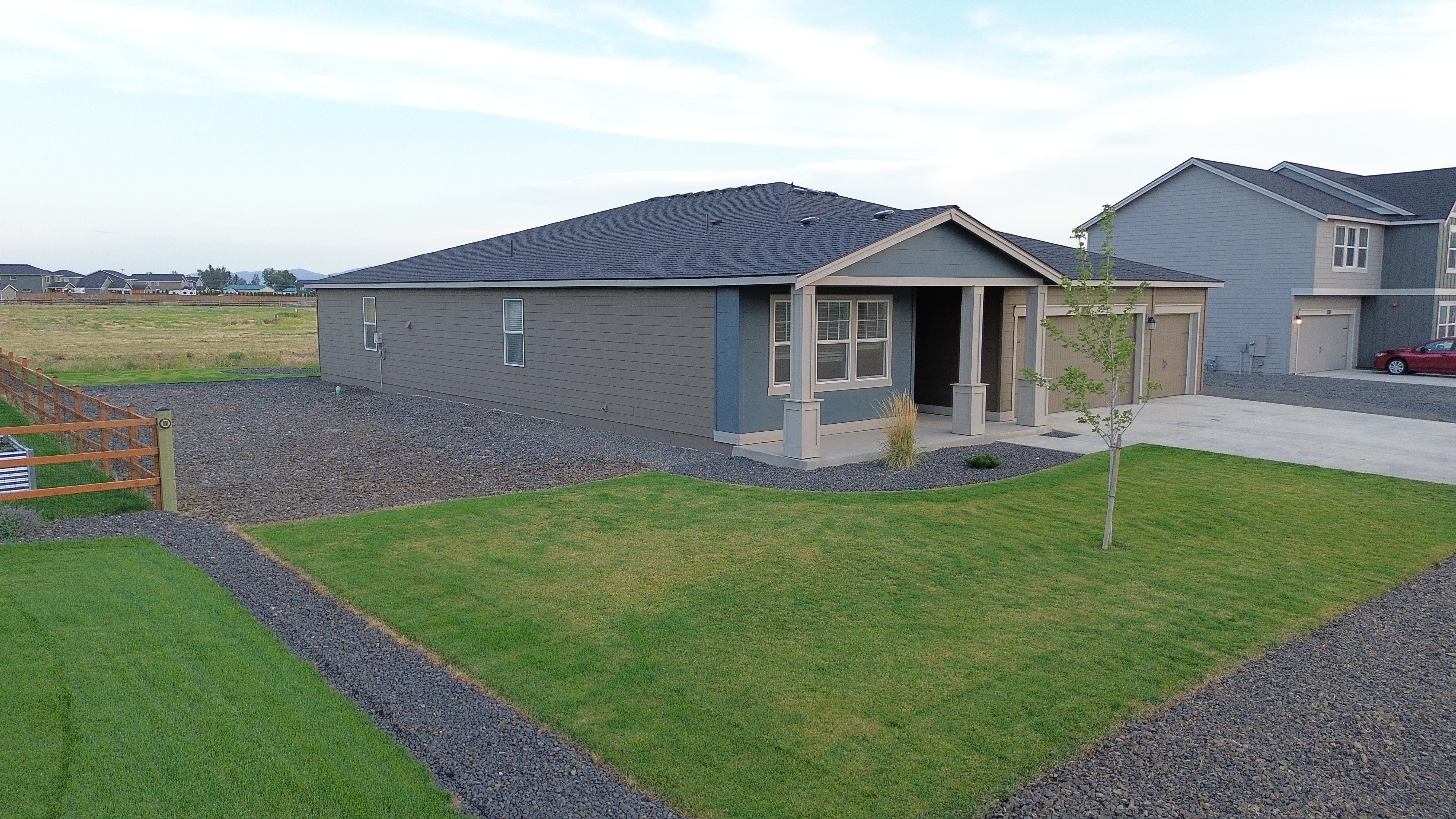 NEWLY Built 2023, immaculate condition, Palomino neighborhood. This Rambler is 4 bed 3 bath 2,597sqft home on a .33acre lot and is close to town with a country feel. Plenty of room for a play structure, RV parking, and more! The home boasts 9-foot ceilings with an open concept living room with a modern electric fireplace. Connecting dining room, a large open kitchen with big island, including a large walk in pantry. Stainless steel appliances, gas range and cabinets with soft close drawers. Window coverings much of the home. Primary bedroom has 2 huge walk in closets connected to the private spa like bathroom with shower & soaking tub & bubble sinks. Wind protection privacy large, covered patio. Laundry room and mudroom off the 3-car garage. Lawn irrigated with unground sprinkler system. A Must Be Seen Home!