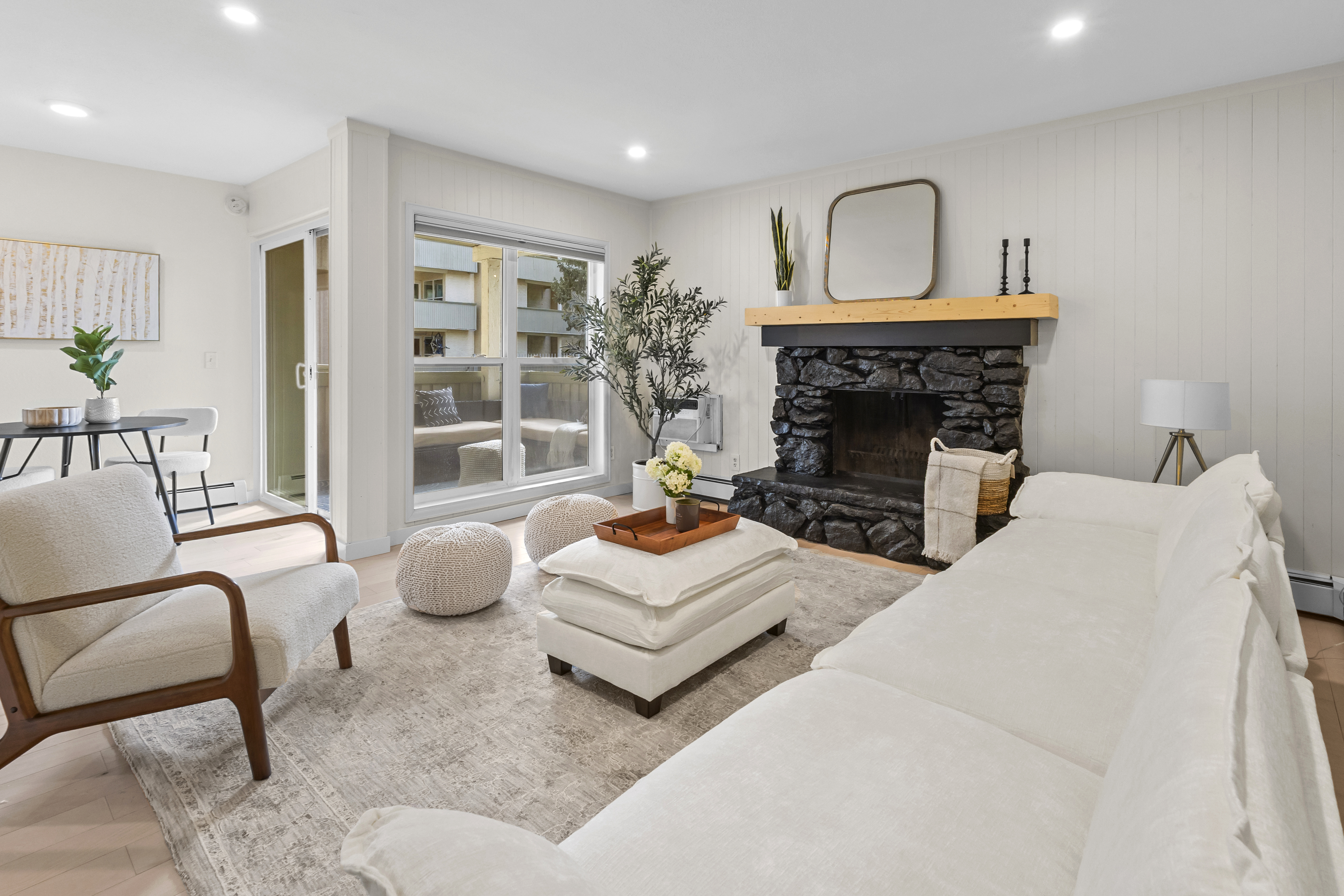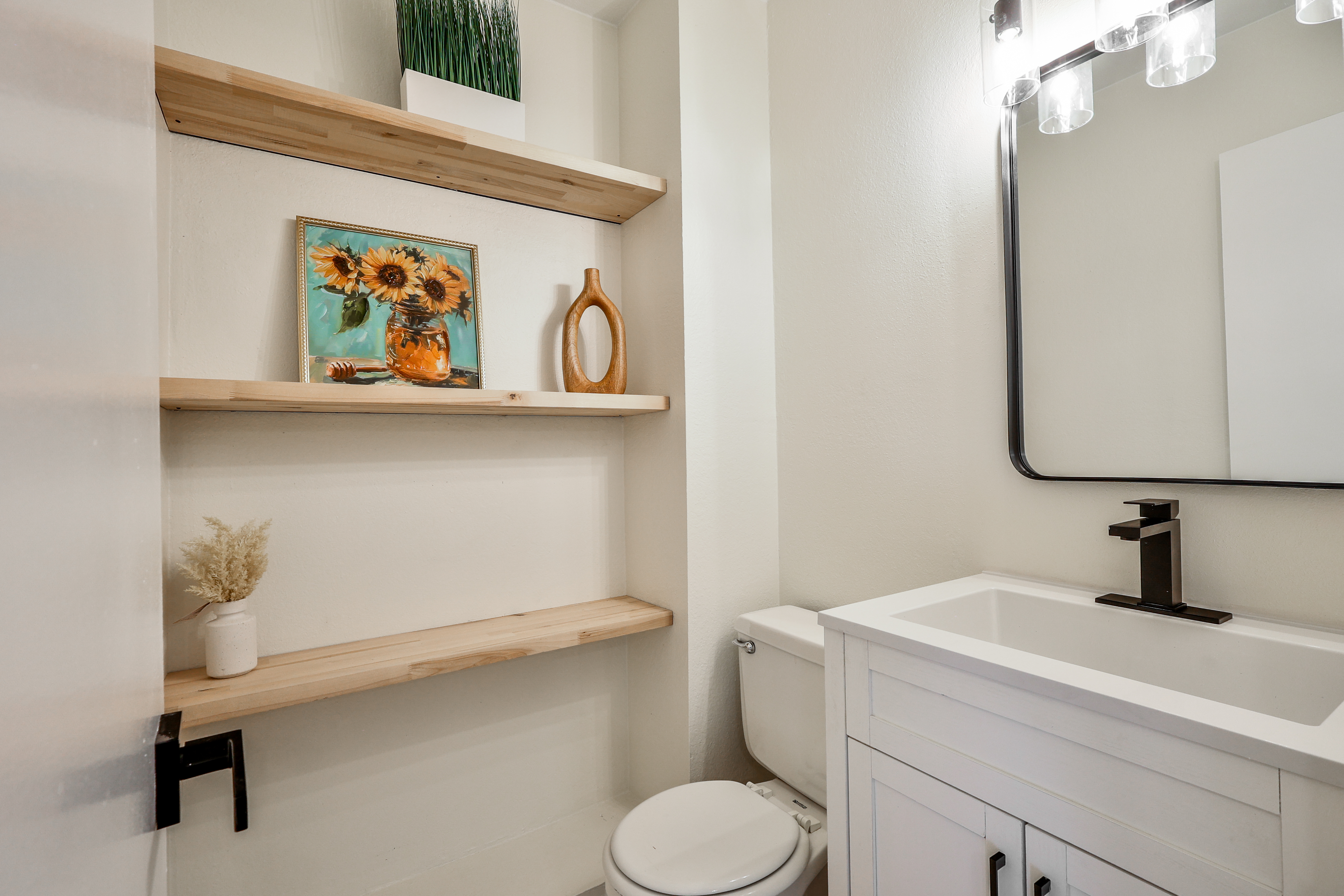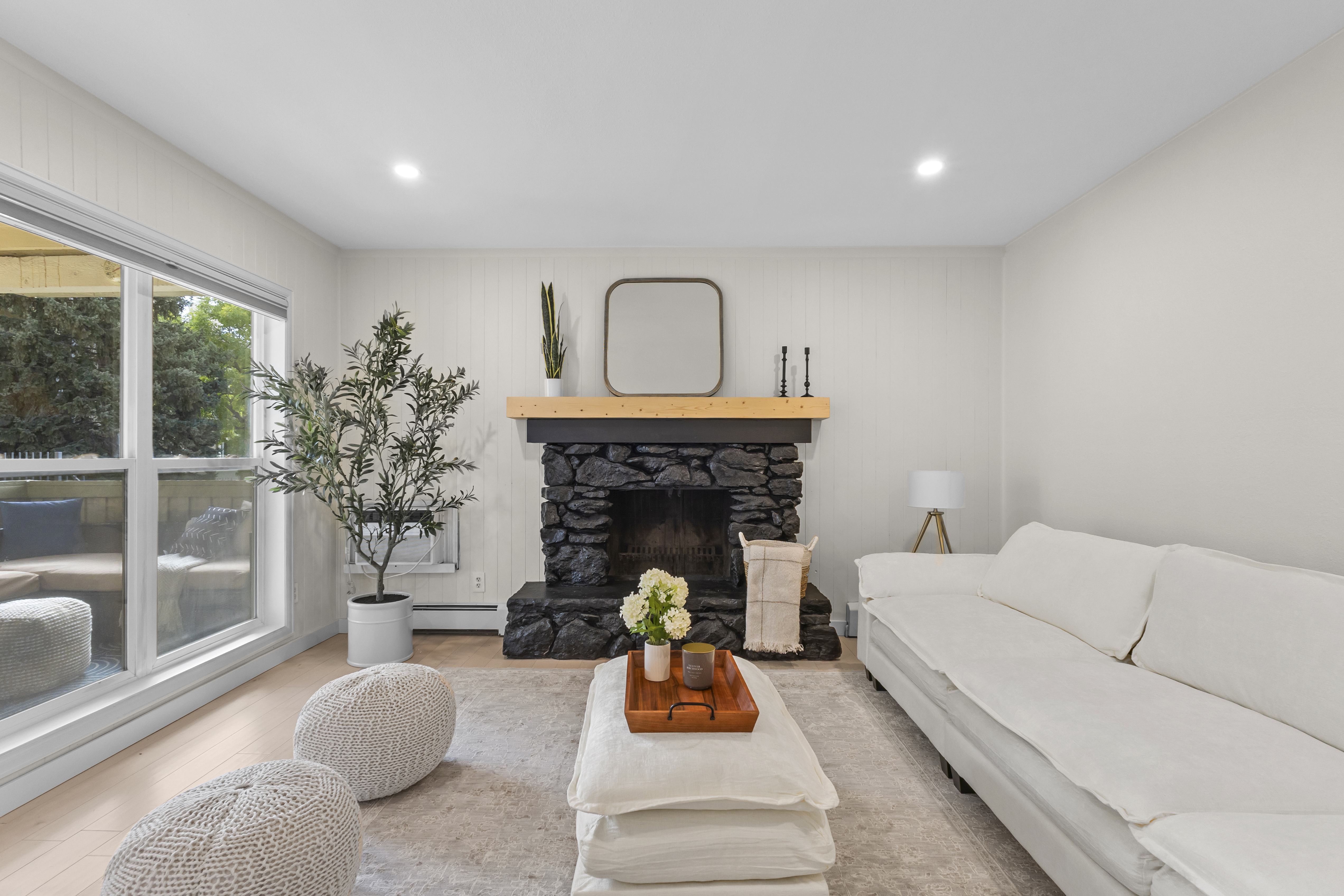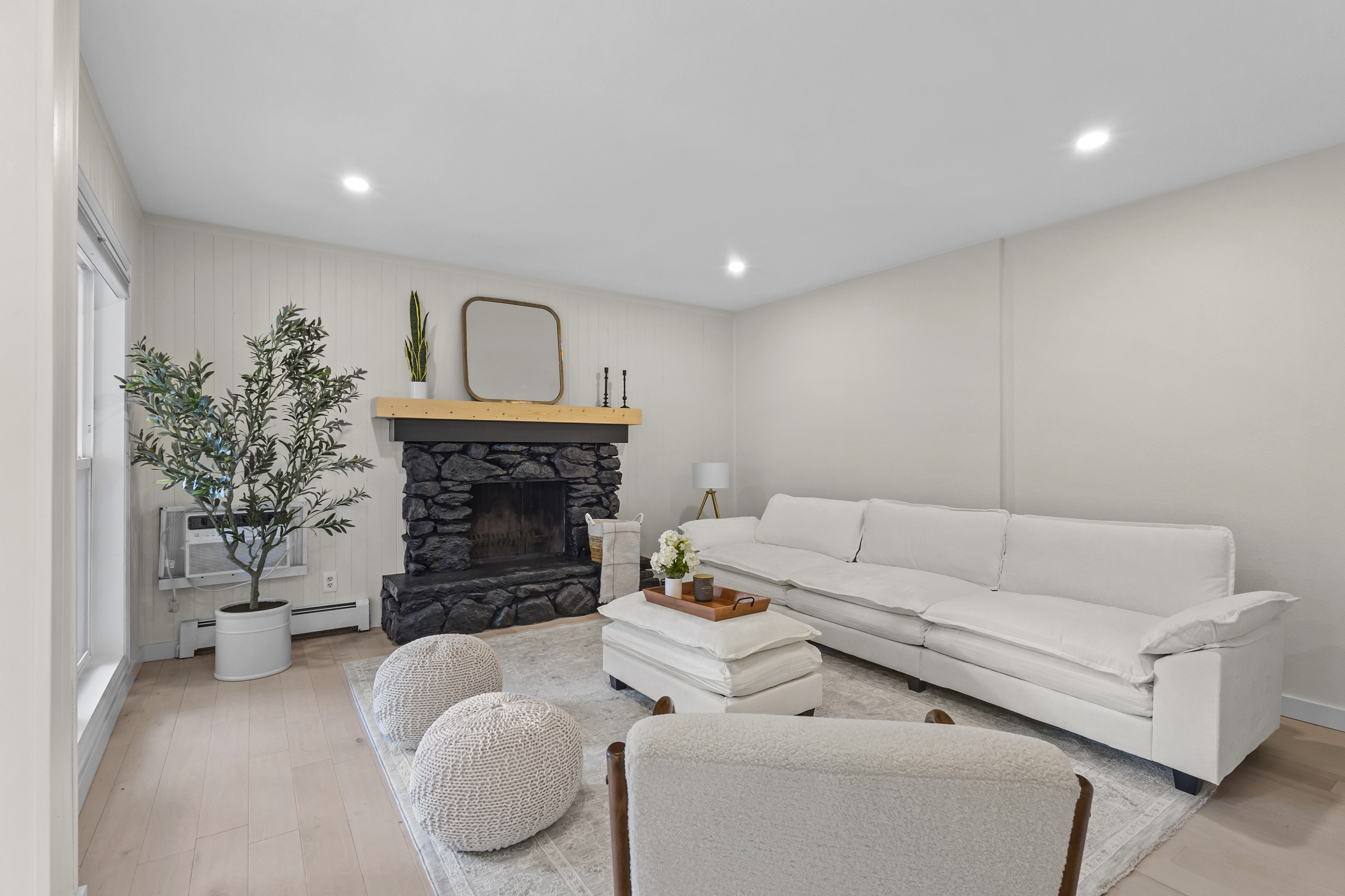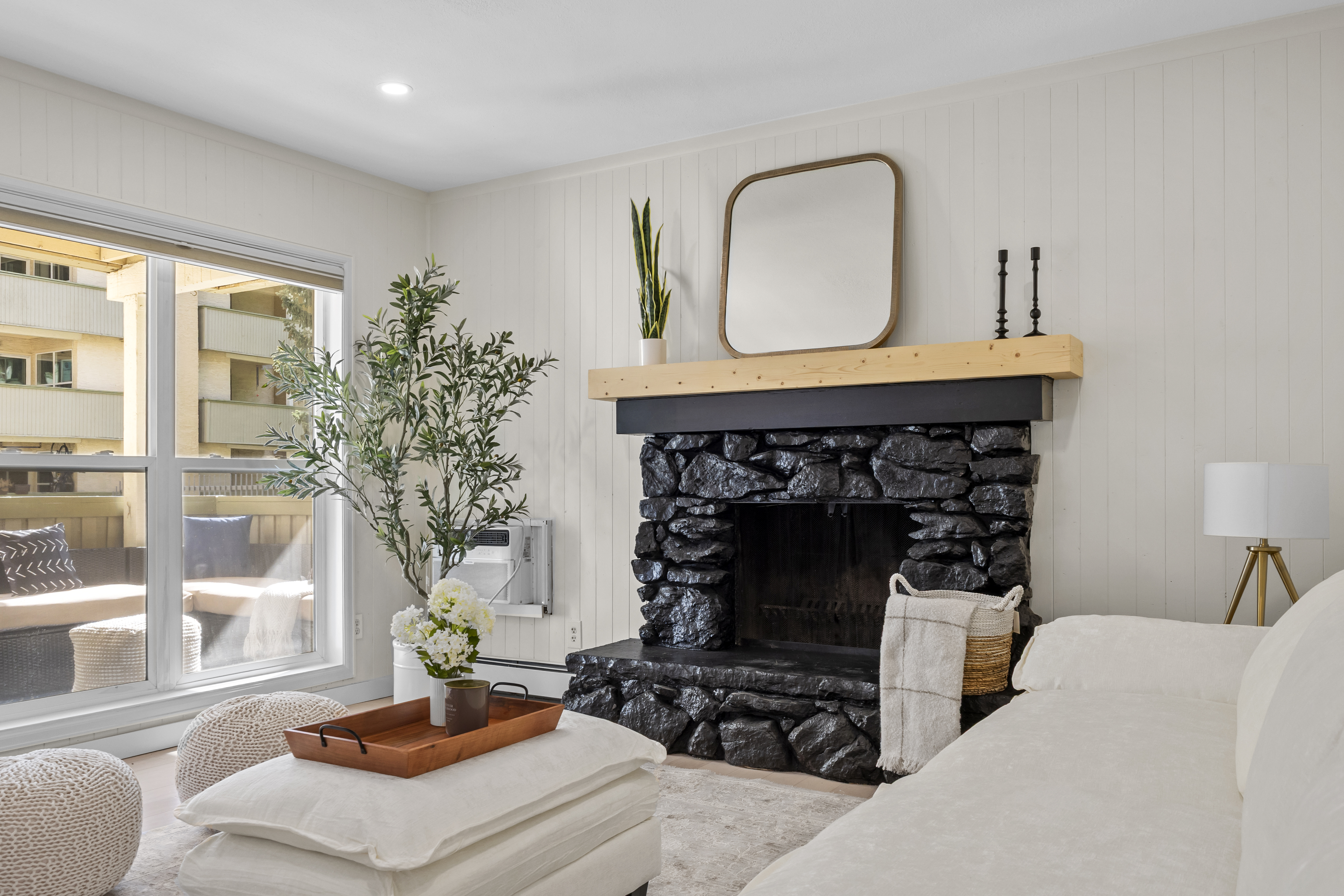 The home features 1.5 tastefully updated bathrooms with classic subway tile, floating shelves, and modern fixtures. Cozy up by the real wood-burning fireplace on cooler nights, and appreciate the warmth and character of the hardwood flooring that runs throughout the living space.