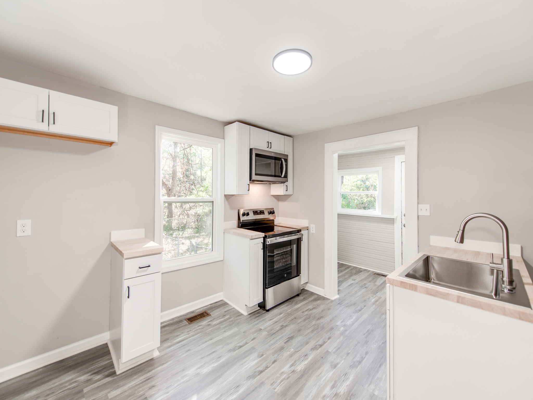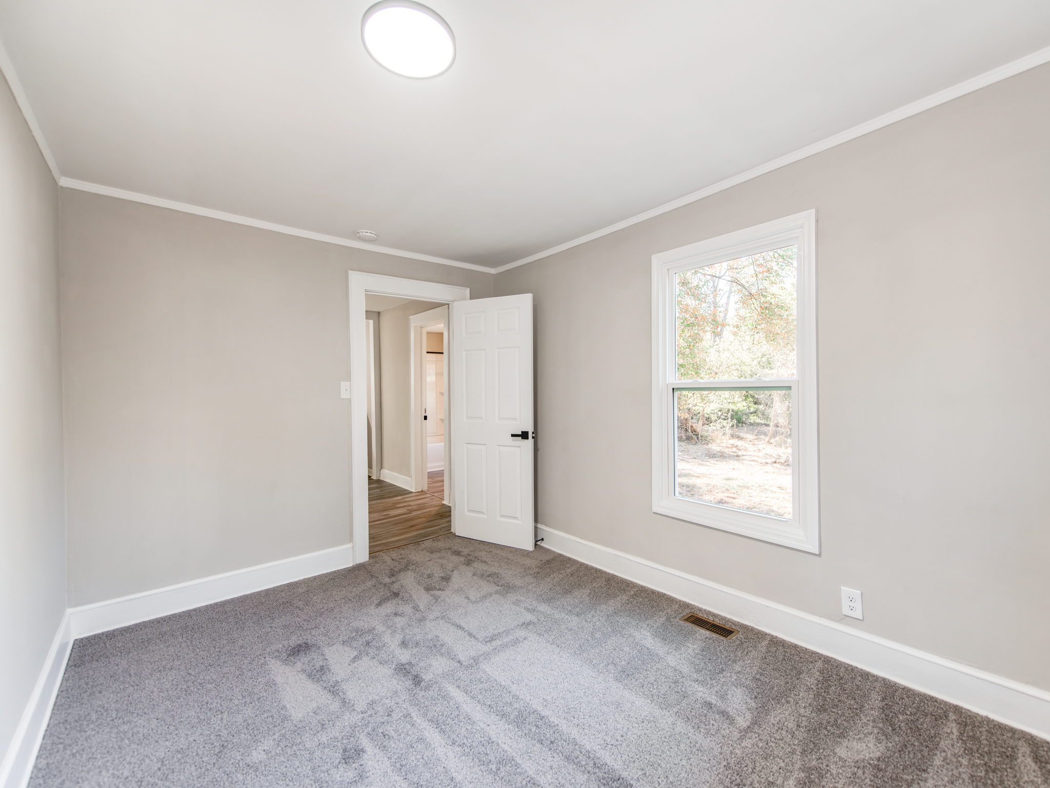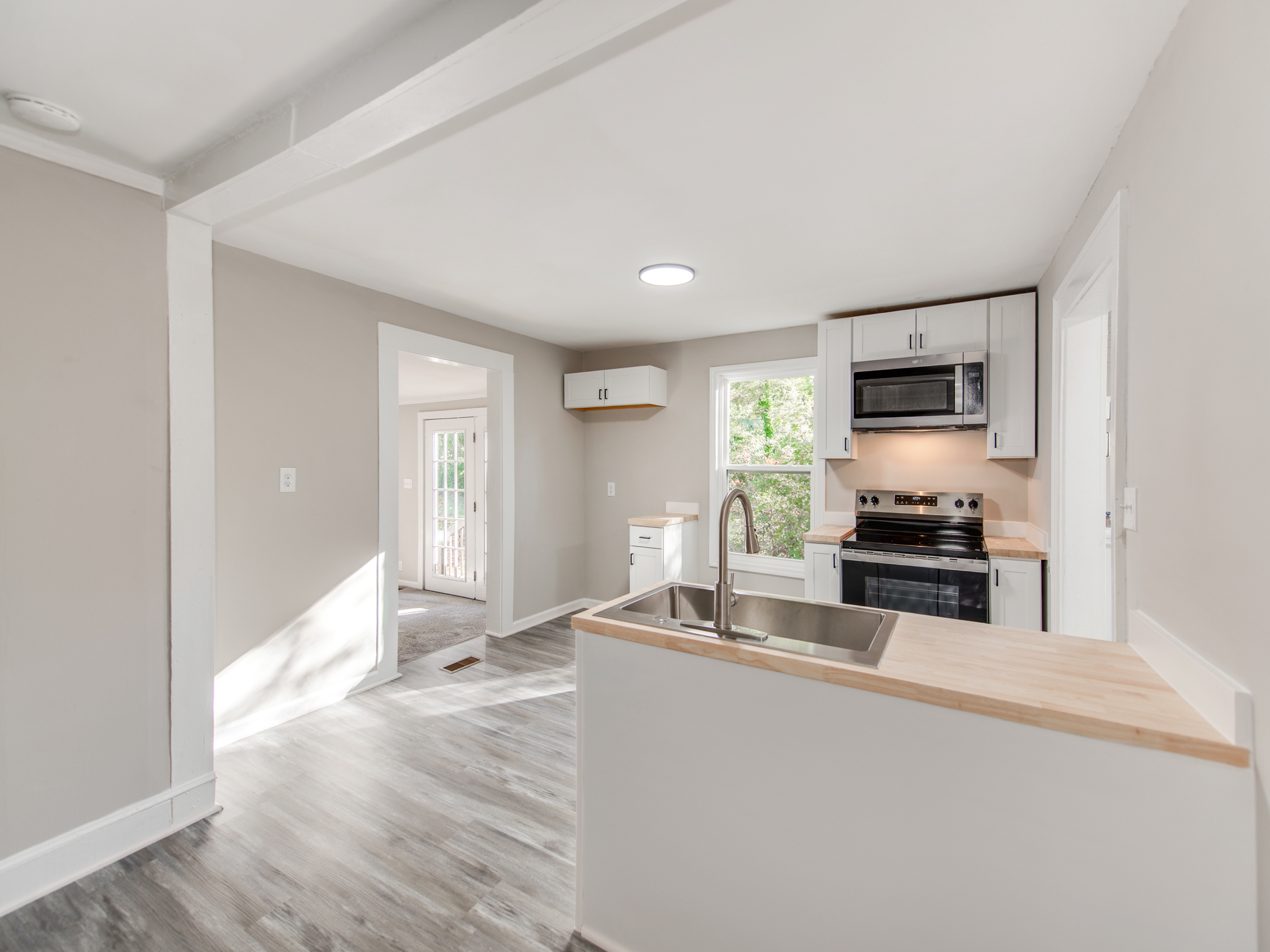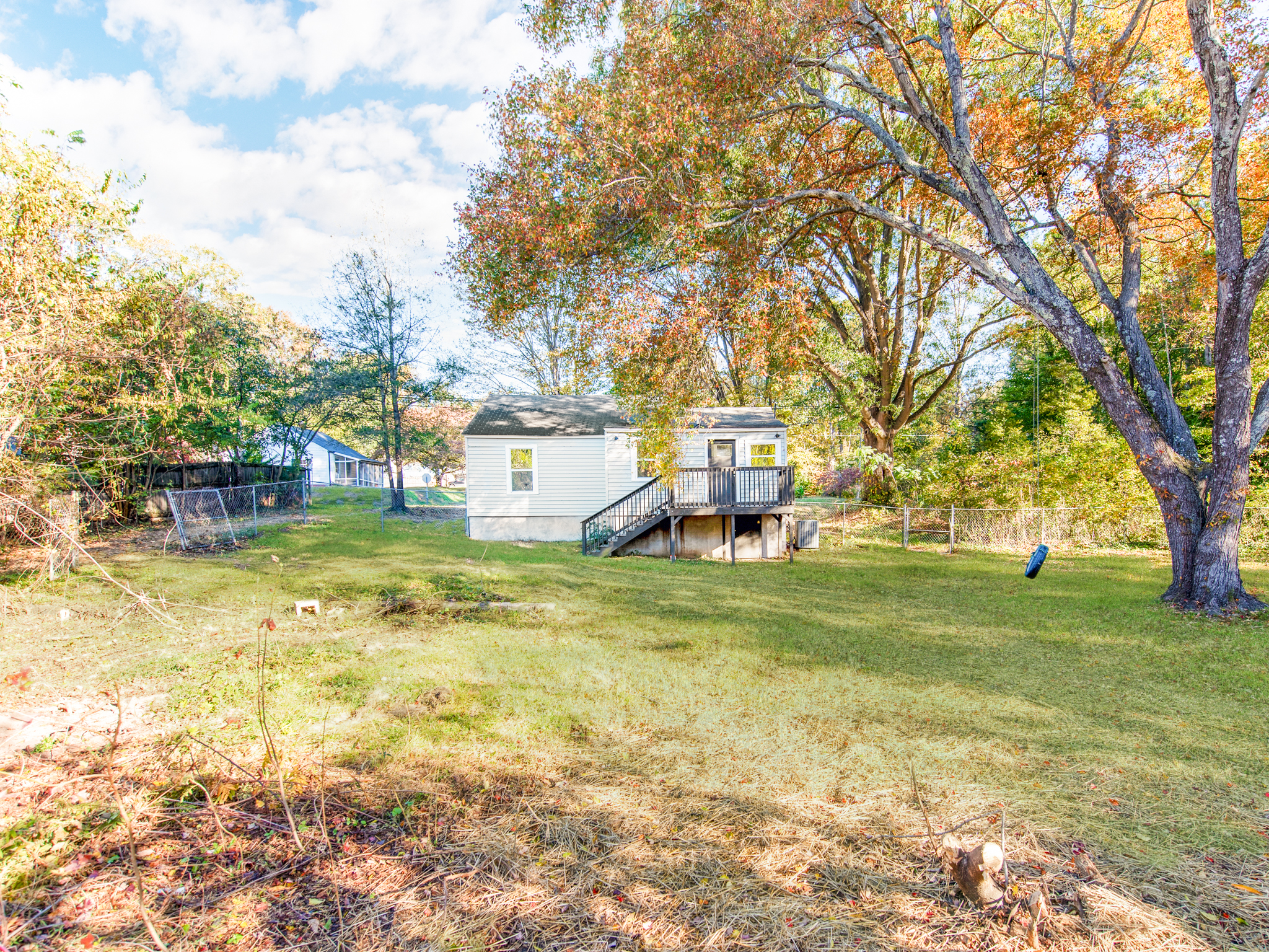 Set on a beautiful 1.4-acre lot, this completely renovated ranch-style home offers the perfect blend of space, comfort, and modern design. With approx. 1,400 sq ft, this 2BR/1BA residence is move-in ready and shines with all-new paint, carpet, luxury vinyl plank flooring, lighting, and fixtures throughout. The kitchen features new cabinets, countertops, and stainless appliances with open flow to the dining area and living room. Updated bathroom, new HVAC, plumbing, and electrical provide worry-free living. Enjoy a covered front porch for relaxing and a spacious back deck overlooking a super-sized, level yard—ideal for gardening, entertaining, or outdoor recreation. The expansive lot offers plenty of room for future additions, play, or privacy. Located in a quiet, established neighborhood near parks, schools, shopping, and downtown Greensboro. This beautifully updated ranch delivers space, efficiency, and charm both inside and out, ready to welcome you home.