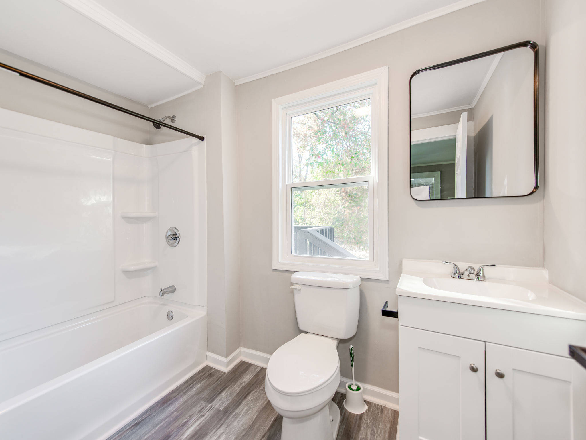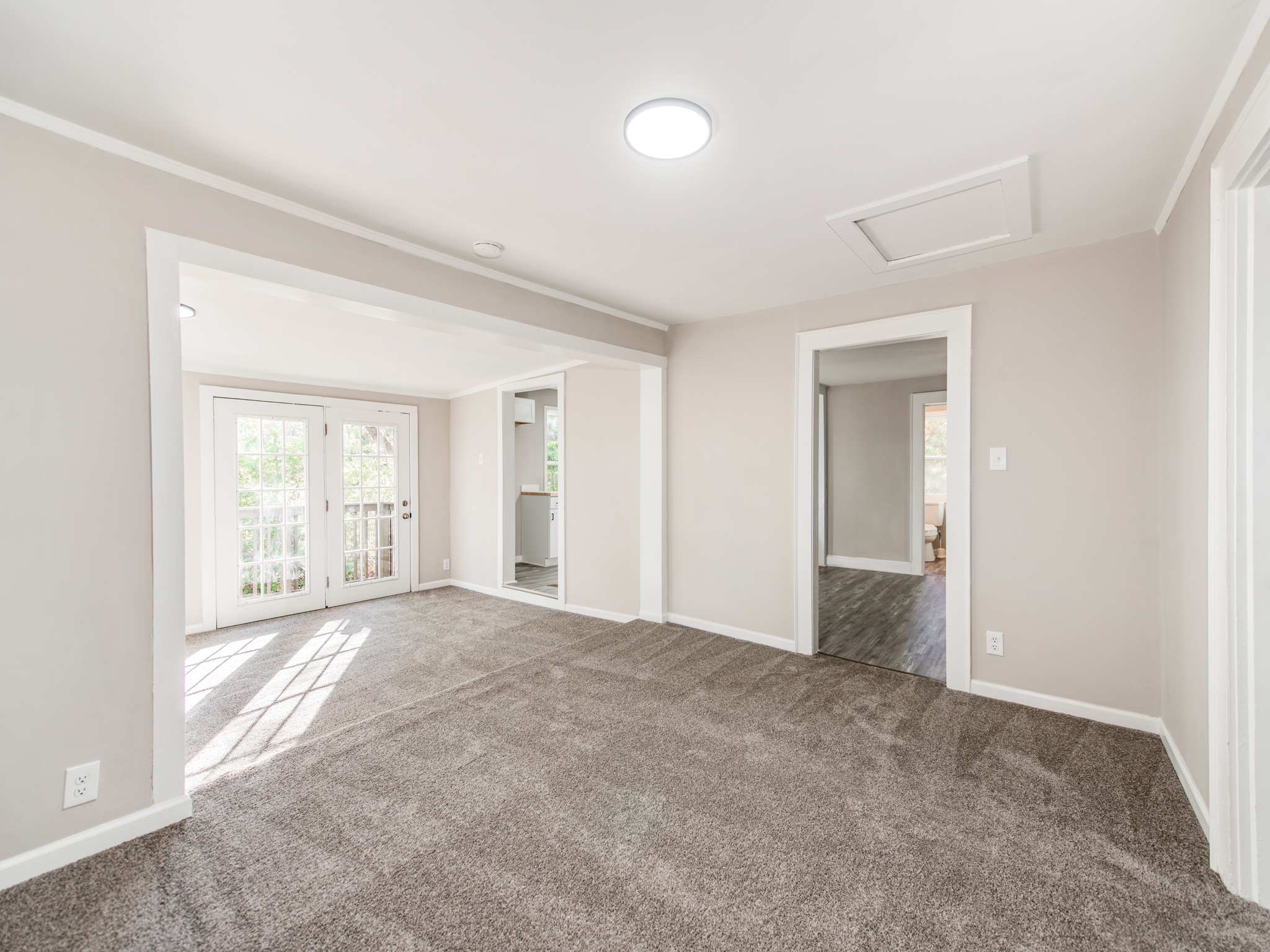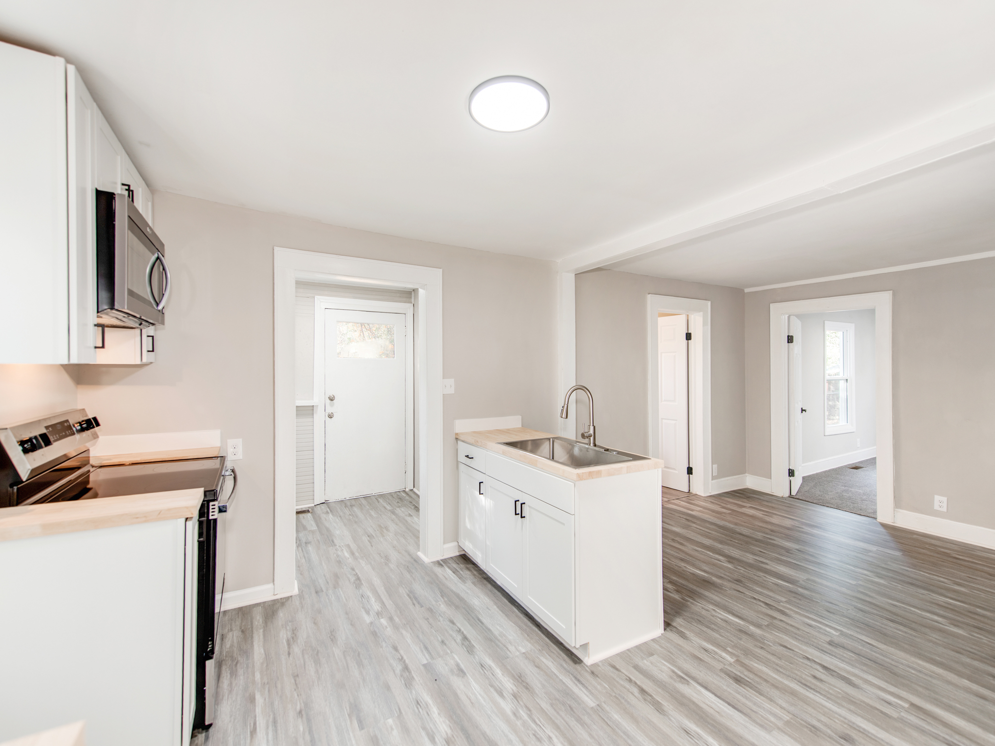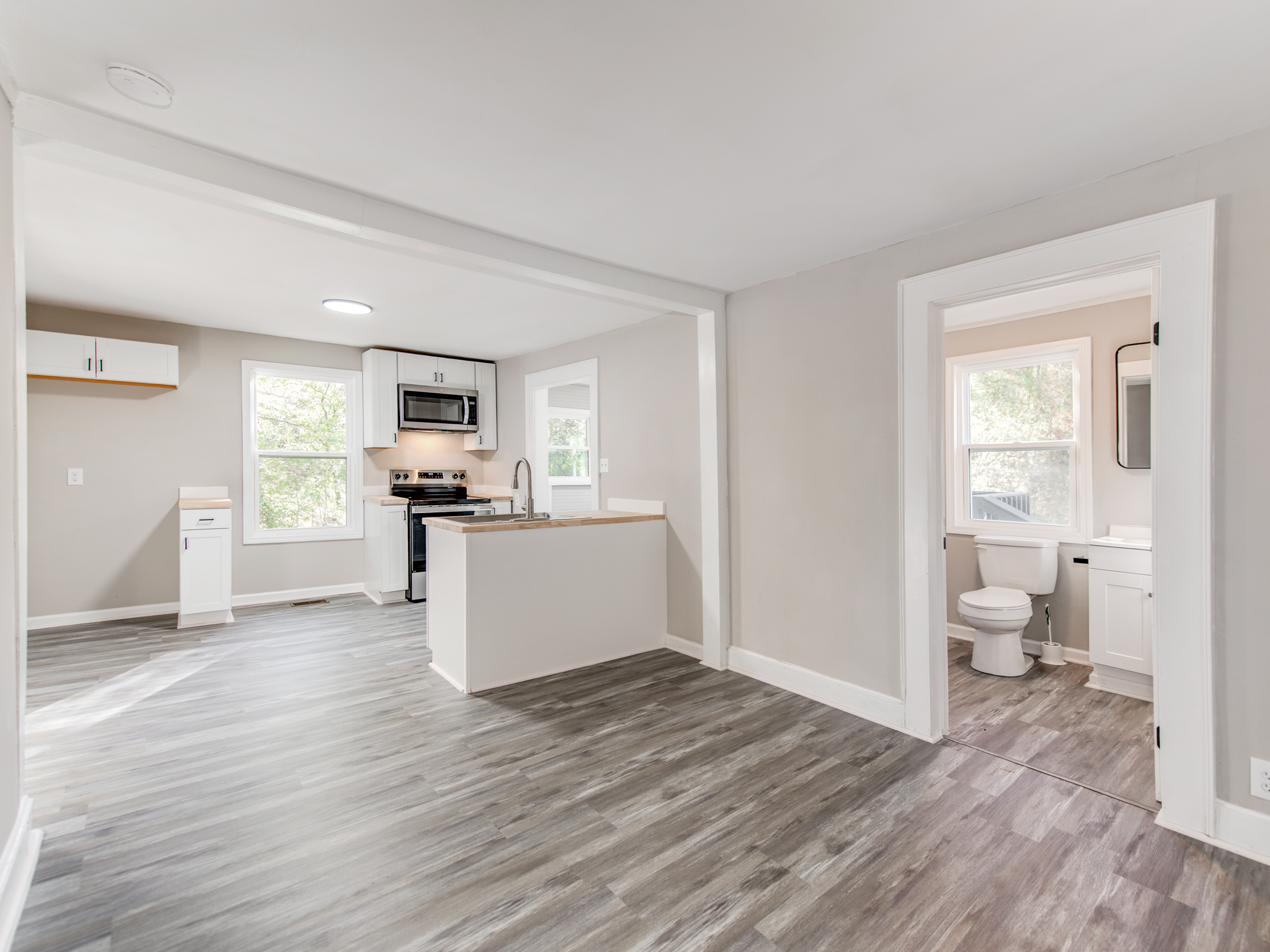 Set on a beautiful 1.4-acre lot, this completely renovated ranch-style home offers the perfect blend of space, comfort, and modern design. With approx. 1,400 sq ft, this 2BR/1BA residence is move-in ready and shines with all-new paint, carpet, luxury vinyl plank flooring, lighting, and fixtures throughout. The kitchen features new cabinets, countertops, and stainless appliances with open flow to the dining area and living room. Updated bathroom, new HVAC, plumbing, and electrical provide worry-free living. Enjoy a covered front porch for relaxing and a spacious back deck overlooking a super-sized, level yard—ideal for gardening, entertaining, or outdoor recreation. The expansive lot offers plenty of room for future additions, play, or privacy. Located in a quiet, established neighborhood near parks, schools, shopping, and downtown Greensboro. This beautifully updated ranch delivers space, efficiency, and charm both inside and out, ready to welcome you home.