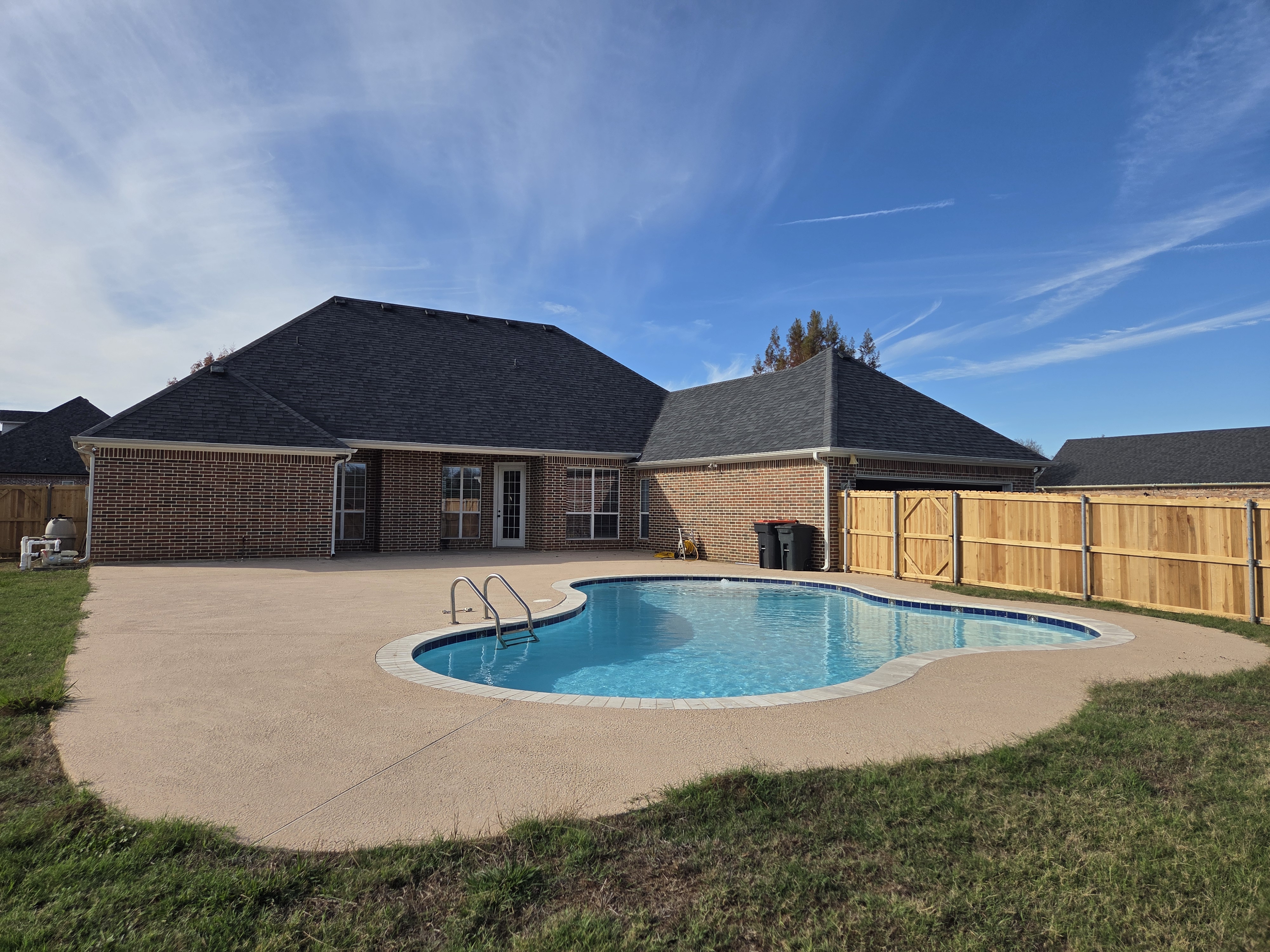 Large backyard with a sparkling inground saltwater pool! Pool has recently been drained, cleaned, painted, and new pump/filters installed. Backyard has plenty of room for a shop or room for the kids to play.