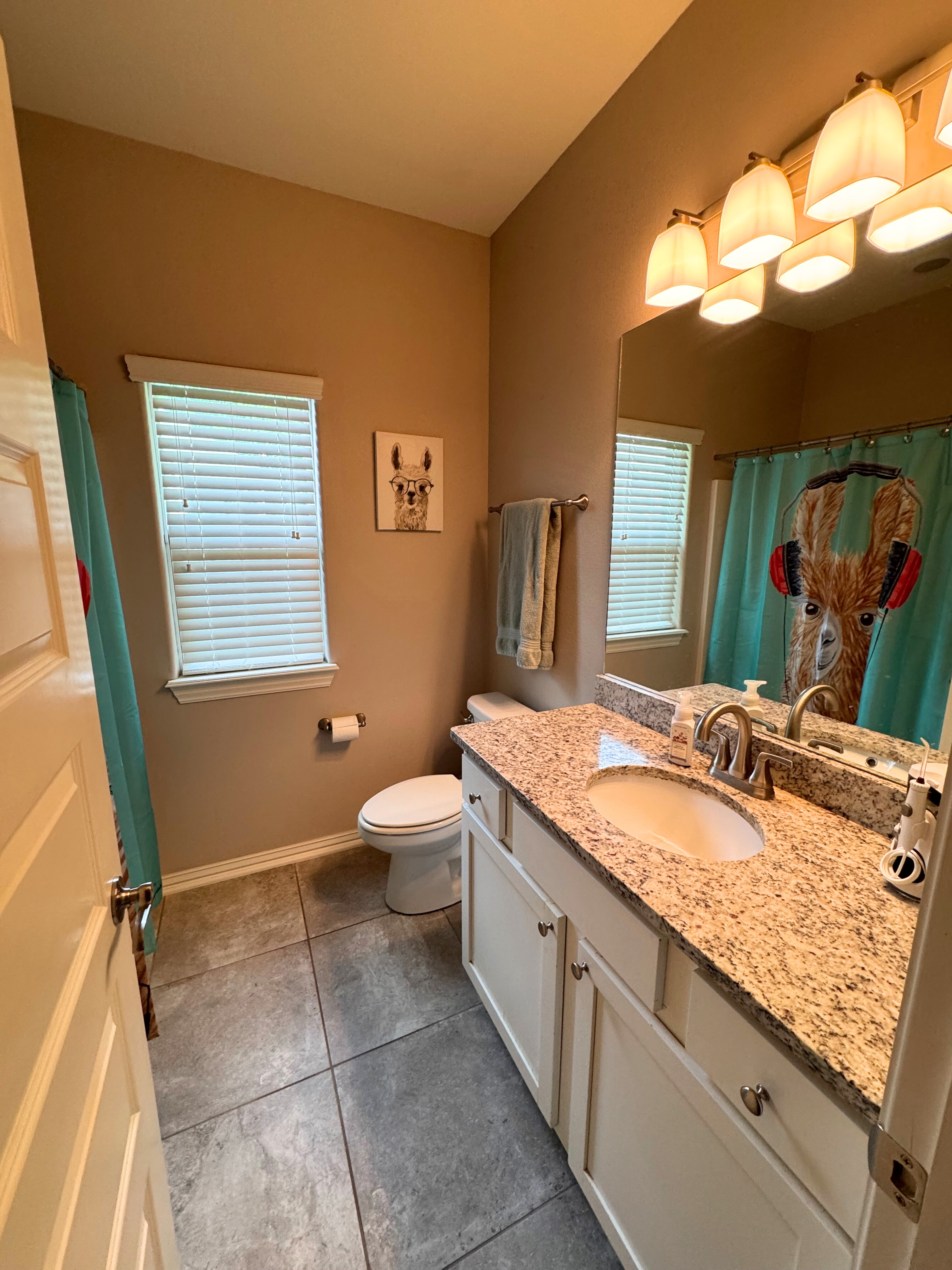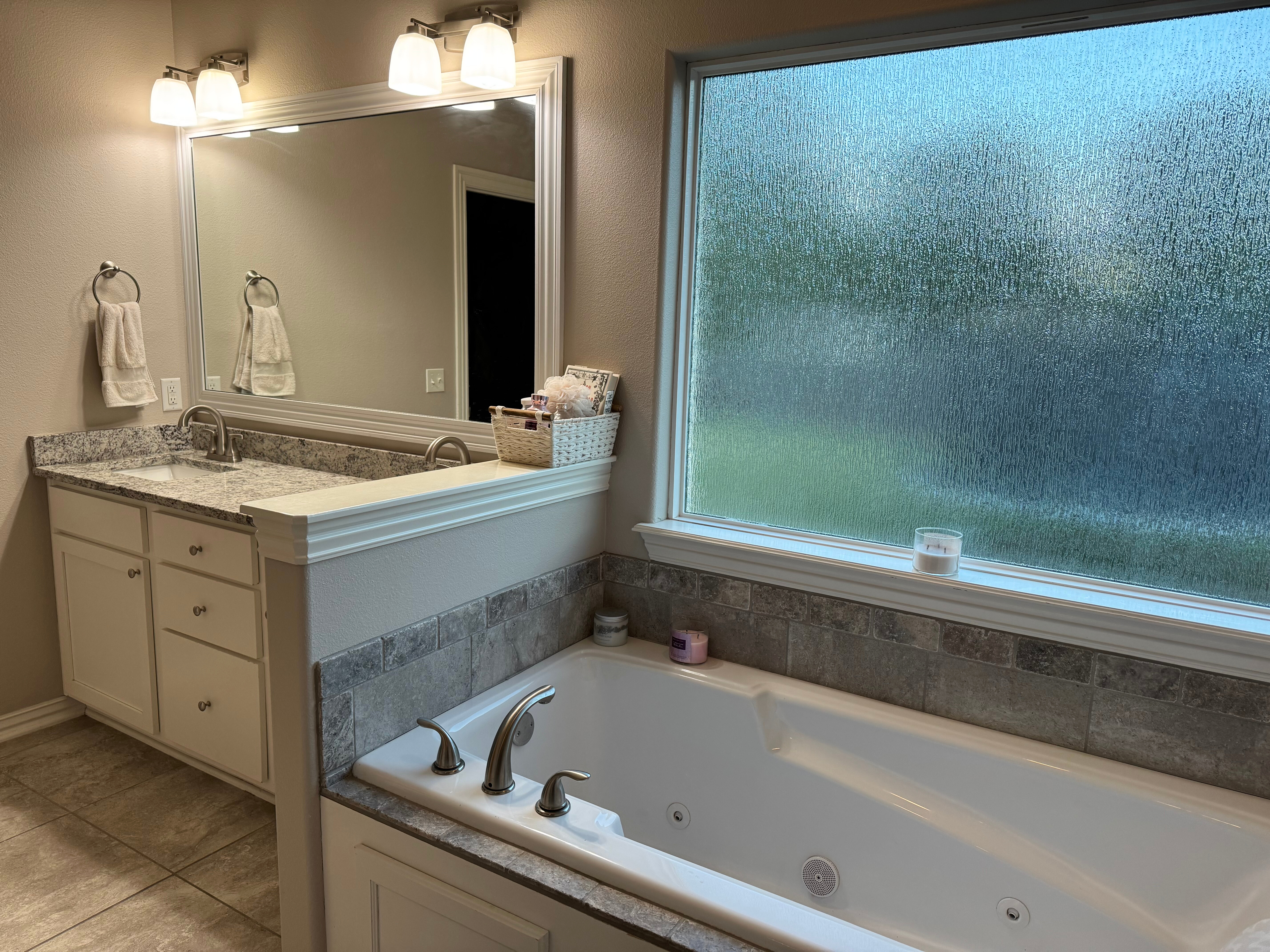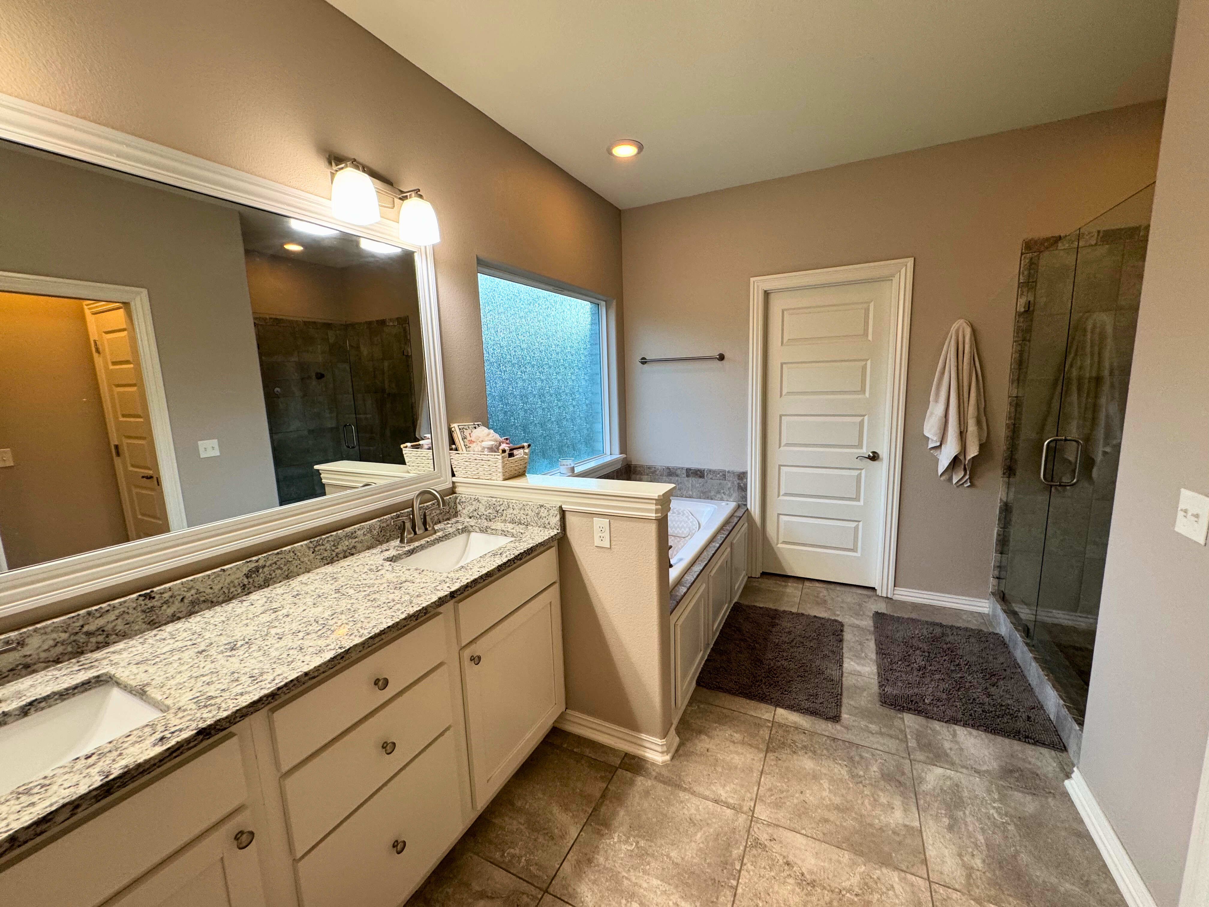 - Bathrooms: There are three full bathrooms, elegantly designed with modern fixtures. The primary bathroom has both a spacious shower and jacuzzi tub for relaxing