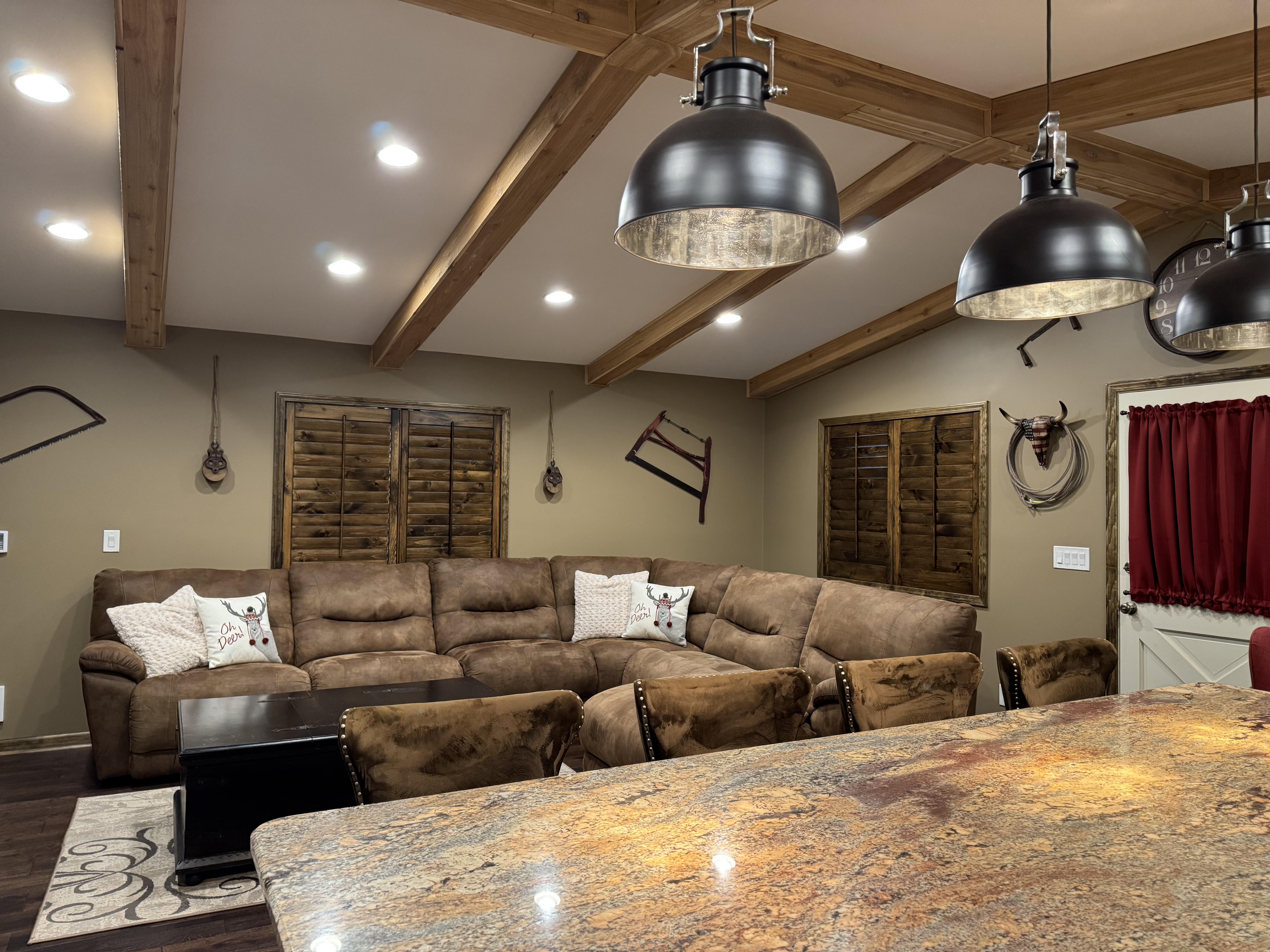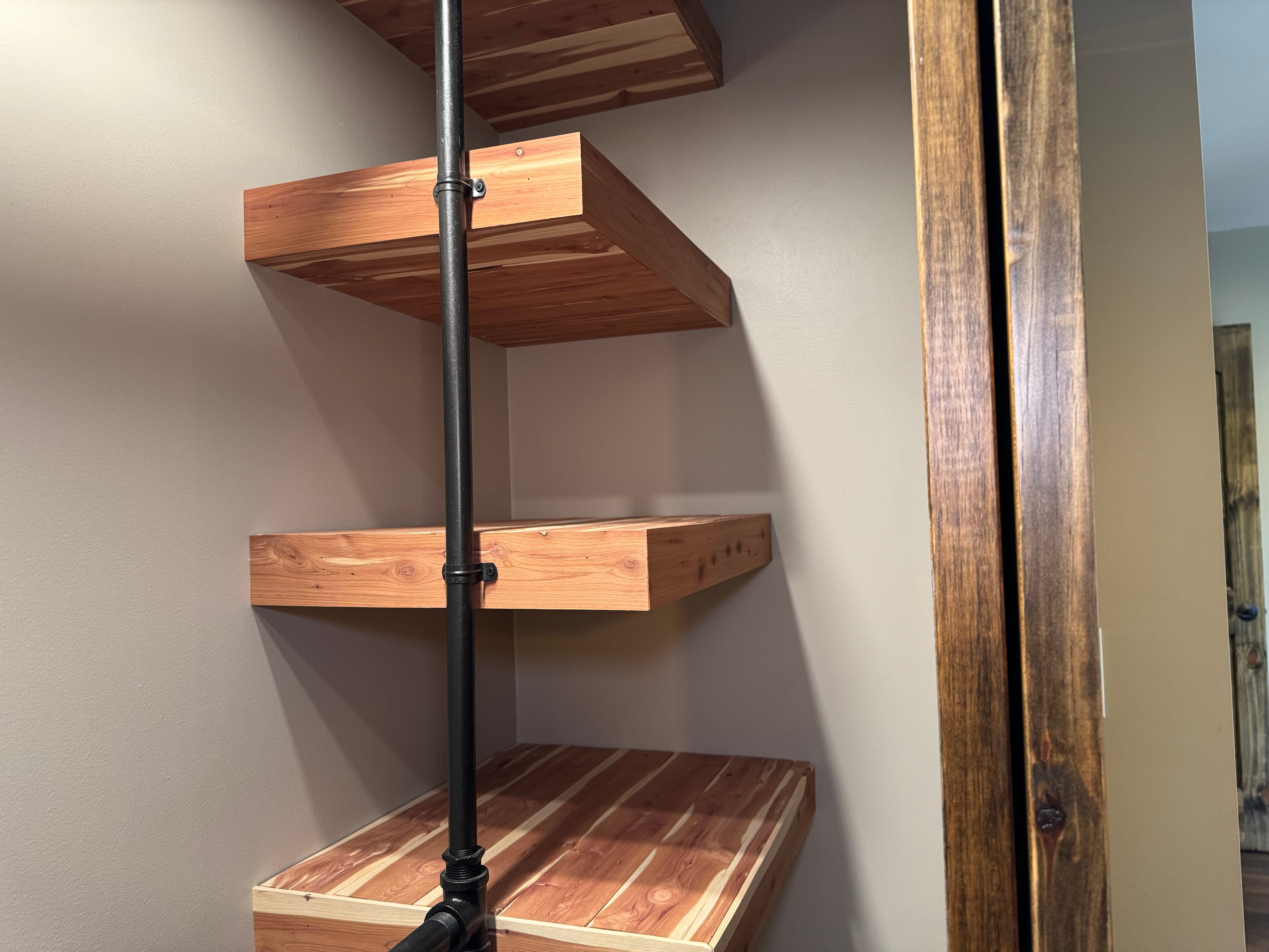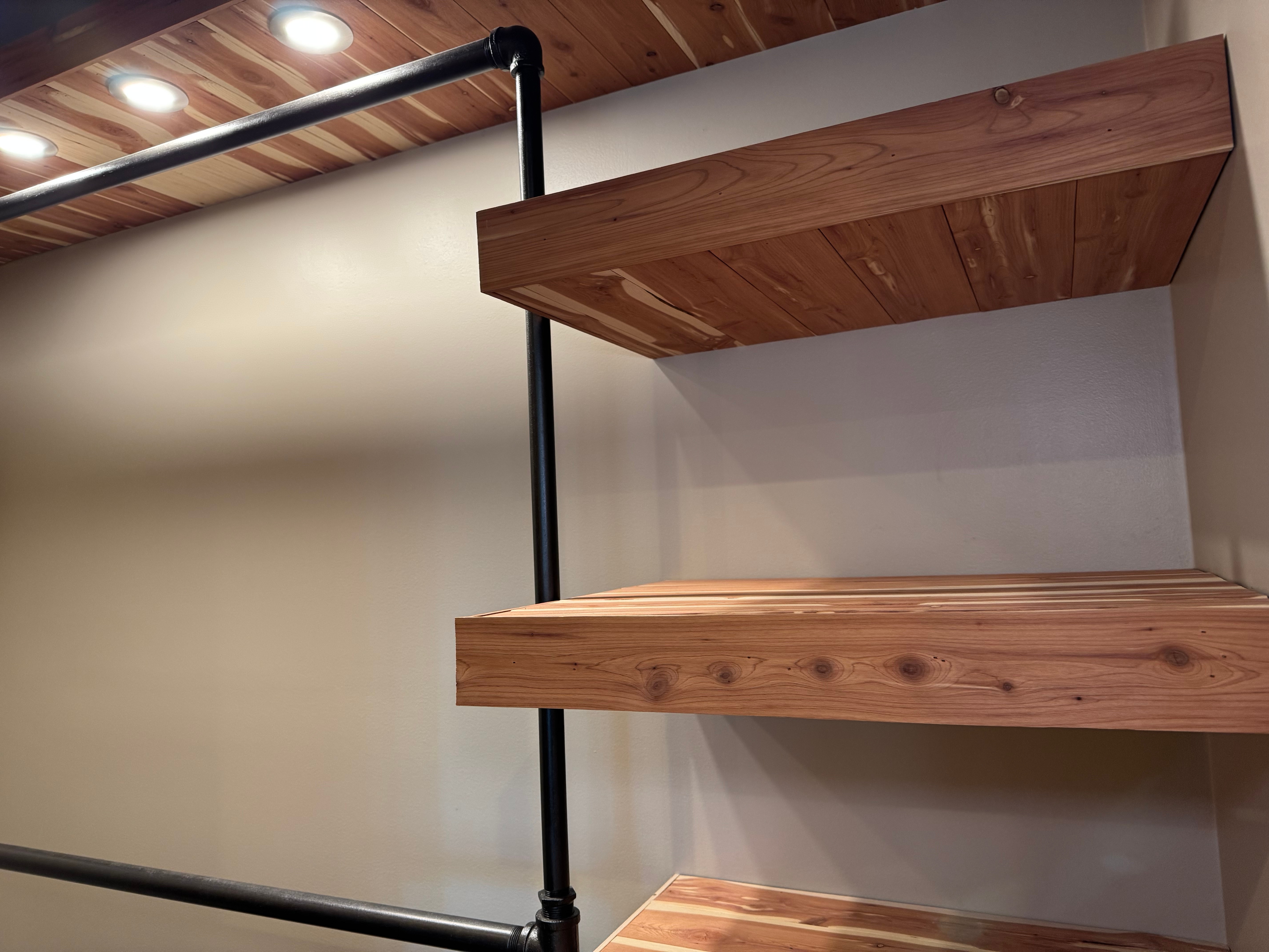 Inside, you'll be wowed by 3 spacious bedrooms, each with cedar-lined closets and plenty of storage for all your needs. There’s even a lovely custom cedar-lined storage bench right at the entrance—perfect for stashing away your shoes, boots, and outdoor gear after a fun day exploring the mountains. Plus, the primary suite comes with a remote-controlled TV stand that you can raise the tv when watching & lower when you want to hide that’s included with the home!