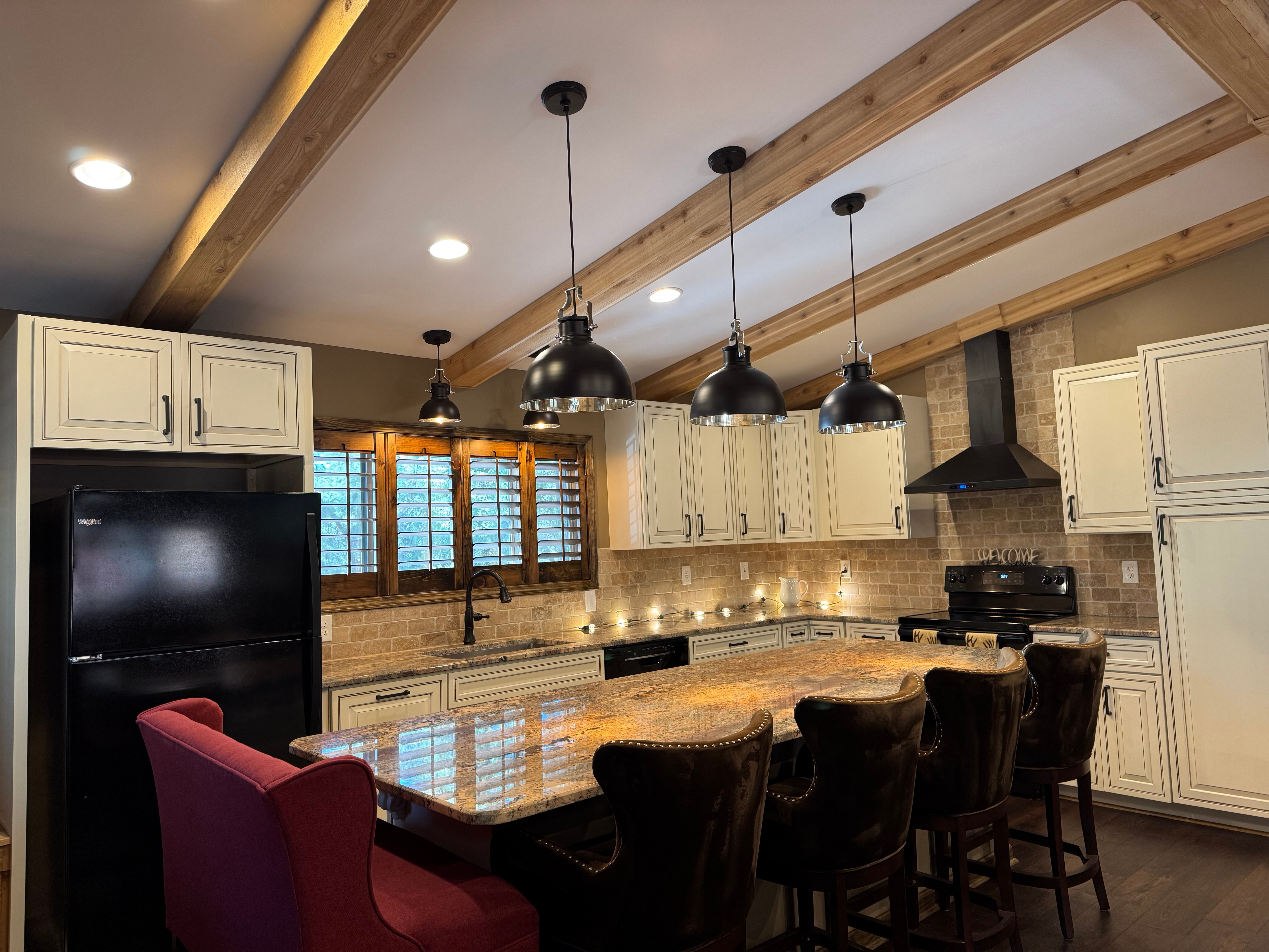 If you love to entertain, you’ll adore the large eat-in kitchen! With a 9-foot granite island perfect for gathering, sleek creamy cabinetry boasting pull-out shelves and soft-close drawers, plus stylish black appliances (including a refrigerator, stove/oven, dishwasher, wine/beverage fridge, and washer/dryer—all included!), this kitchen is a dream come true.
