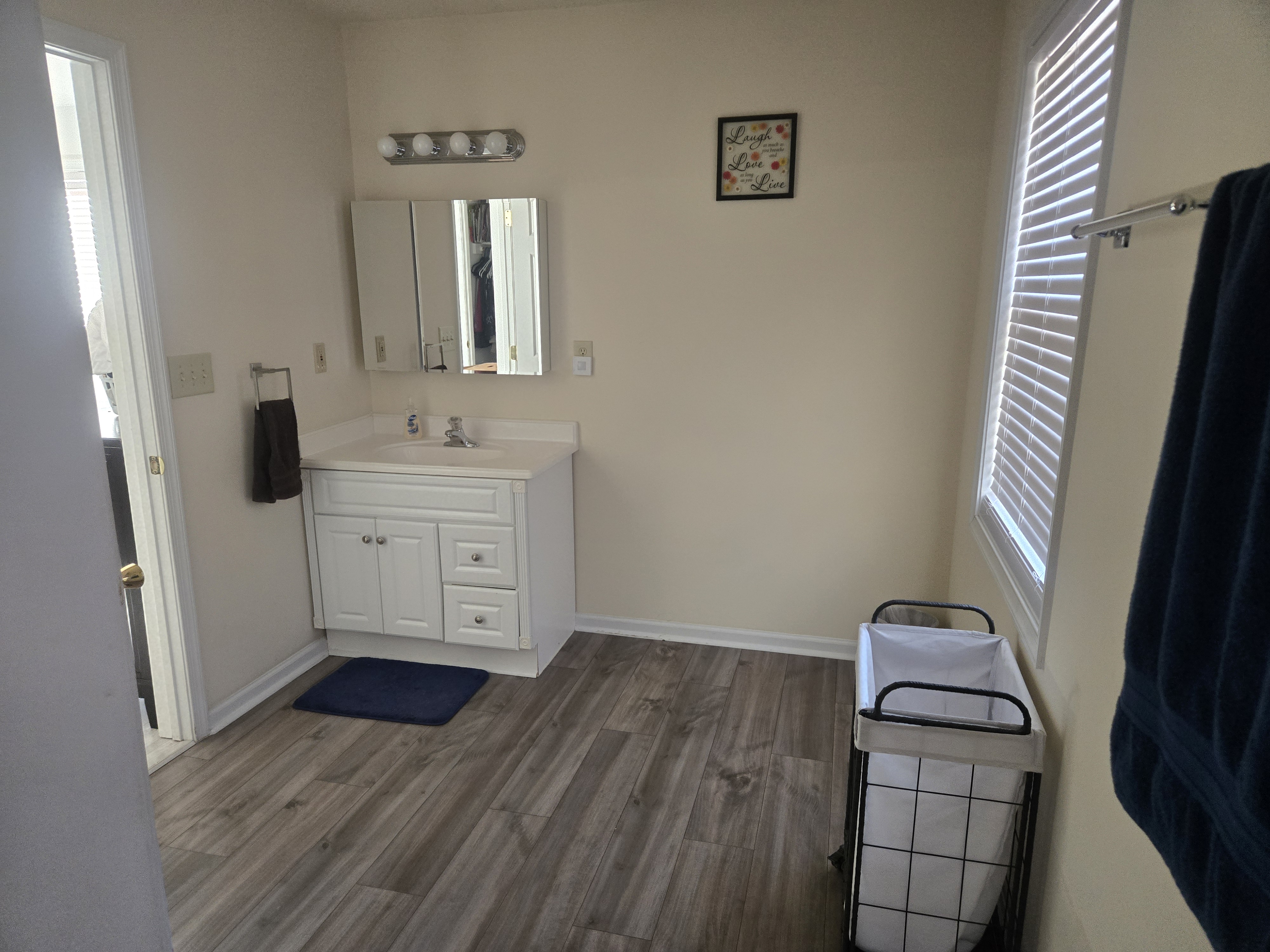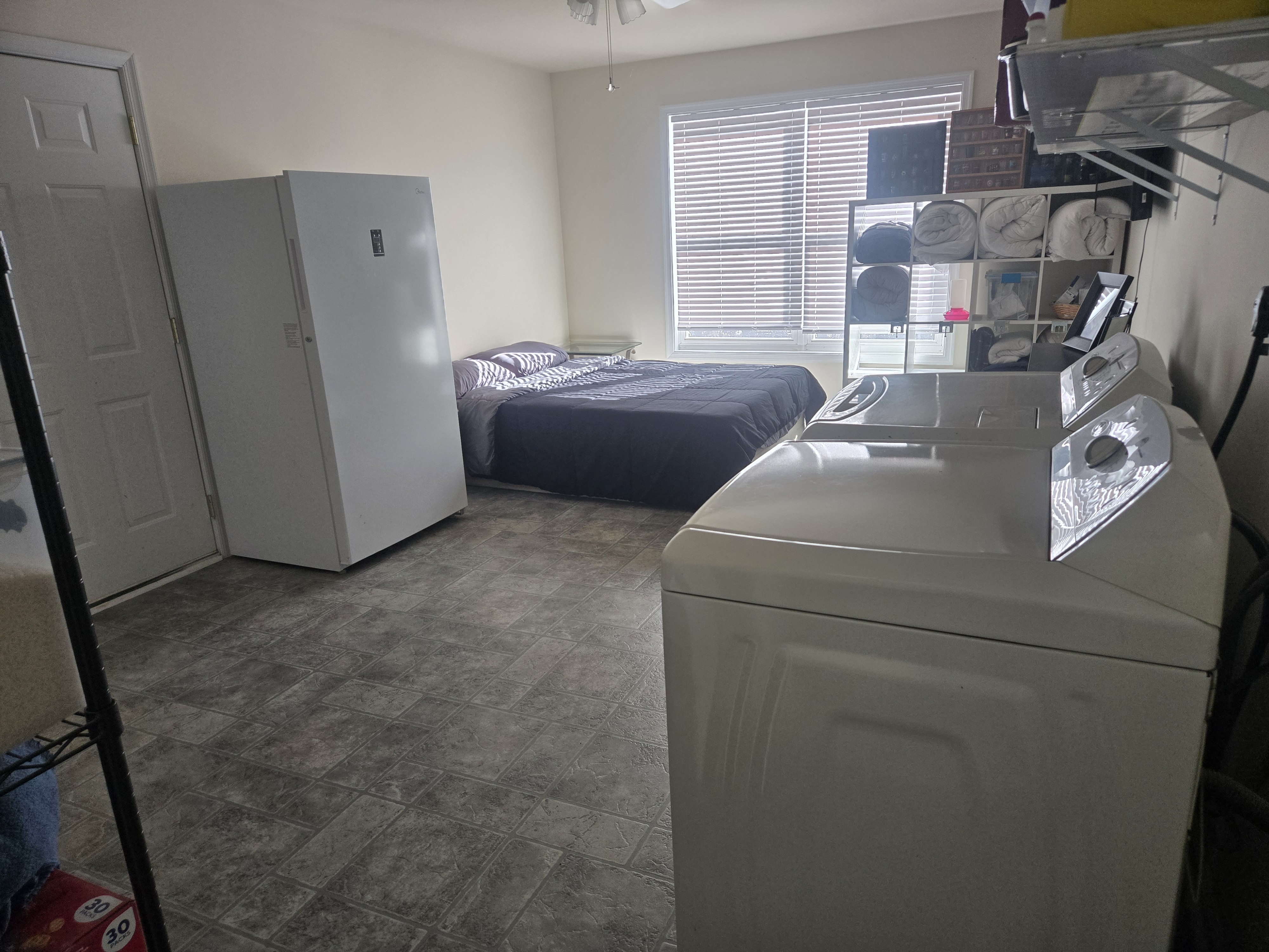 The main level features a large master bedroom, with a full bathroom. A second large room on the main level serves as a laundry room but could also be used as a second/spare bedroom or office and connects to the main full bathroom. The large kitchen is equipped with newly acquired stainless steel appliances, providing a modern and functional cooking space. A small cellar below can also be used for additional storage space.