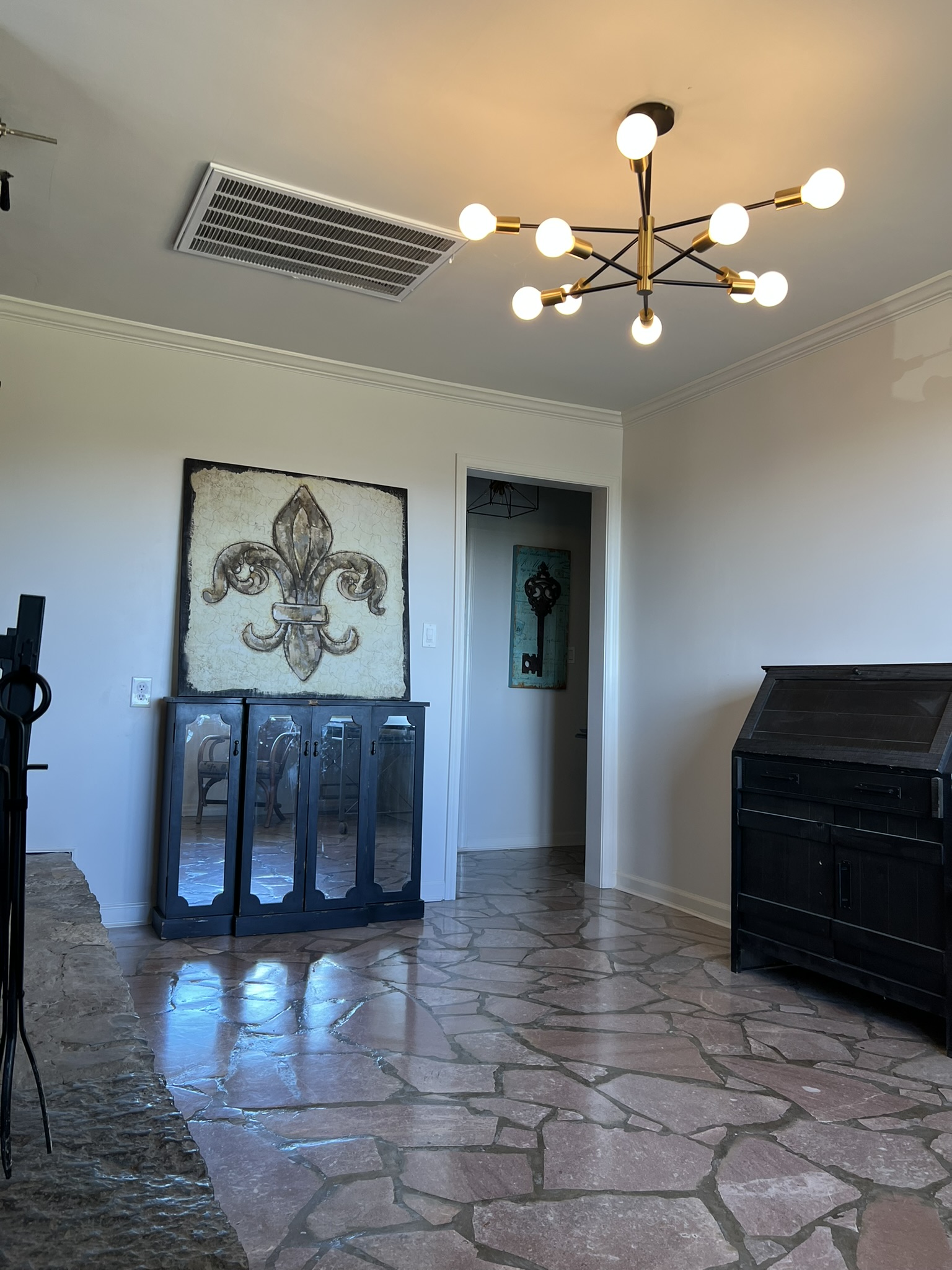 We have put in new sheetrock throughout the house along with all new baseboards and all new crown molding. All new doors and hardware. All new updated lighting. New flooring in bedrooms! All new toilets with boudets in each bathroom. Painted kitchen cabinets with new hardware and soft close hinges. New flooring through entry, kitchen and laundry room. 2 year old appliances. Double oven and gas stove.