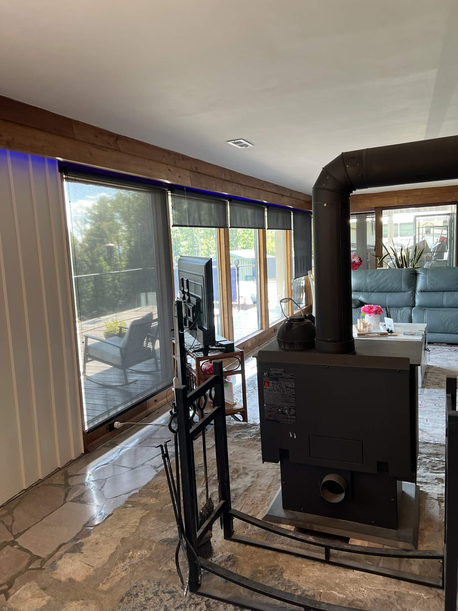 We have updated the fuse box. We redid the deck and it is stained and sealed! We updated the fireplace in main living room with a wood burning stove.