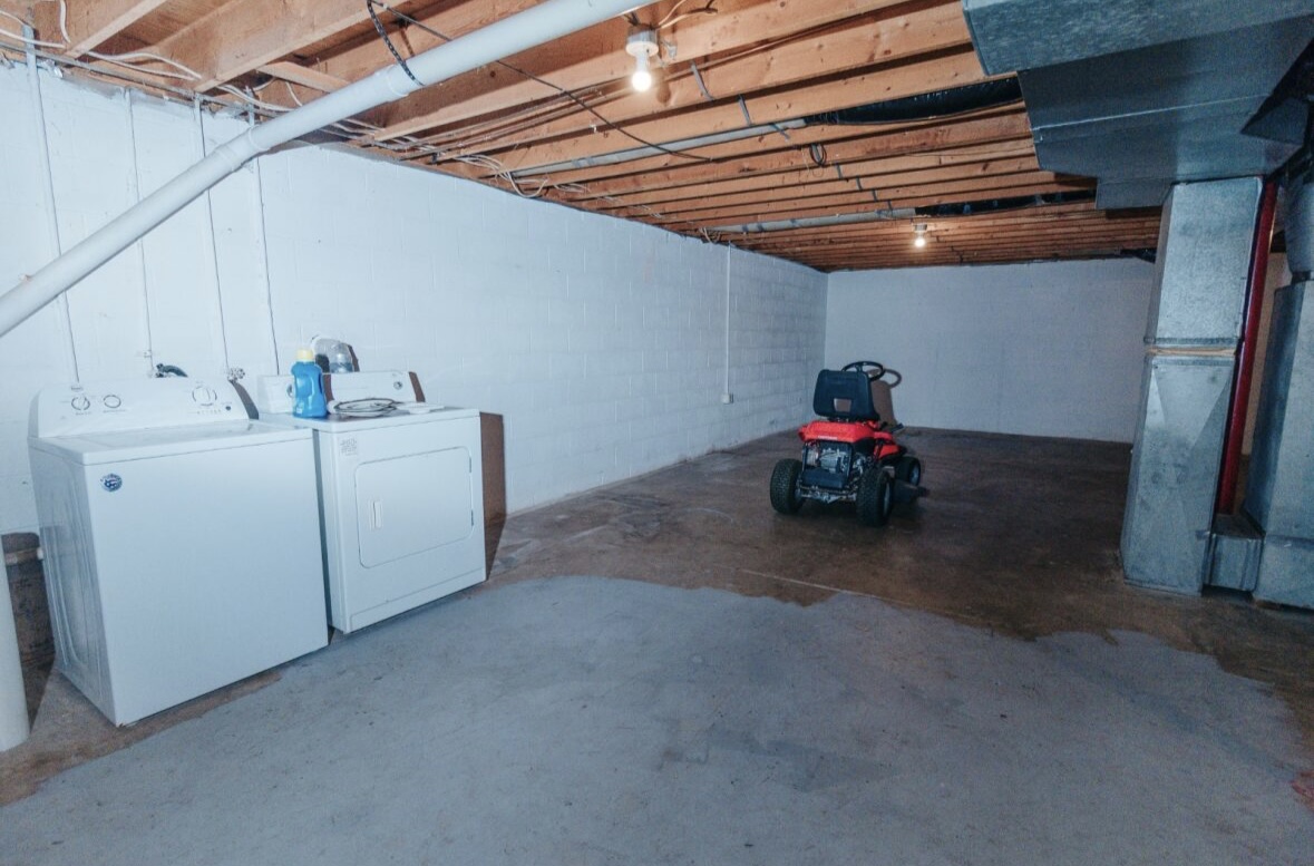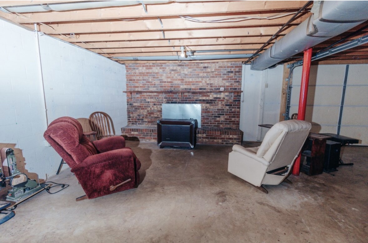 A full basement that can easily be finished for additional living space, complete with a fireplace for added charm