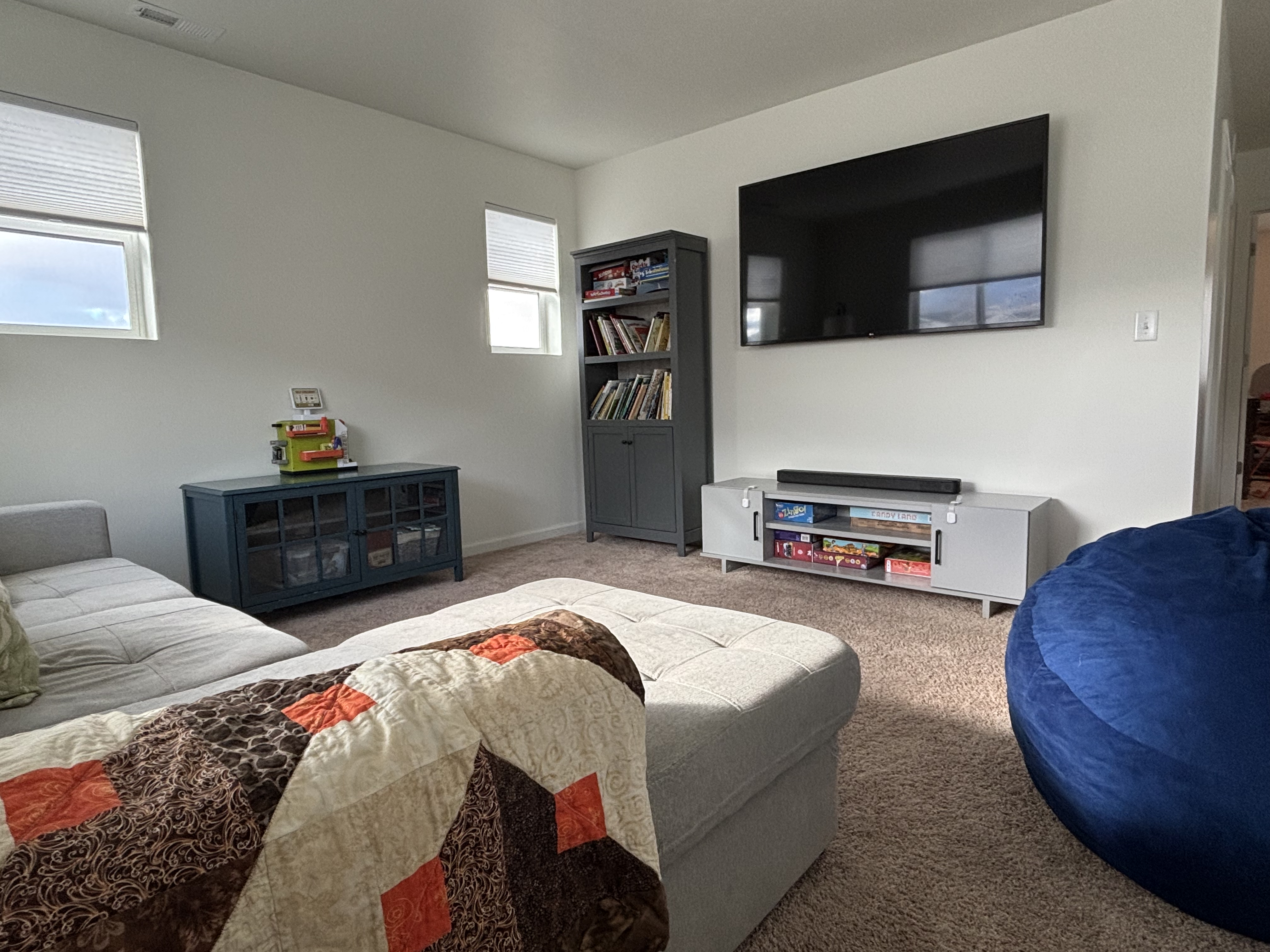 Welcome to this stunning, move-in ready, 4-bedroom, 2.5-bath home offering over 2,600 sq. ft. of thoughtfully designed living space. Built in 2023, this open-concept layout features a chef’s kitchen with sleek quartz countertops, stainless steel appliances, and a spacious island perfect for entertaining. An extra downstairs room can be used as an office, library, or guest room. Upstairs, you’ll find 4 generously sized bedrooms, including a large primary suite with an oversized walk in closet. The home also boasts a versatile loft, ideal for play area or media space. Outside enjoy your private backyard that backs up to a beautiful park with a playground and mountain views. Minutes walk away from Cory Wride Memorial Park.