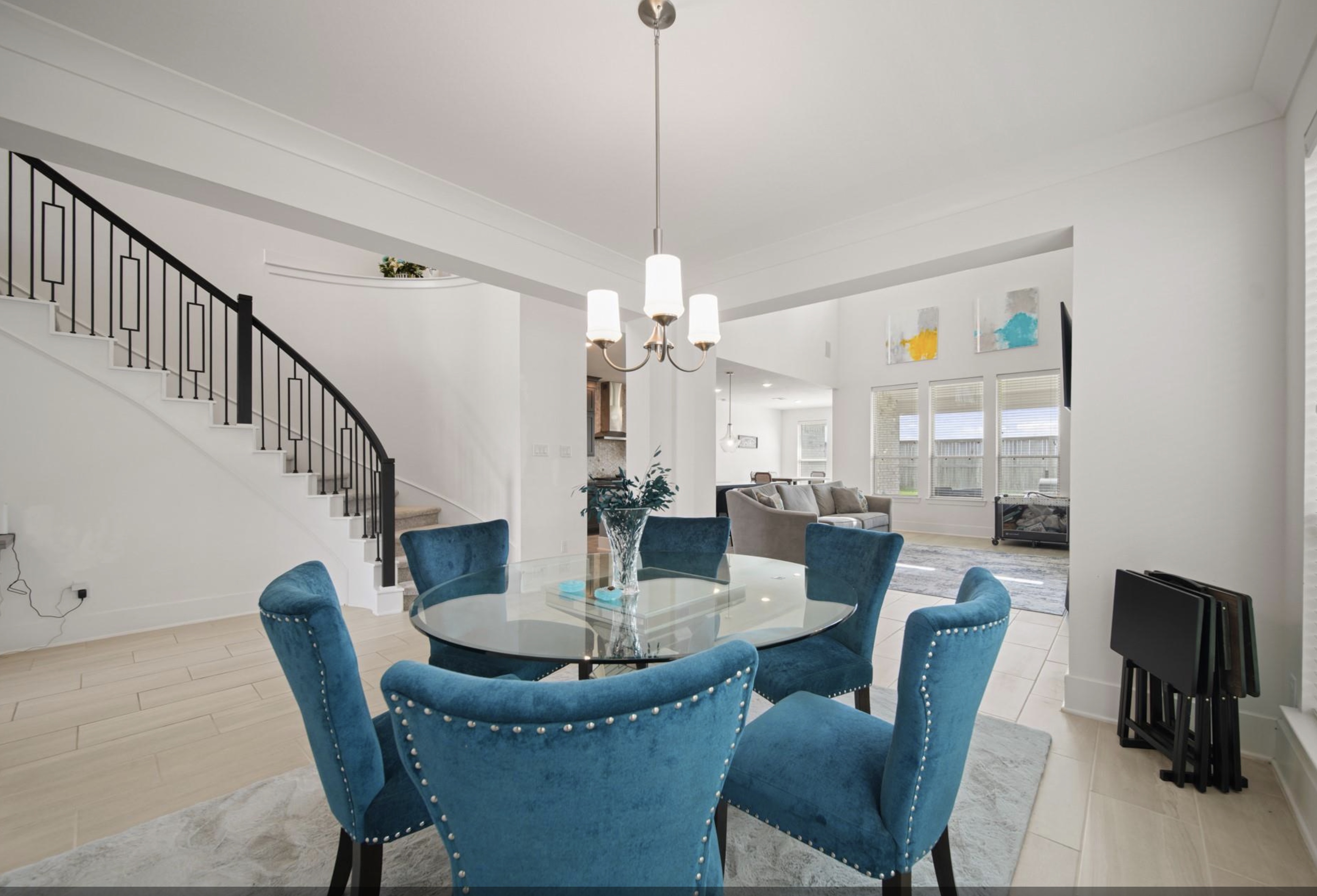 Built in 2021, this 4-bed, 3.5-bath Westin Emmaline home offers luxury and functionality. The signature rotunda entry leads to an open living/kitchen space with soaring ceilings and custom shelving, quartz counters, and stainless steel appliances. First-floor primary suite features a spa-like bath and huge closets. Upstairs includes a flex room that can be utilized as a game room or office space, and spacious secondary bedrooms.