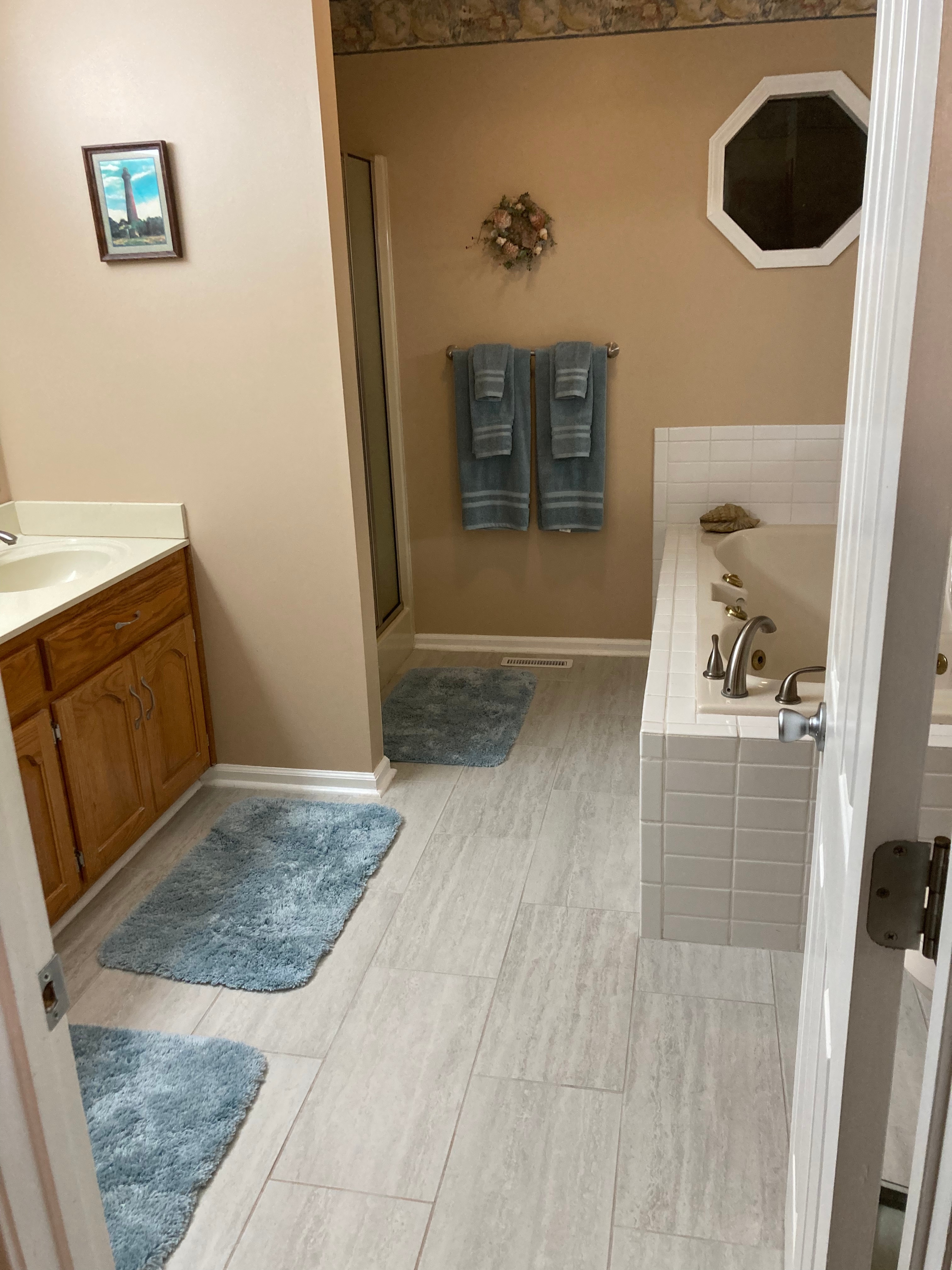 Solid oak and ceramic tile flooring, all brick exterior, master suite on main floor, new roof 2023, all new exterior concrete 2024, aluminum stainless steel gutter guards, heating and air in garage, all exterior paint 2023. Escape from the hustle and bustle to this beautiful retreat situated on a large culdesac lot. Enjoy walks through the neighborhood or relax and unwind on the back deck or in the centrally heated/cooled garage. Outside hot water for your convenience!