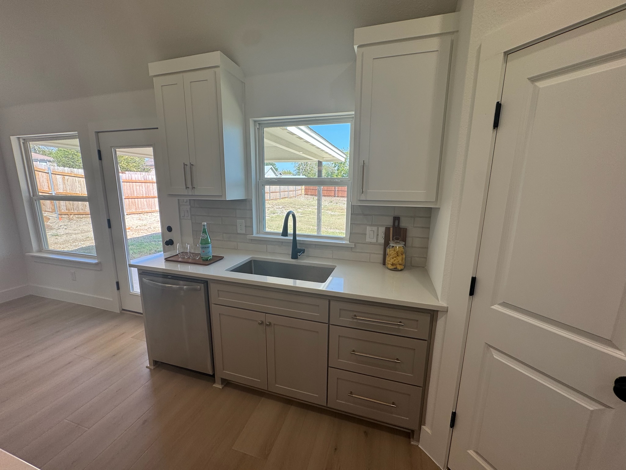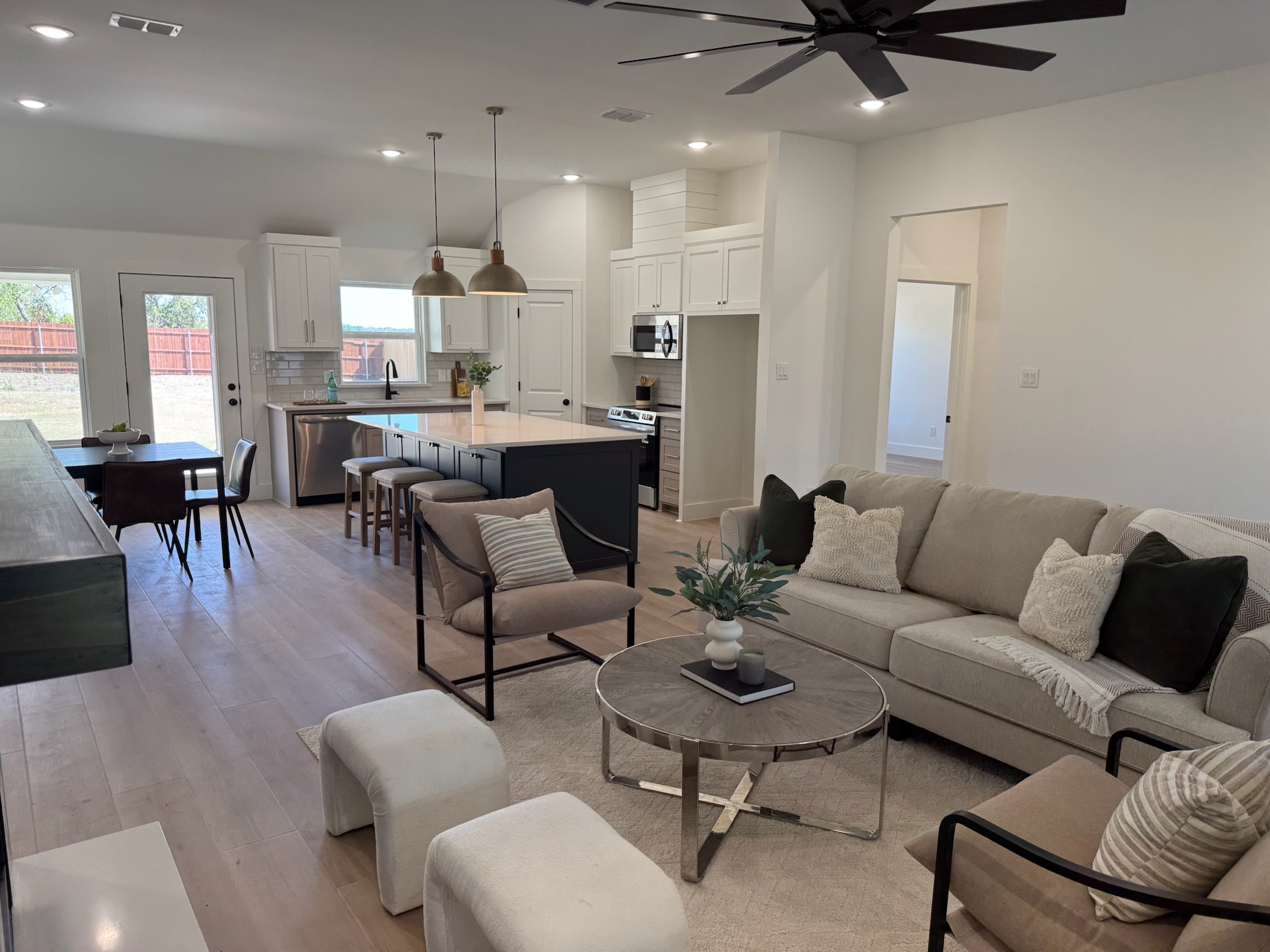 New build modern farm house, must see!! This 3-bedroom, 2-bathroom home in Weatherford, located within minutes of downtown, HEB, Costco, restaurants, and entertainment. The open living area features a (gas) wood-burning fireplace with built in TV Cabinet. Living area adjacent to kitchen with large island and storage featuring custom cabinetry with soft close full extension doors & drawers. The living room flows into the dining area and patio making it easy to entertain or spend time with family. The master bedroom is spacious and includes an ensuite bathroom with a double vanity and walk in shower. The second bathroom also features double vanity with tub shower. Backyard with covered patio fully fenced for security. The home also has oversized two-car garage for parking a truck(s) or large SUV(s). Whether you're looking for a first home or efficient space for your family, this property is everything you need. Don’t miss the chance to own this home!!