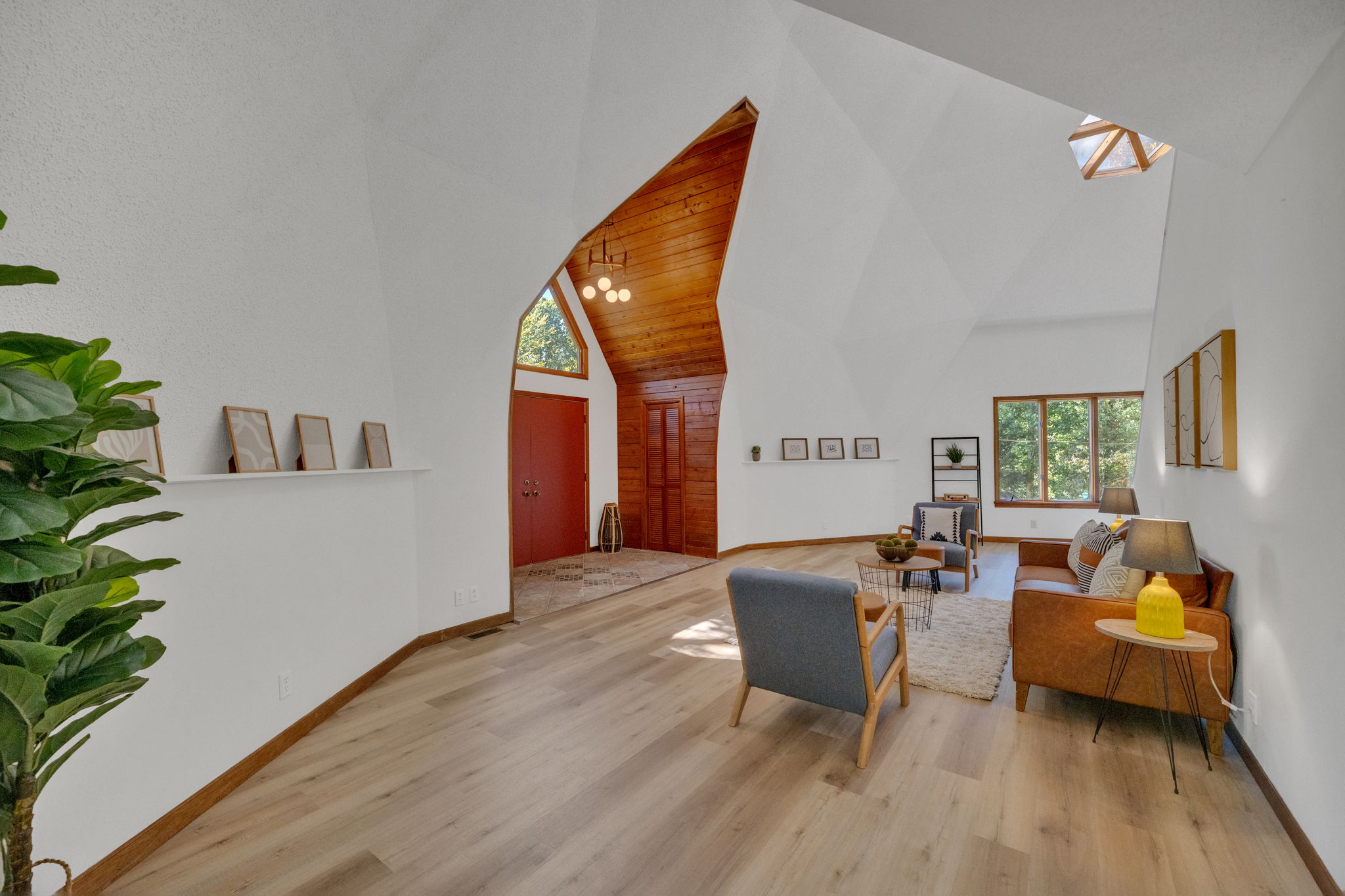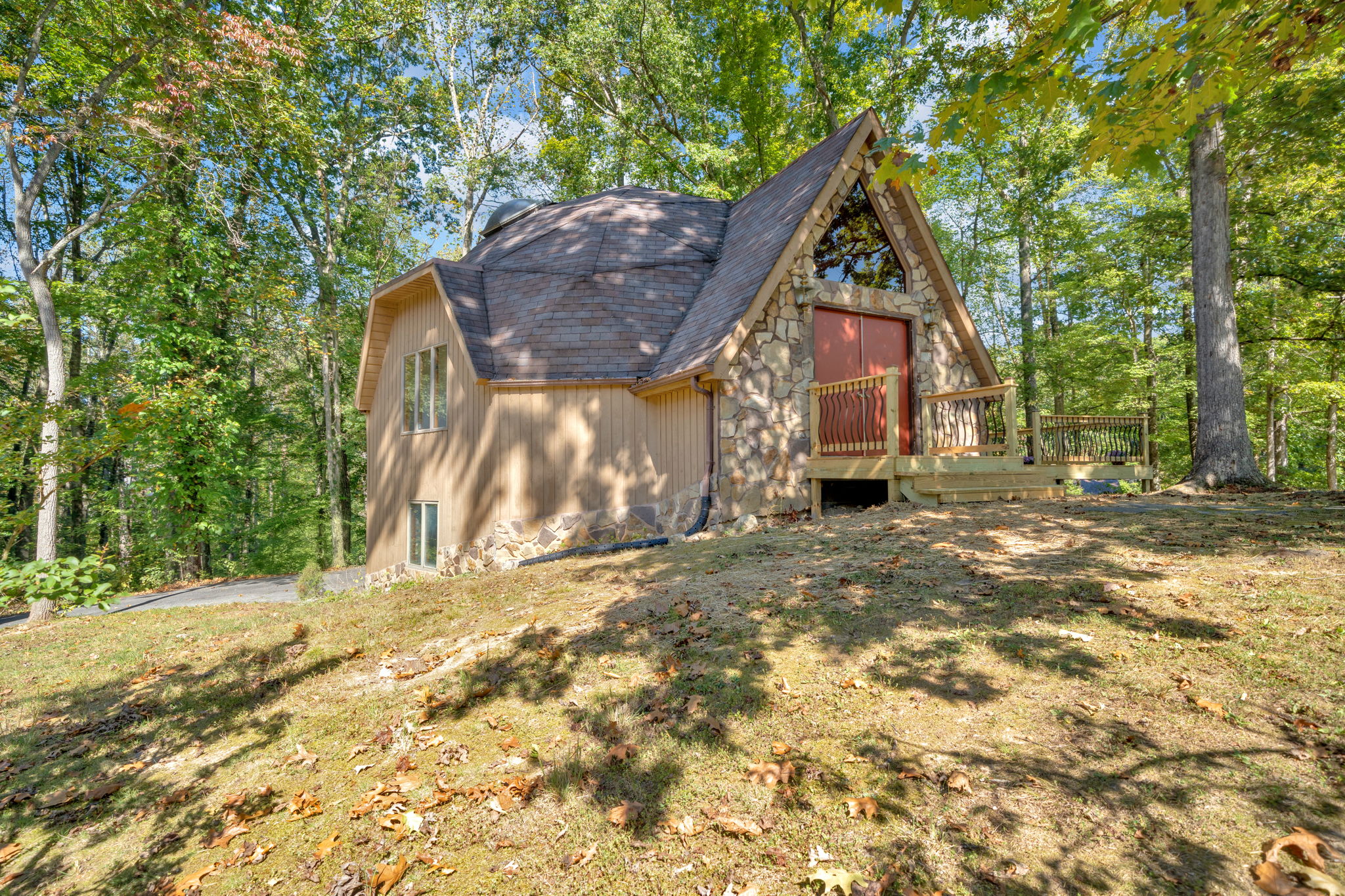 Discover a rare opportunity to own a one-of-a-kind geodesic-designed home nestled in the desirable Tanglewood Forest neighborhood. This charming 3 Bedroom 3 full bath home is surrounded by mature trees, natural shade, and a sense of privacy on a spacious corner lot, this home offers both charm and character in a peaceful setting.