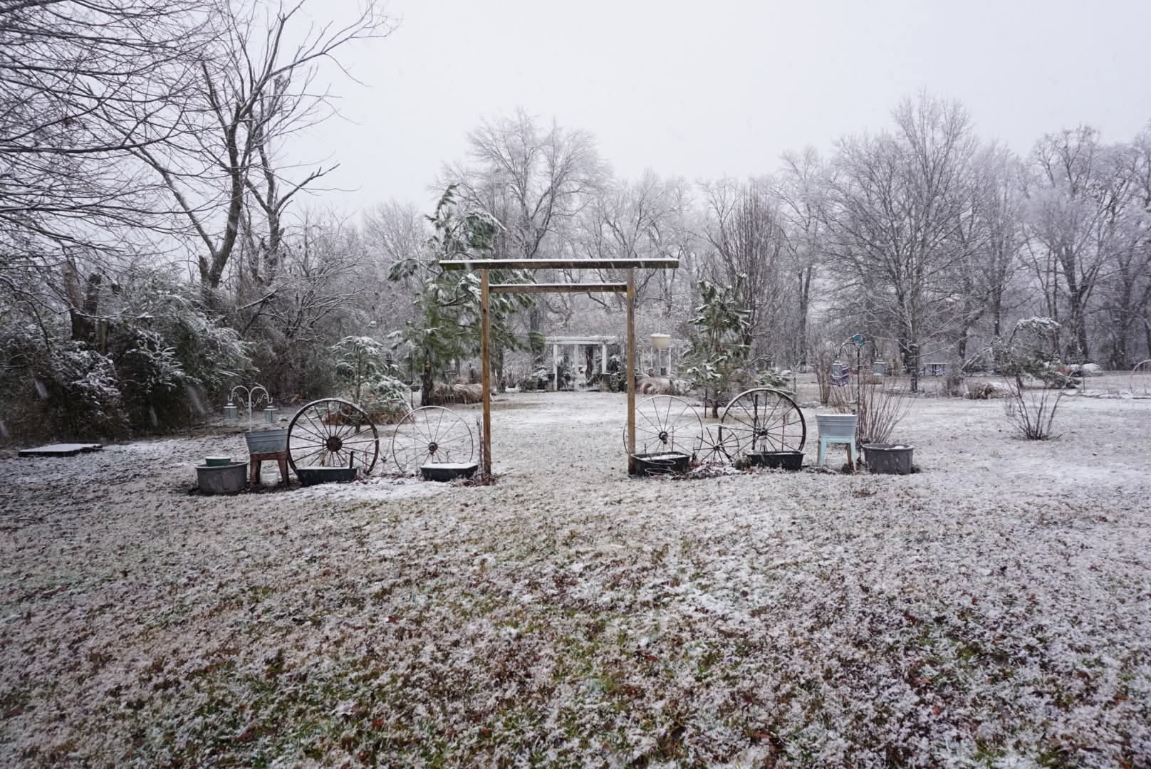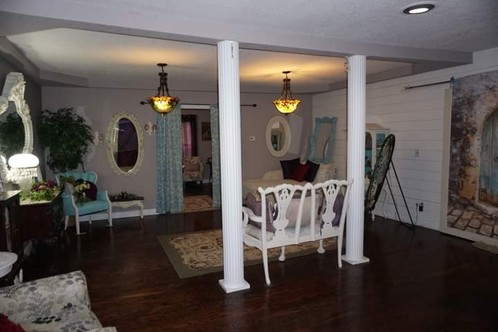 2 Pantry's huge bonus room, party room 28x 80, all appliances, water softener 4 porches, metal roof on main house in front, a big work room 28x50, an attached 1 bedroom apartment that is rented . Natural gas, 2 Central heat and air units lass than 3 years old . Vinyl siding, the home sits on 3.9 acres on frontage Rd off main hwy. Only 3 miles from town. Has lots of trees a small pond.