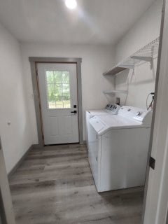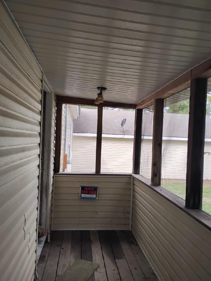 2 Pantry's huge bonus room, party room 28 x 80, all appliances, water softener 4 porches, metal roof on main house in front, a big work room 28x50, an attached 1 bedroom apartment that is rented . Natural gas, 2 Central heat and air units lass than 3 years old . Vinyl siding, the home sits on 3.32 acres on frontage Rd off main hwy. Only 3 miles from town. Has lots of trees a small pond.