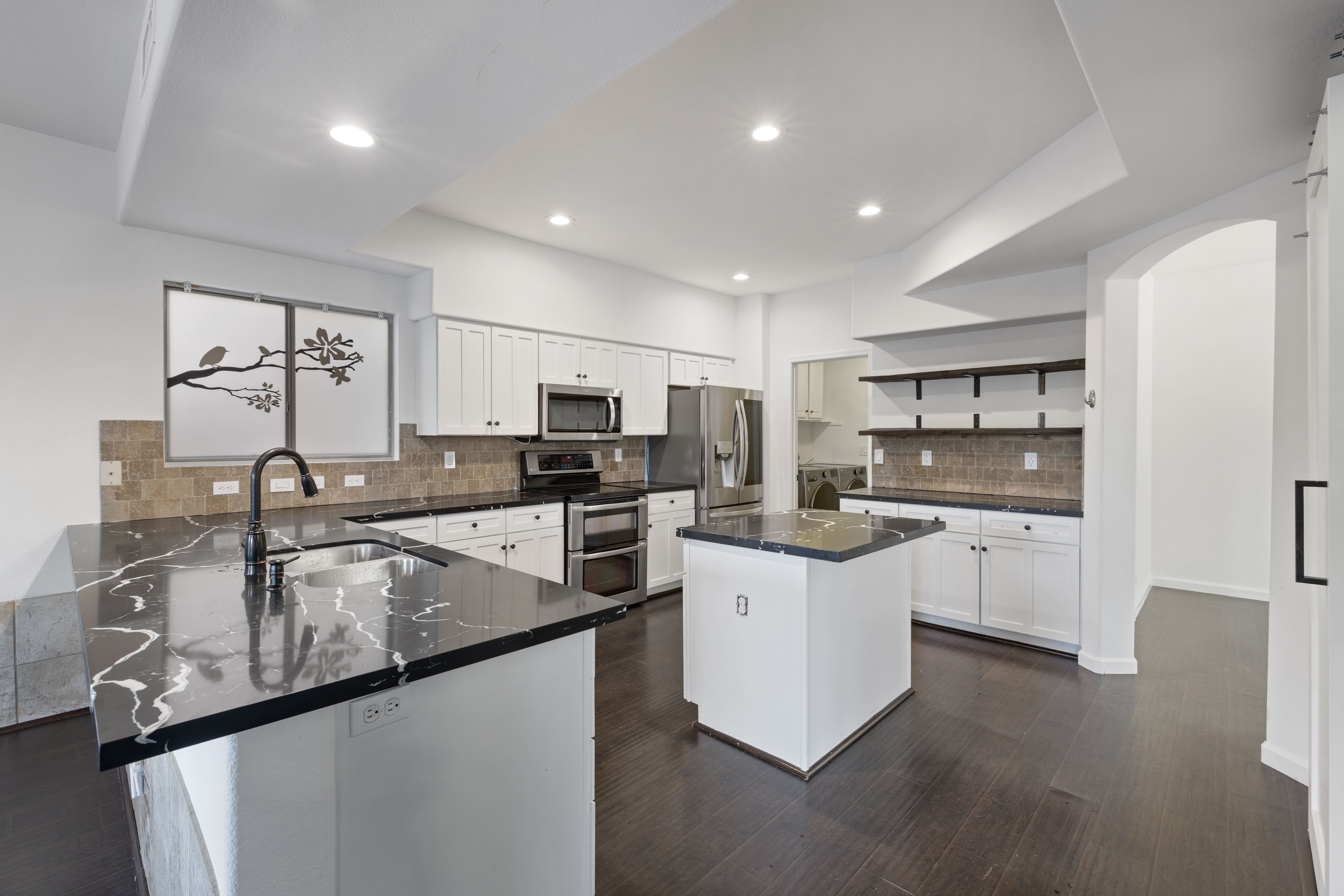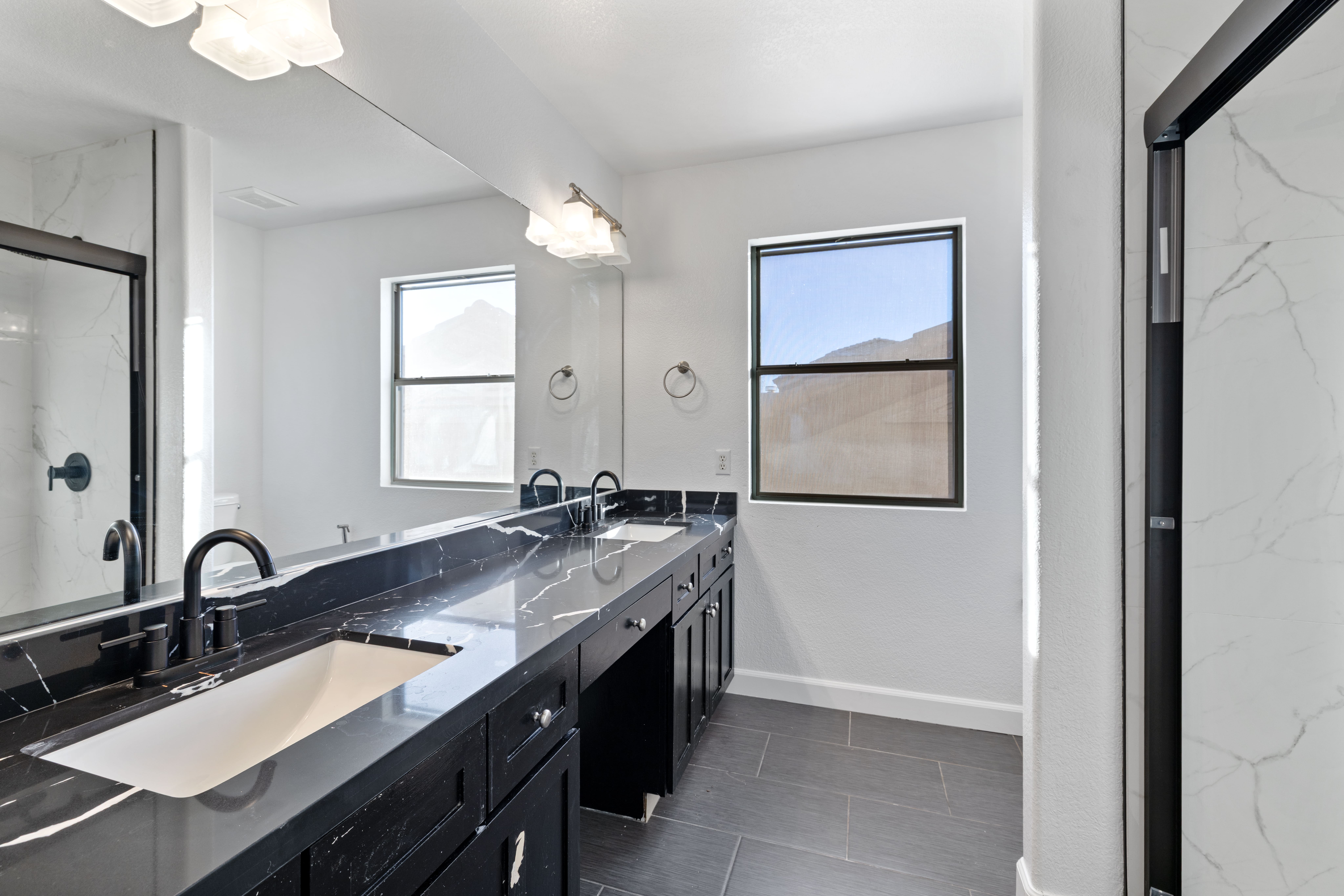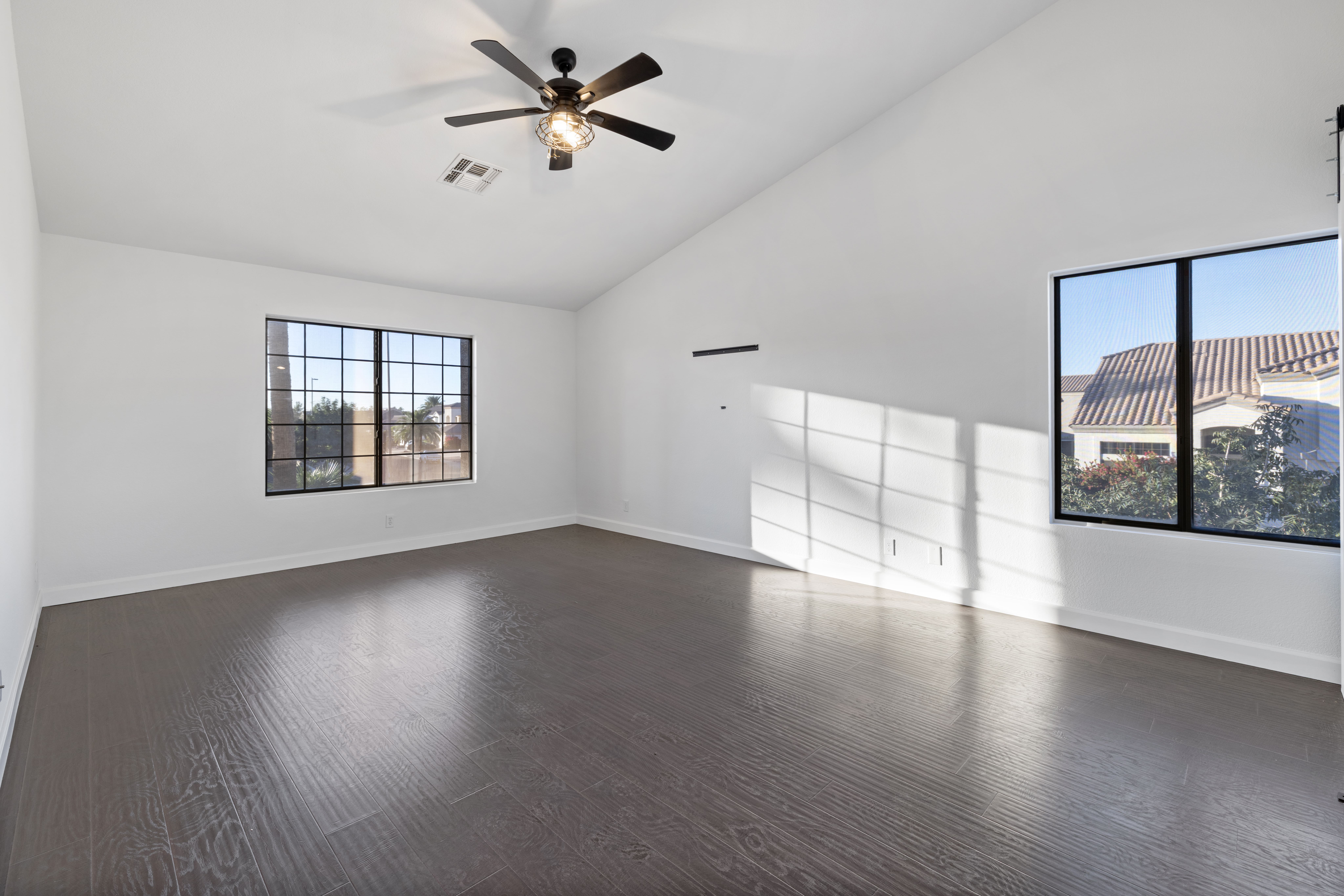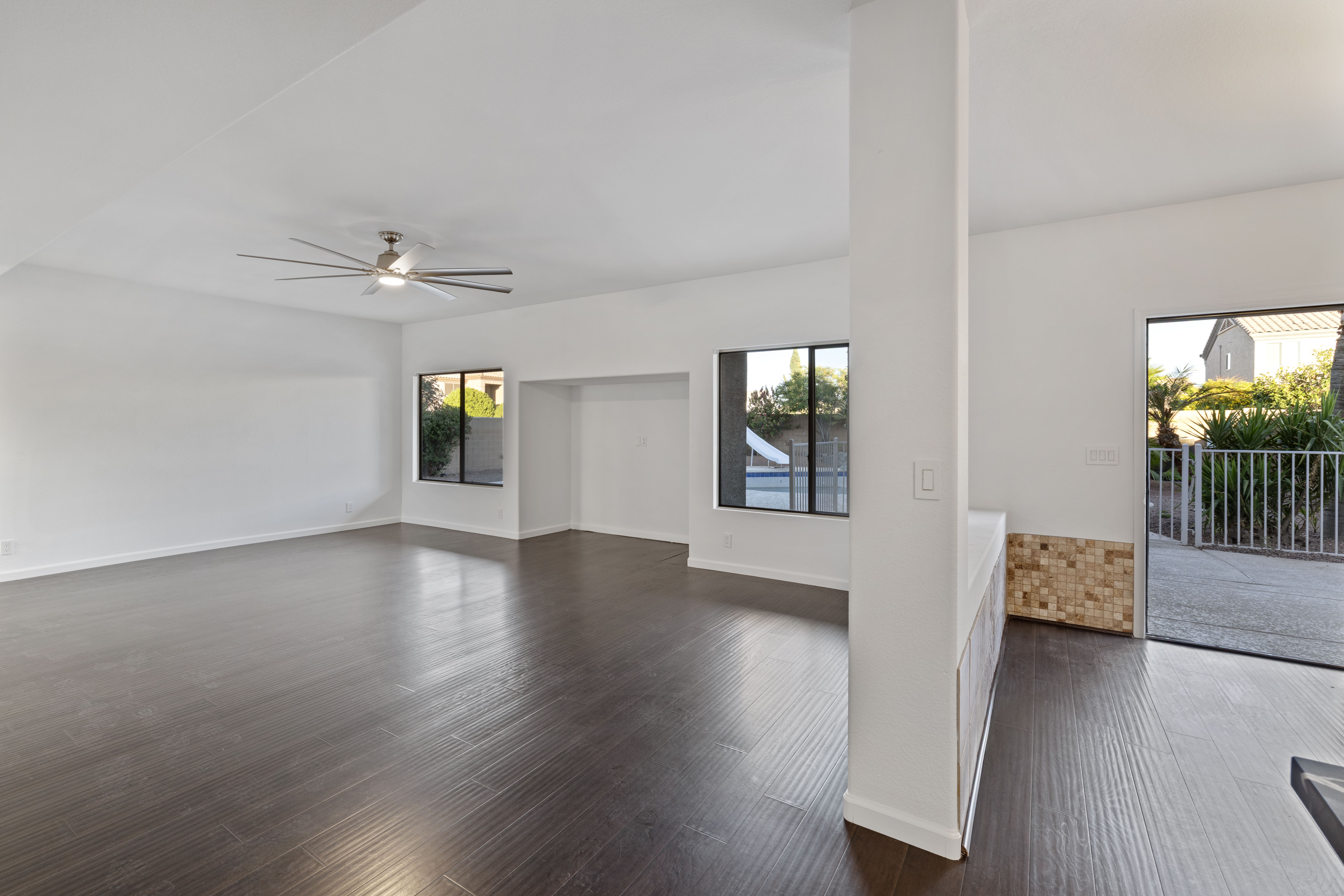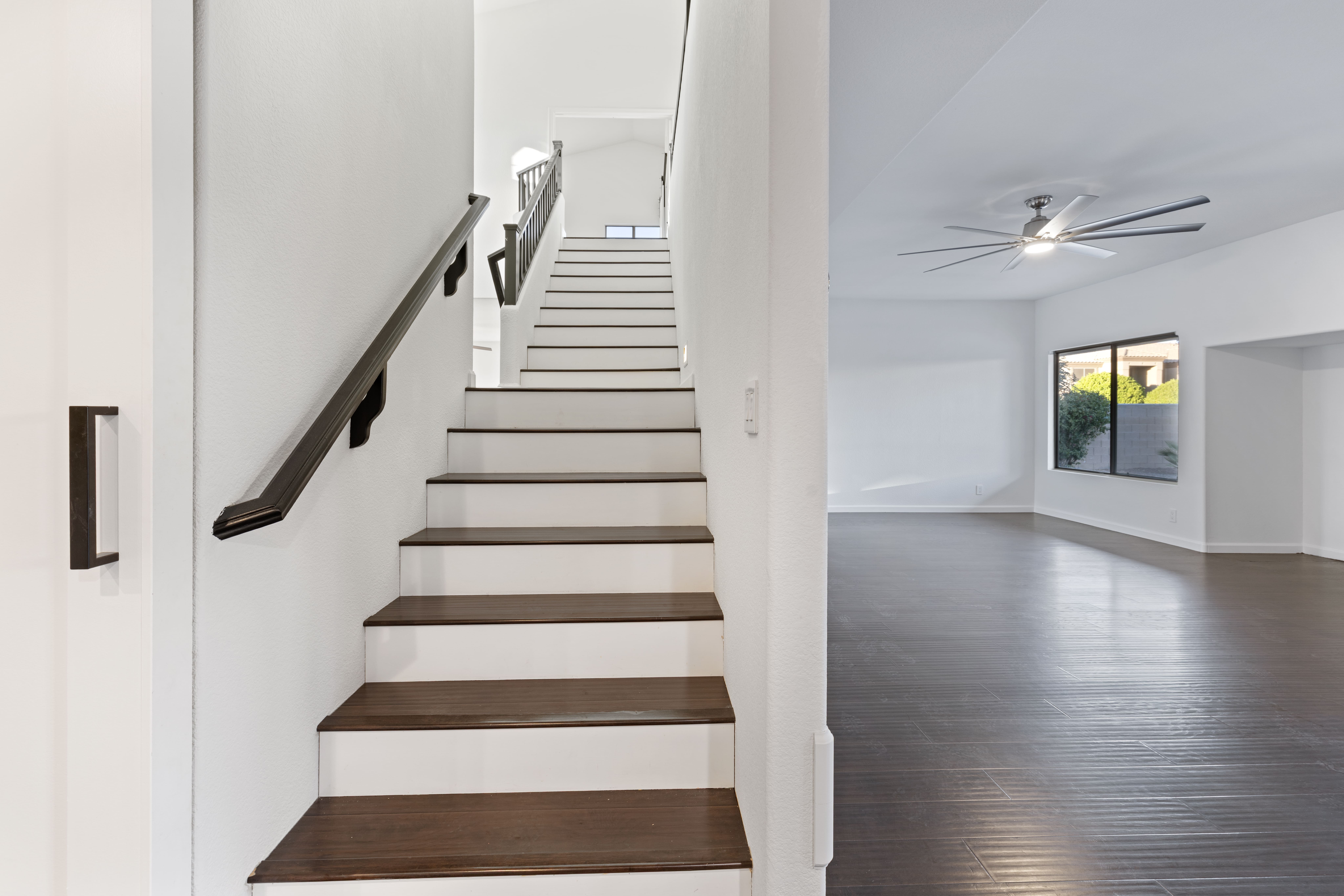Freshly renovated 5-bed, 3-bath home with RV gate, new interior paint throughout, renewed bathrooms, and brand-new kitchen countertops. The layout features formal living and dining areas, a spacious family room, and an upstairs loft with front and back balconies. The main suite offers vaulted ceilings, a generous closet, dual sinks, and direct balcony access. Enjoy the extended covered patio and sparkling diving pool with waterfall, ideal for relaxing or entertaining. This beautifully updated property blends comfort, space, and style in a well-established Gilbert neighborhood close to parks, schools, shopping, and dining. Move-in ready and waiting for its next chapter, this home provides a great combination of modern updates, flexible living areas, and inviting outdoor space.
