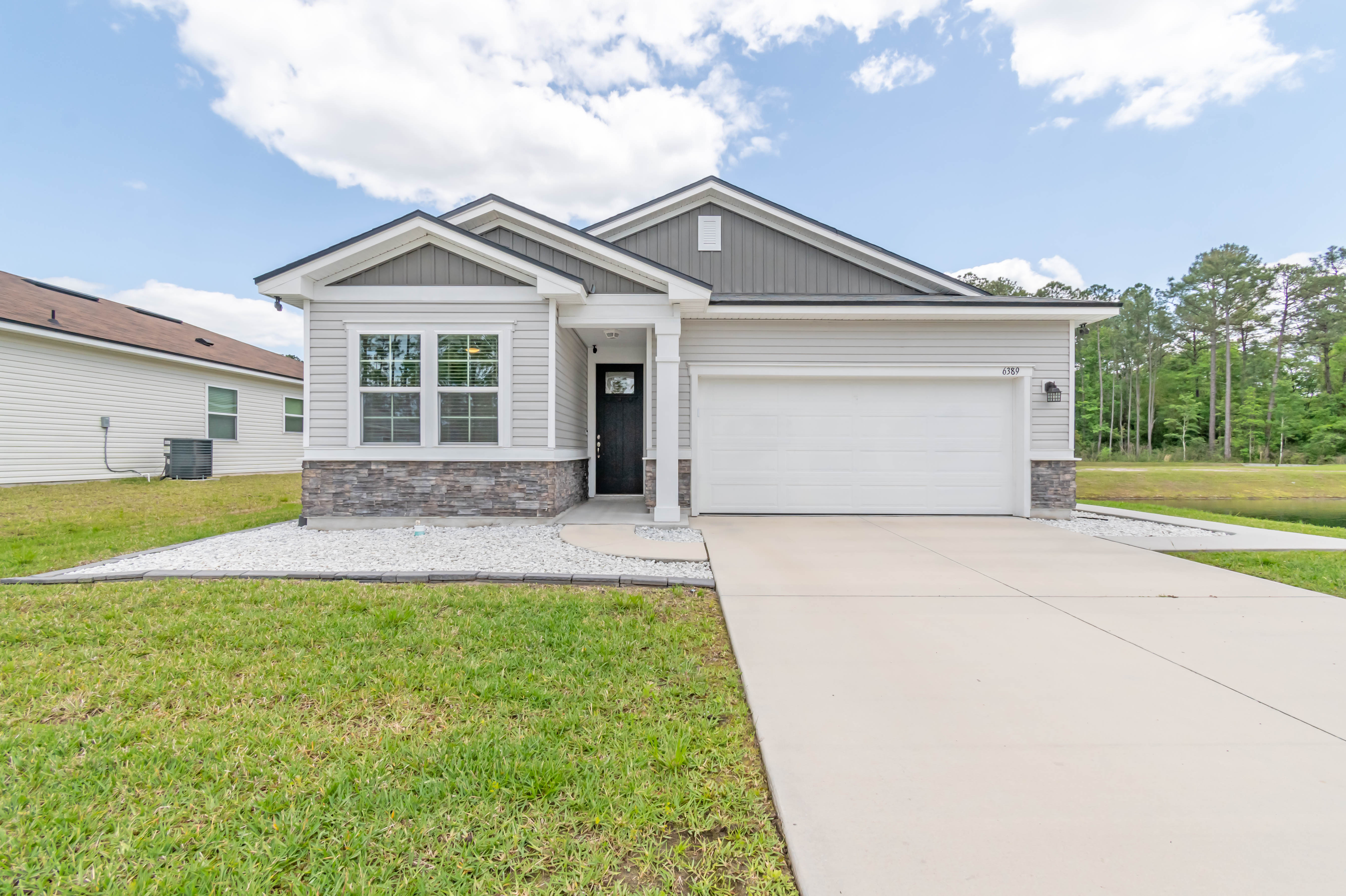 Dazzling Newer Construction Home in Jacksonville! Nestled in a quaint quiet community, this 3BR/2BA, 1,604sqft residence stuns with craftsman architectural influences, stacked stone exterior accents, an organically flowing floorplan, modern color scheme, durable tile flooring, and an open-concept kitchen featuring stainless-steel appliances, granite countertops, and an adjoining family room. Entertainment-ready for year-round gatherings, the fully fenced backyard includes a covered patio and an expansive greenspace. Blissful sleep is found in the primary bedroom with a deep closet and a spa-inspired en suite boasting a barn door, dual sink vanity, and an oversized shower. Other features: 2-car garage, laundry area, near shopping, dining, I-295, and schools, and more! Come See Today!