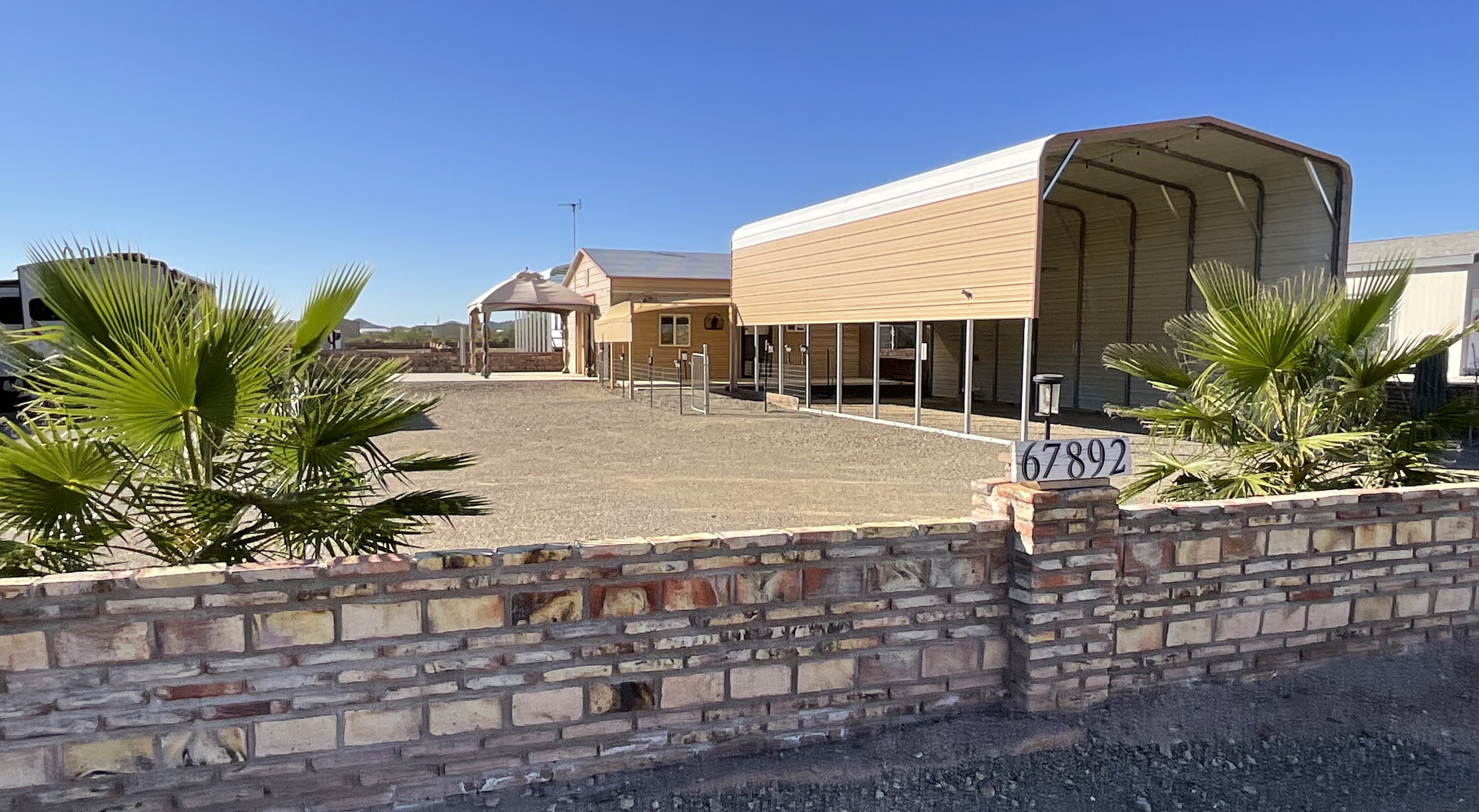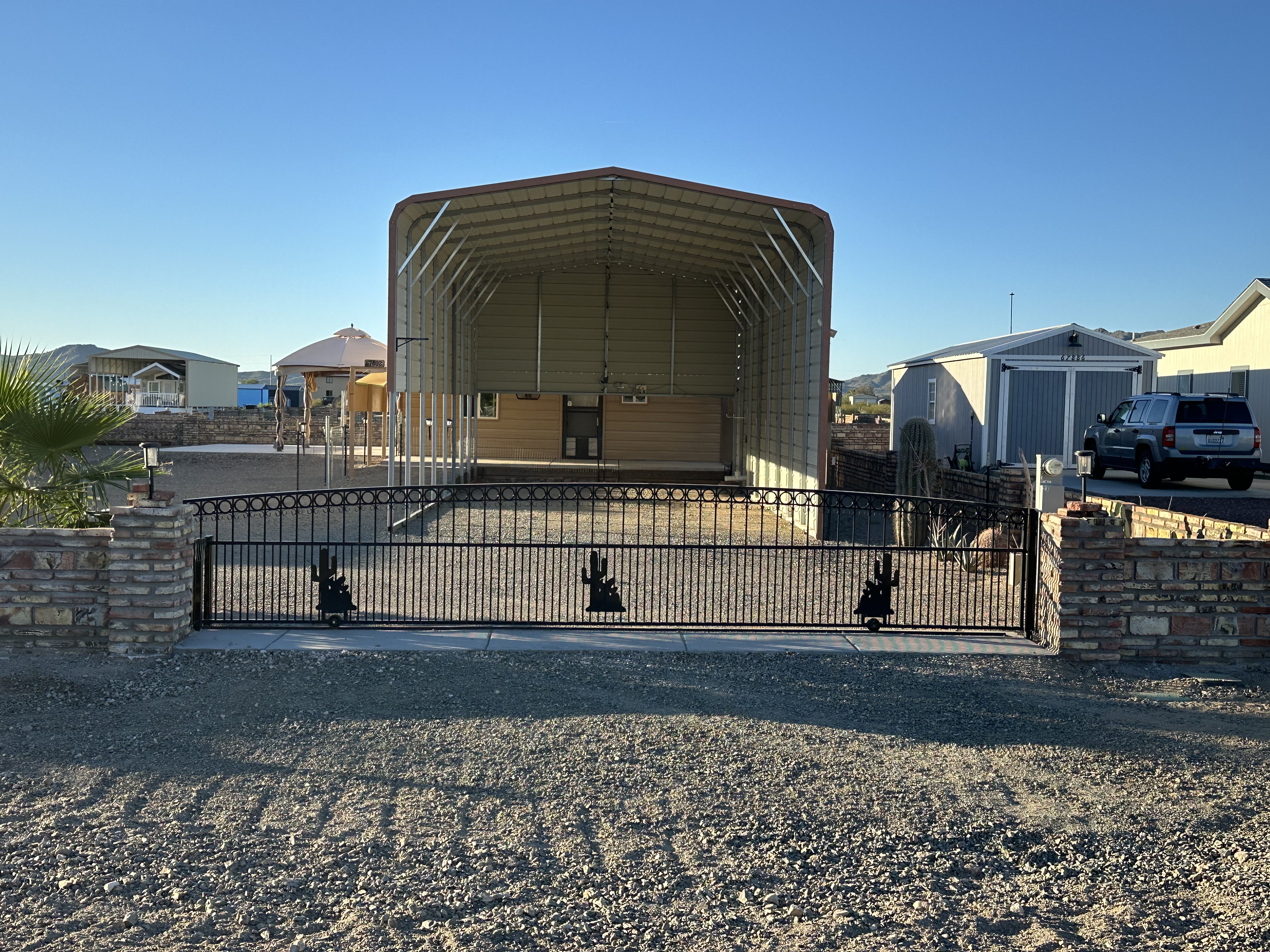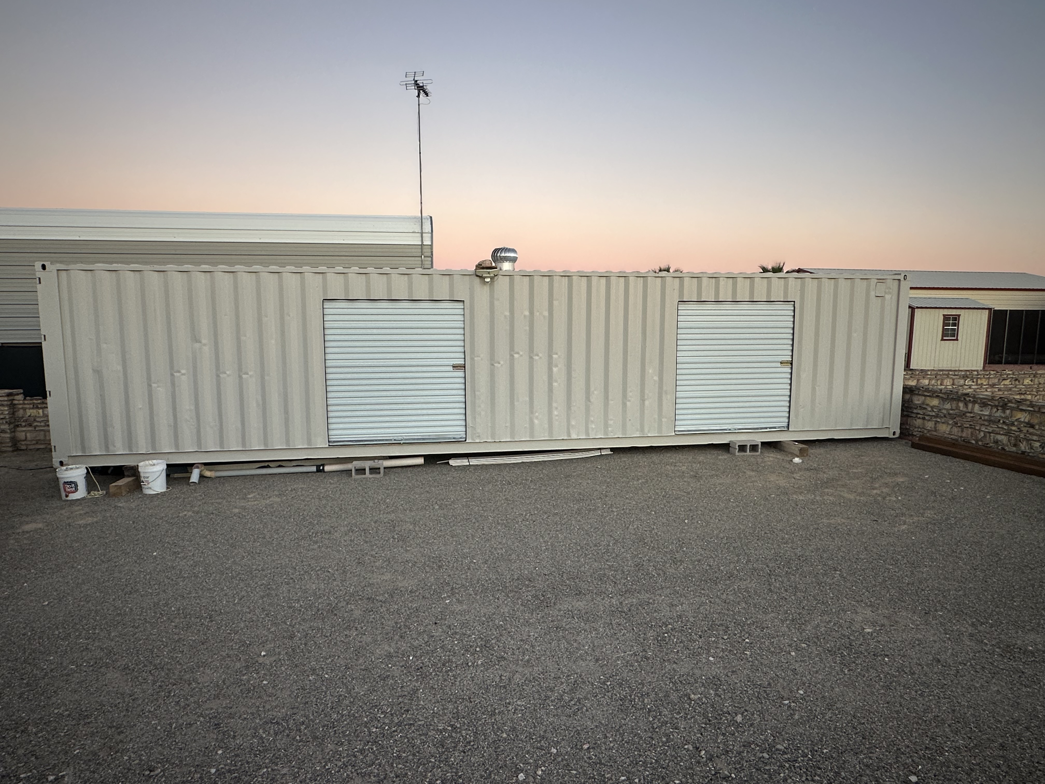New 1 bedroom 1 bath home built in 2022 with full kitchen, large 41’ X 18' X 12' cool cover, and 40’ conex with ventilation and two roll-up doors. Located in the subdivision of Sunshine Acres, this property is a great setup. Flat lot with nearly a quarter acre that is fully-enclosed with decorative brick walls on all sides, two large sliding iron gates and two full RV hookups with 20/30/50 amp service. The home is very energy efficient with spray foam insulation, metal roof and siding, and a vented mini split. There’s a full washer and dryer in an outside closet, and a large concrete slab adjacent to the house for potential future expansion or a garage. No homeowners association, municipal water, city-maintained streets, and fiber optic recently installed in the subdivision.