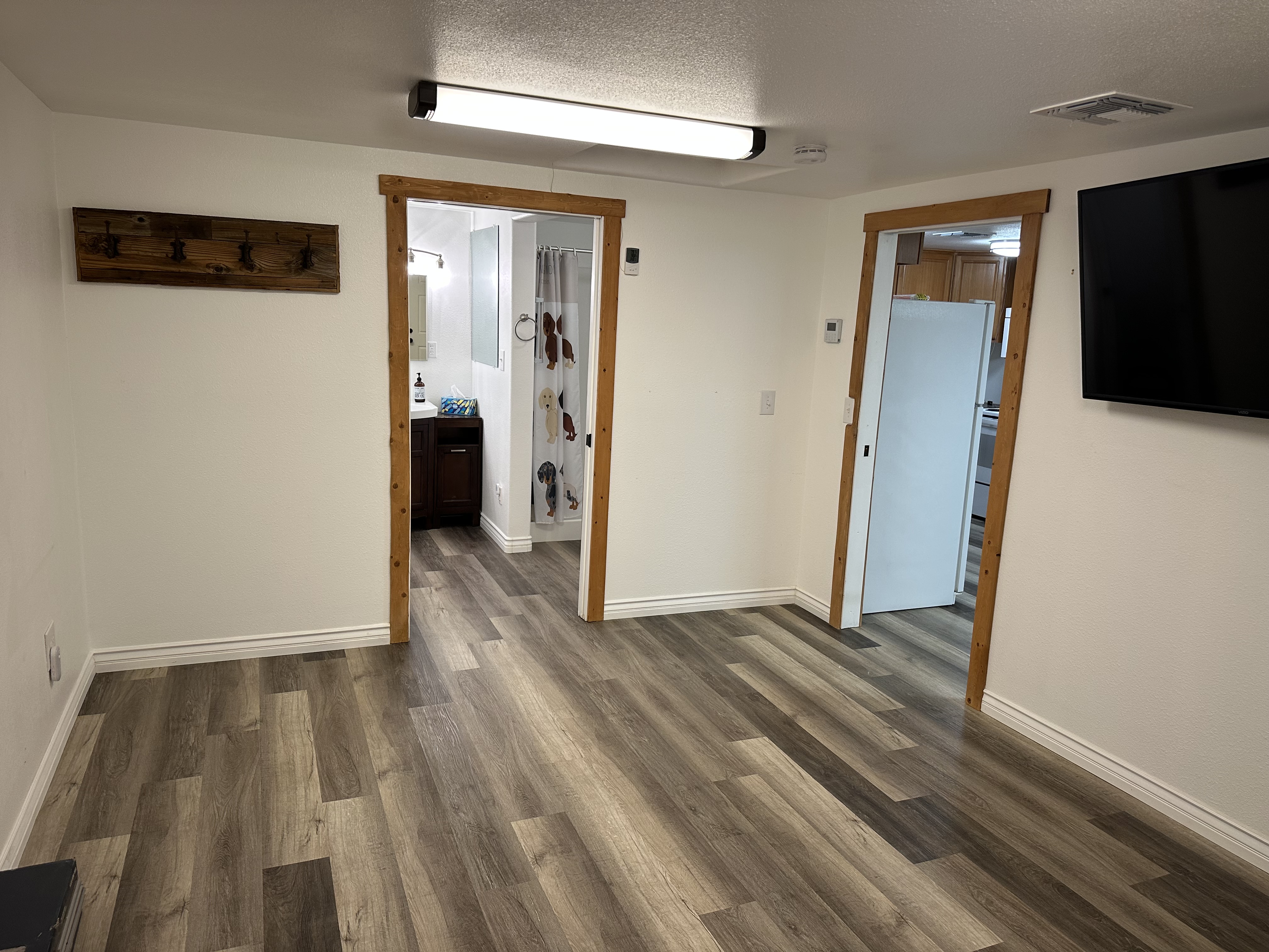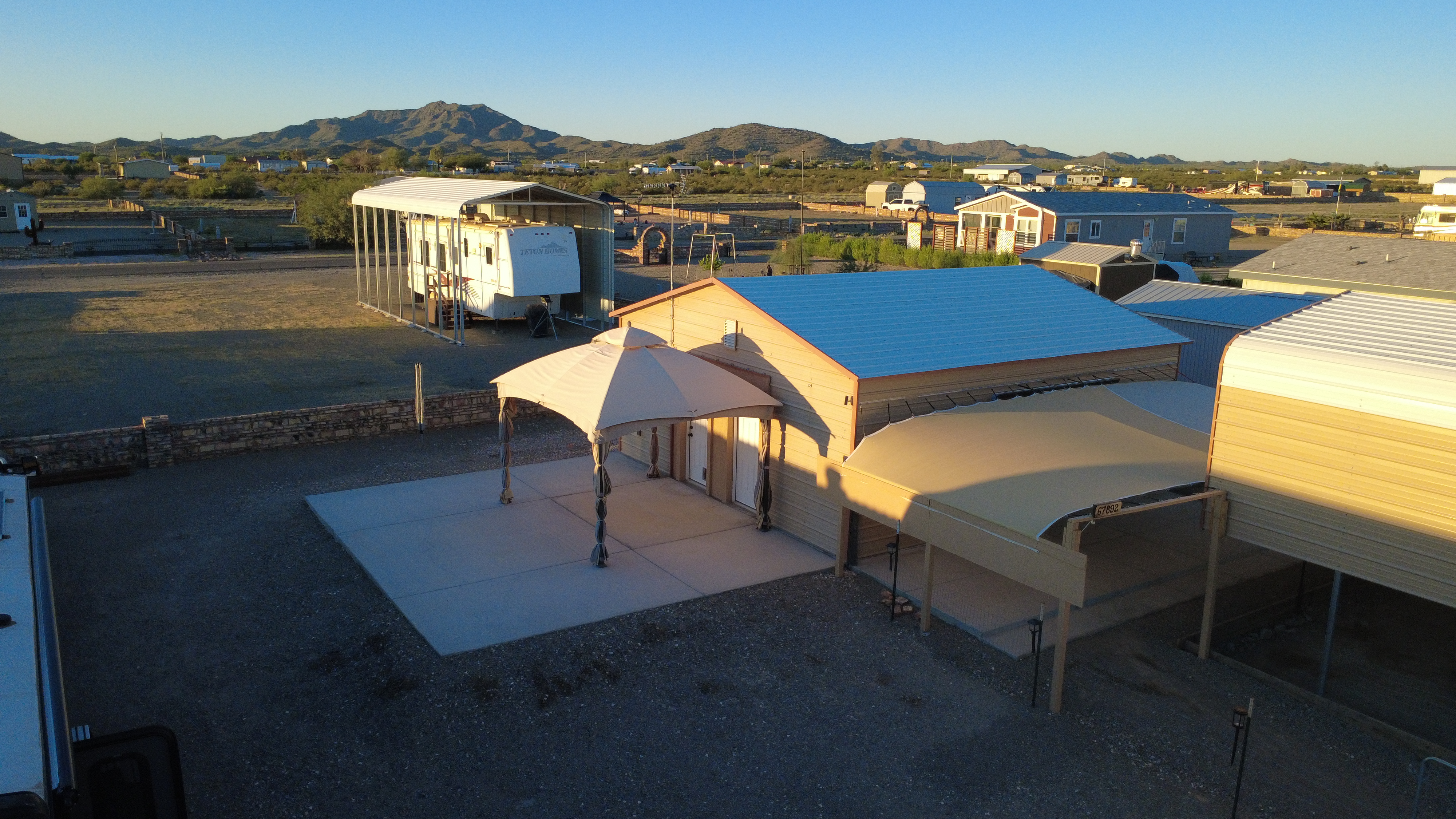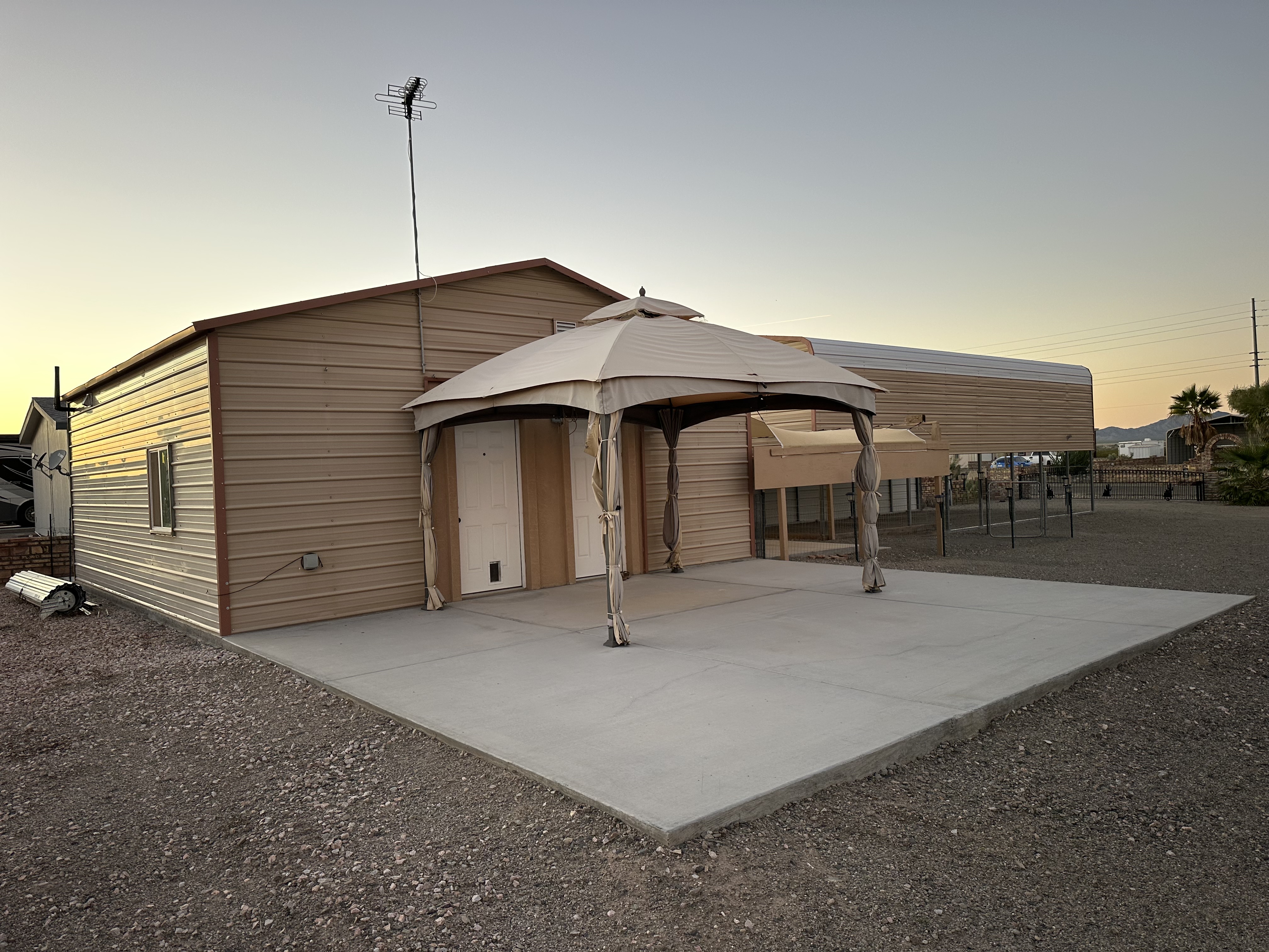 New 1 bedroom 1 bath home built in 2022 with full kitchen, large 41’ X 18' X 12' cool cover, and 40’ conex with ventilation and two roll-up doors. Located in the subdivision of Sunshine Acres, this property is a great setup. Flat lot with nearly a quarter acre that is fully-enclosed with decorative brick walls on all sides, two large sliding iron gates and two full RV hookups with 20/30/50 amp service. The home is very energy efficient with spray foam insulation, metal roof and siding, and a vented mini split. There’s a full washer and dryer in an outside closet, and a large concrete slab adjacent to the house for potential future expansion or a garage. No homeowners association, municipal water, city-maintained streets, and fiber optic recently installed in the subdivision.