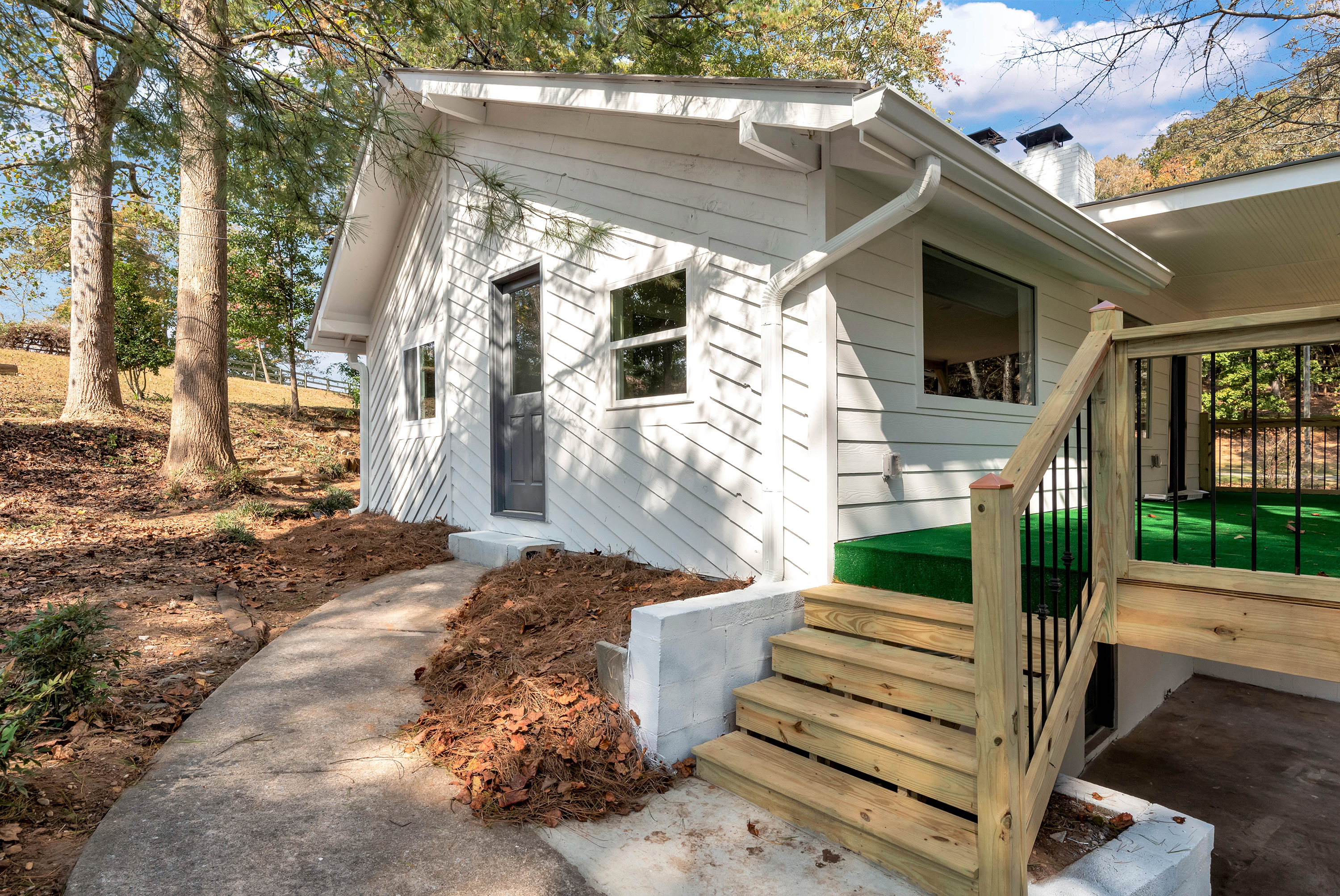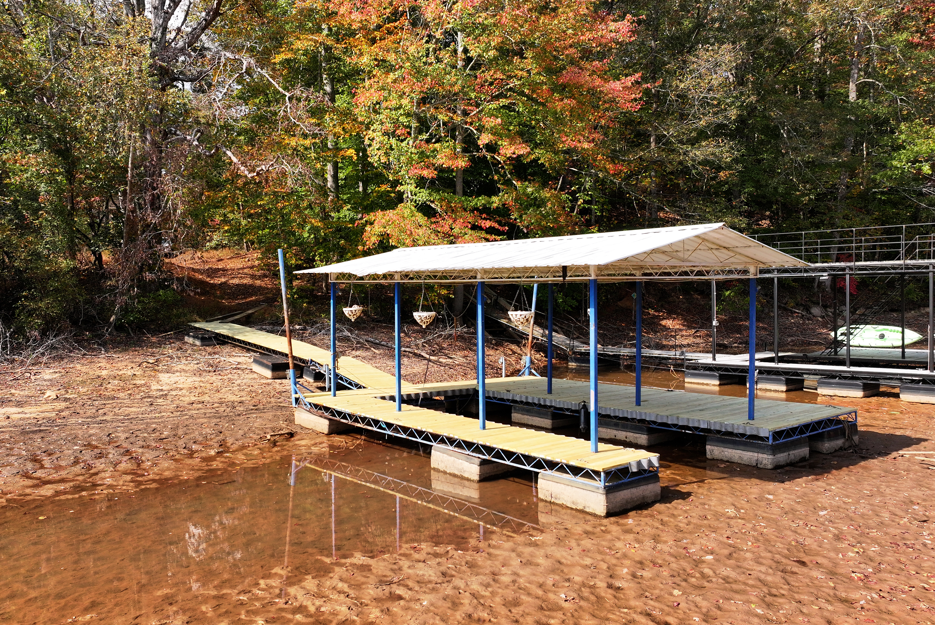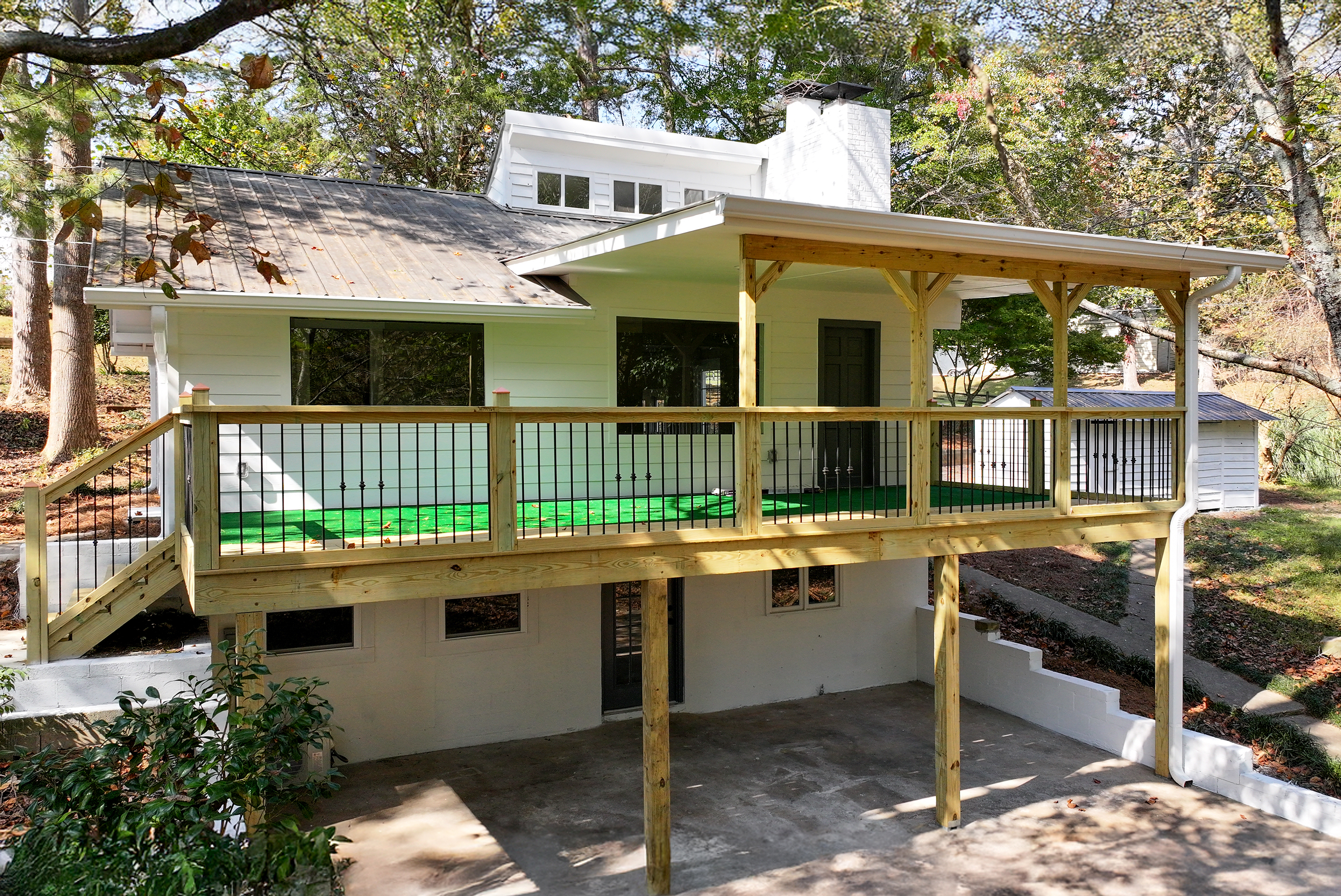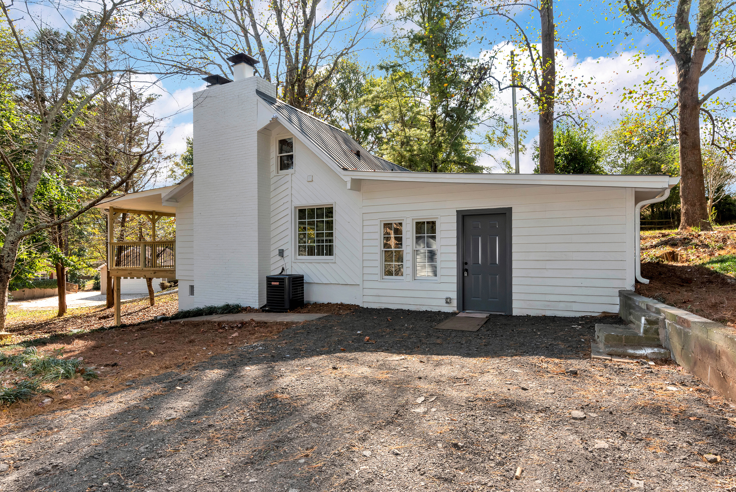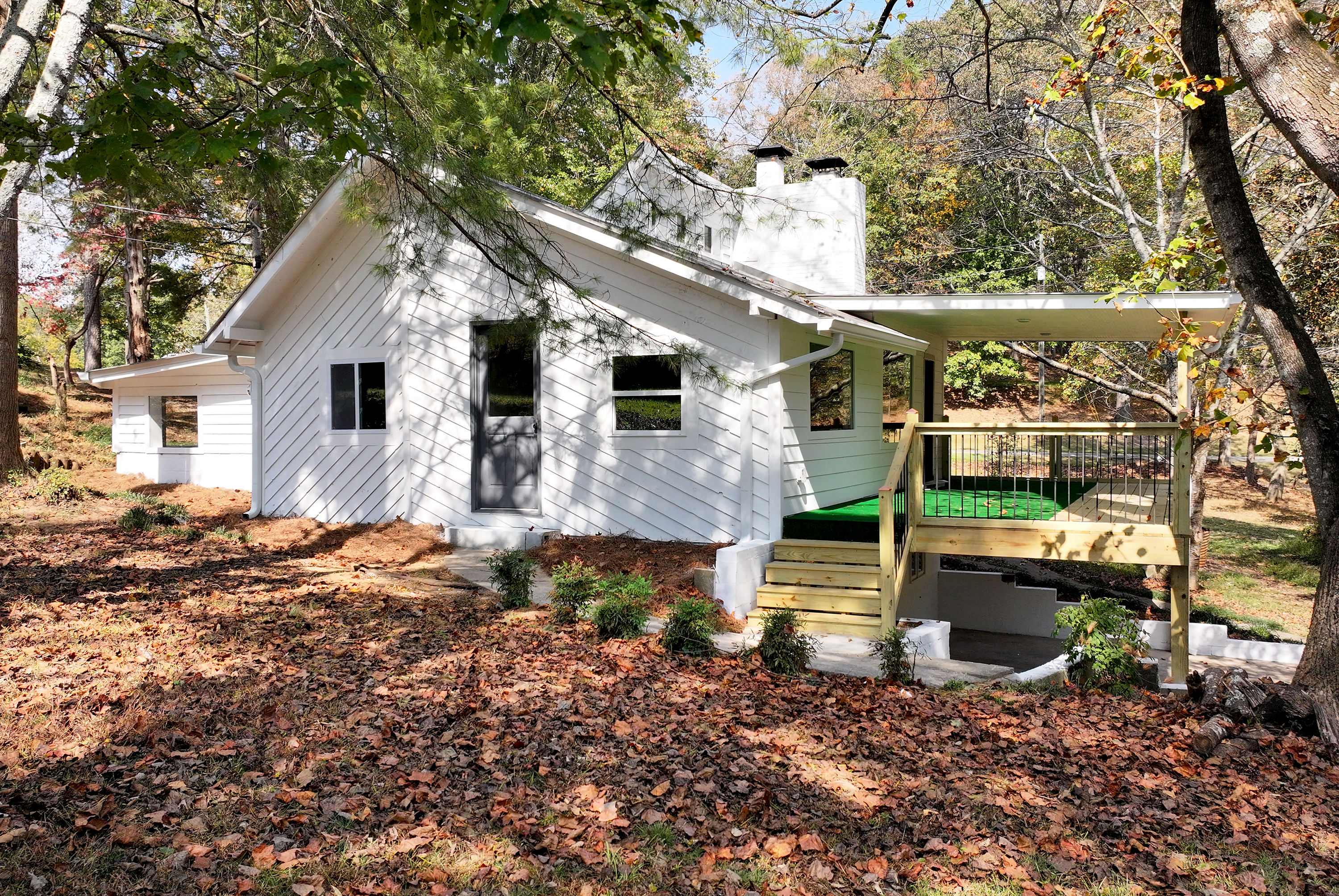Home is charming bungalow with tin roof on lake lanier permitted dock fireplace deck 2/2 totally rehabed all new home! 1 acre beautiful lot
