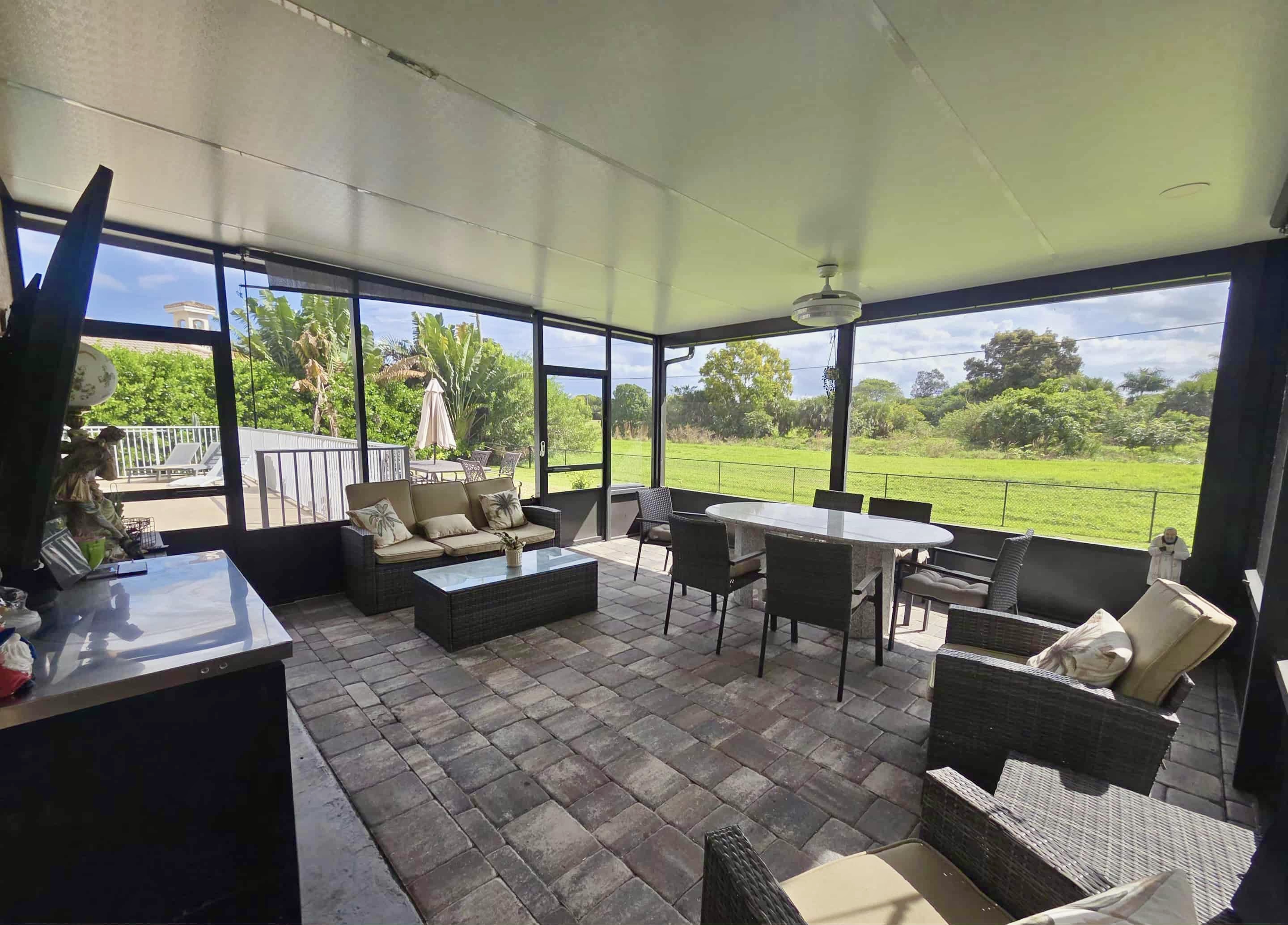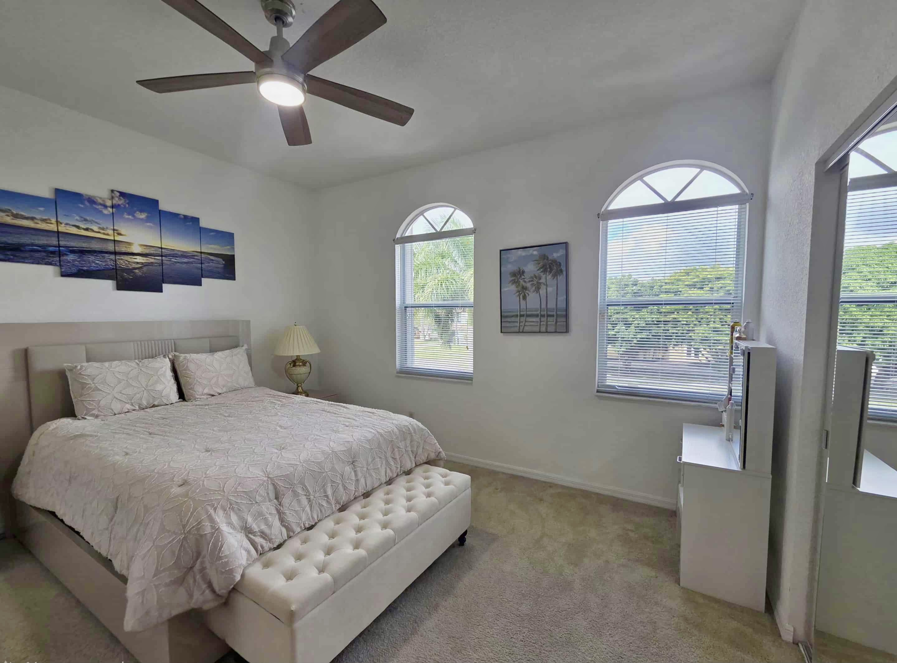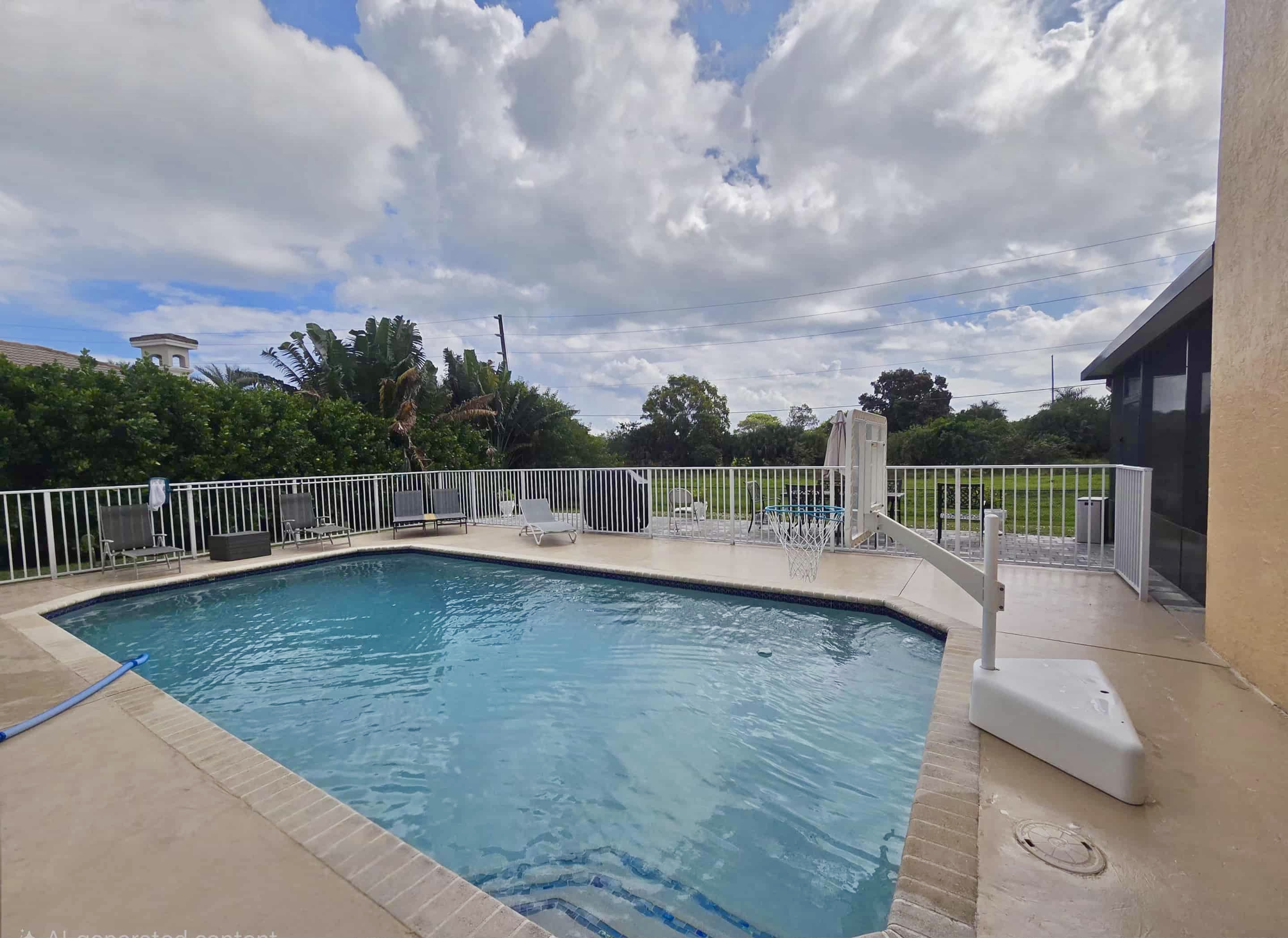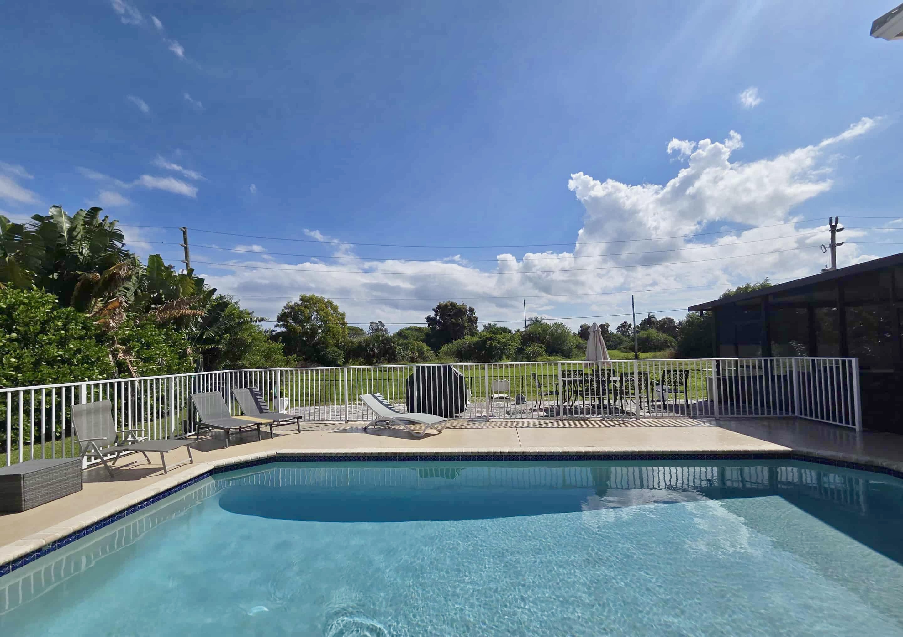 Step into a home designed for comfort and exceptional outdoor living. This five-bedroom, four-bath property offers thoughtful upgrades, including a renovated bathroom, an expanded paver driveway, and a newly added screened-in patio overlooking the sparkling pool, updated paver patio, and lush greenery. The first-floor primary suite includes two spacious closets, a soaking tub, separate shower, dual sinks, and sliding doors leading directly to the pool. Upstairs, you’ll find four additional bedrooms, including two with en suites. Located in a no-association neighborhood just minutes from beaches and schools, the home also showcases a mature banana tree and a newly added storage shed.