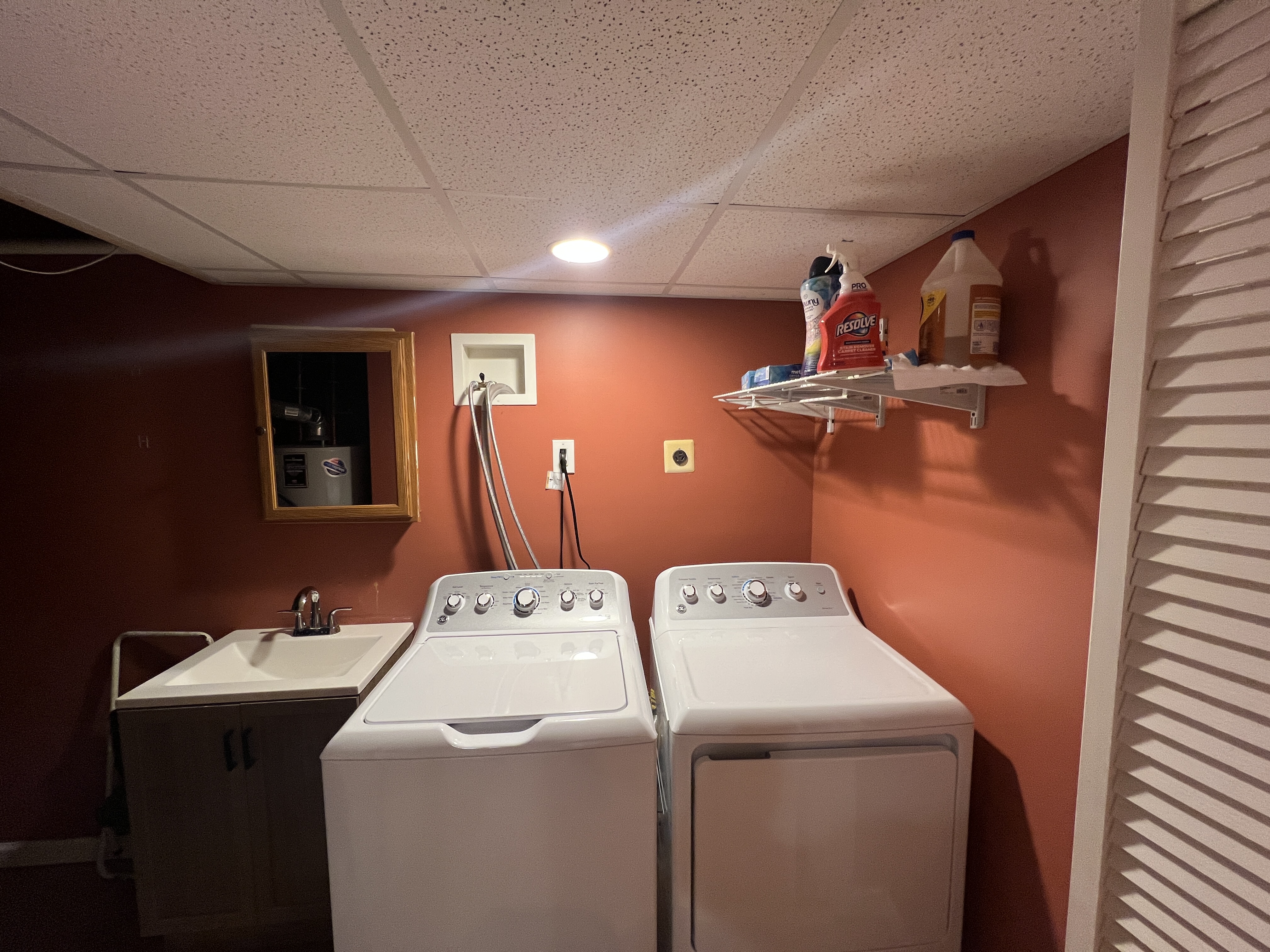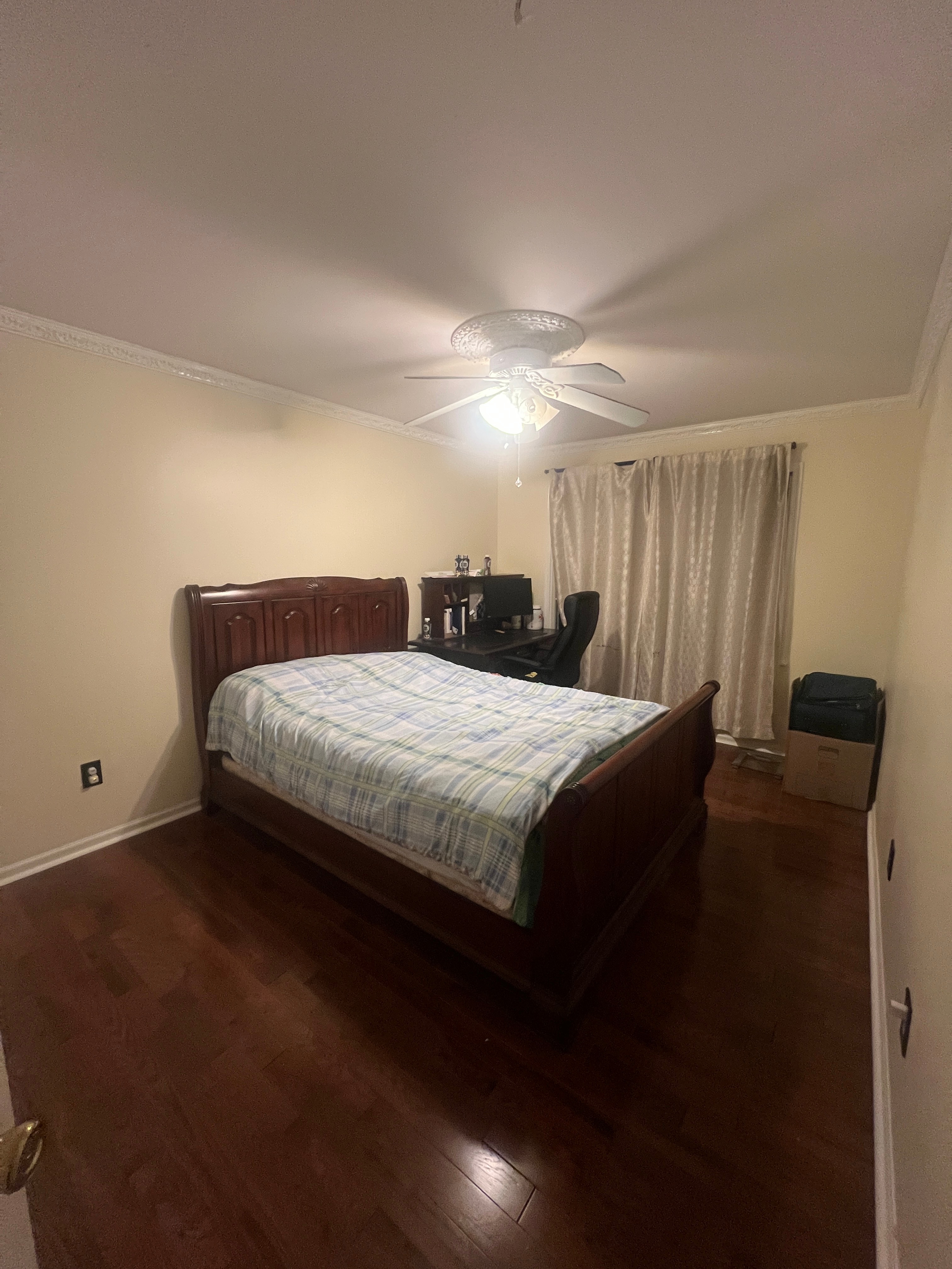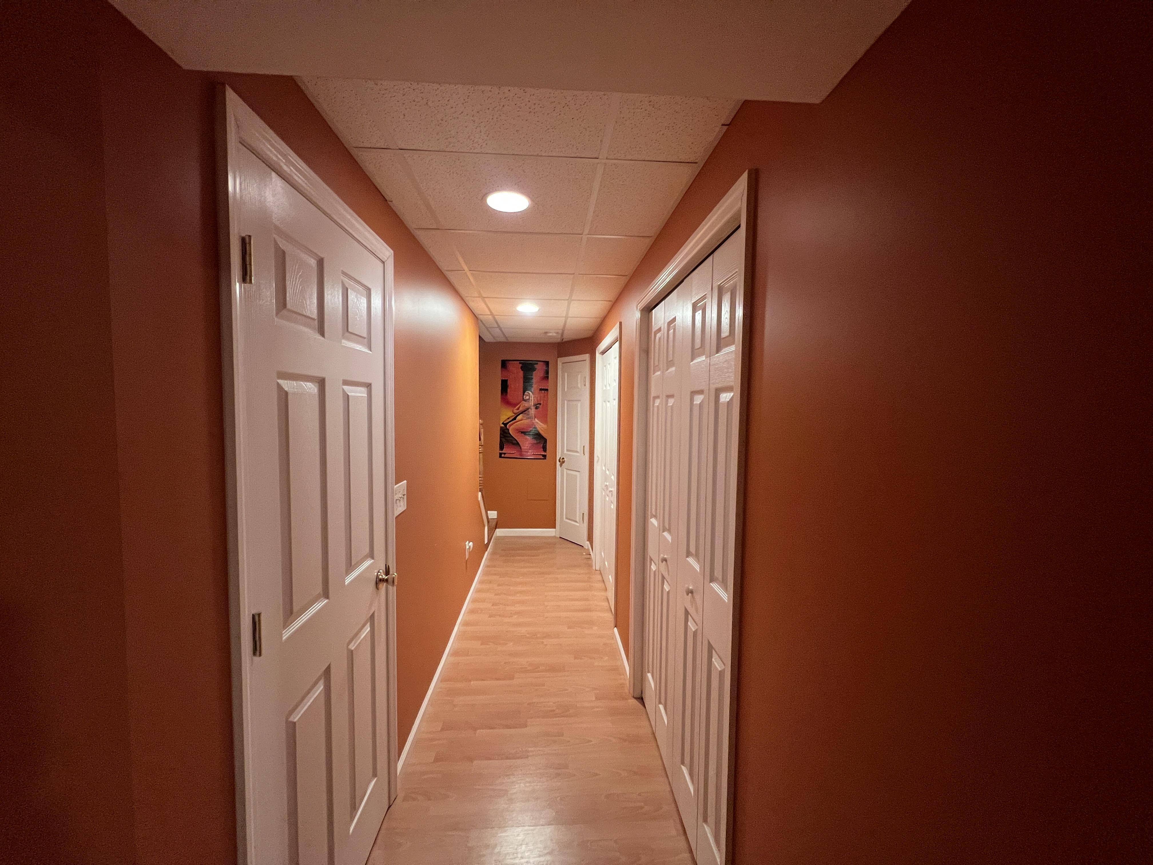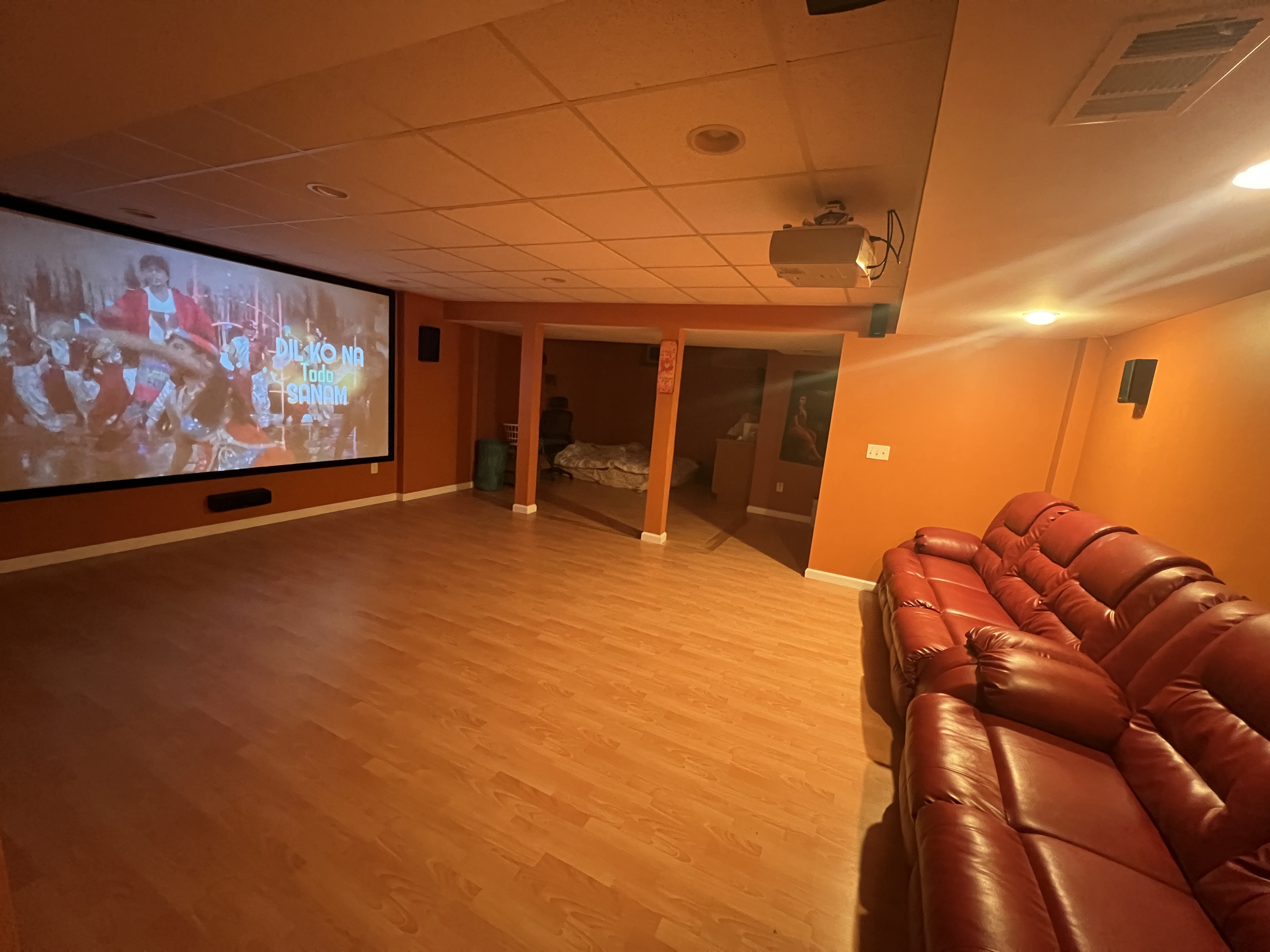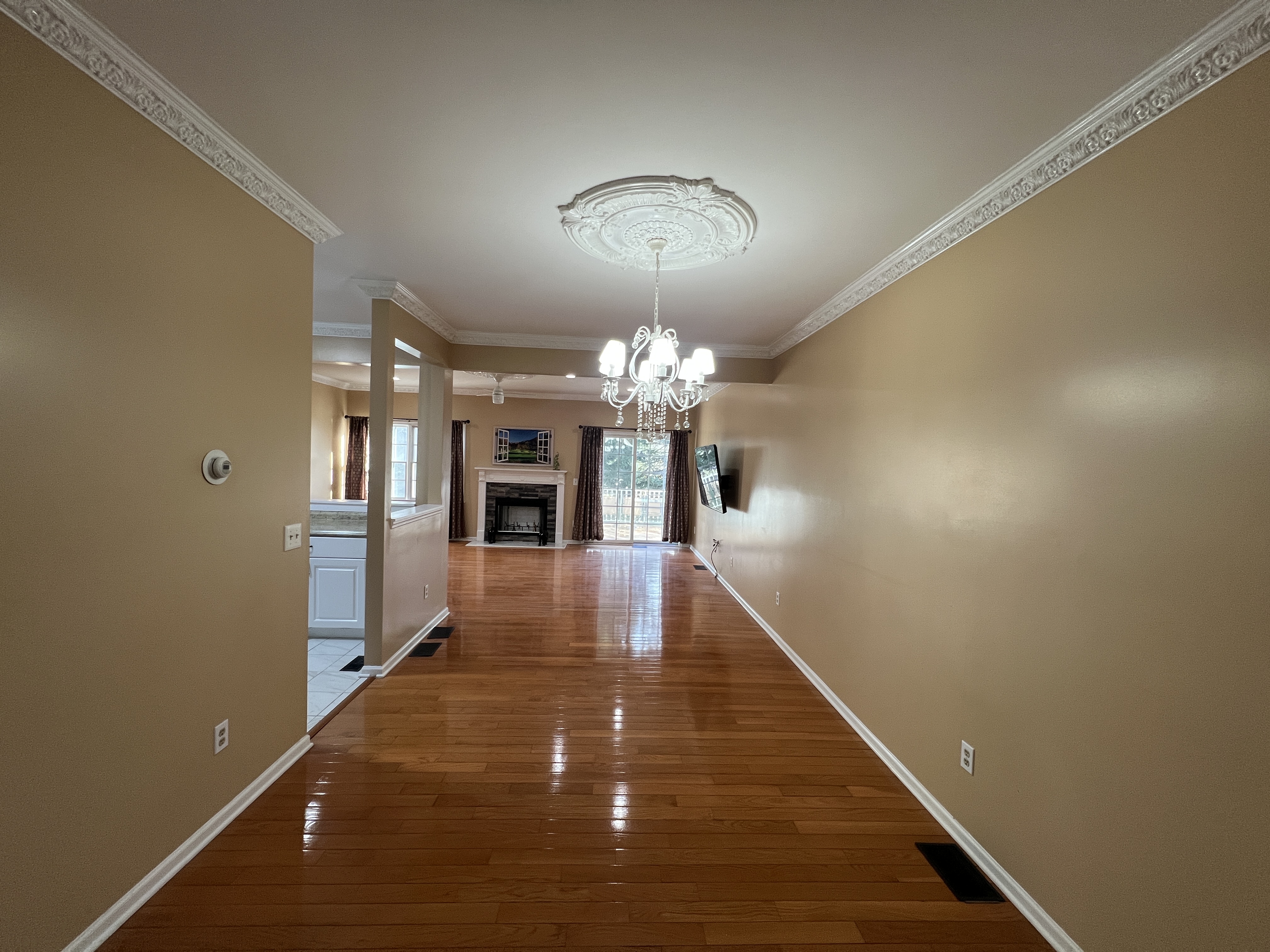 Inside, the main level features elegant hardwood flooring, crown molding, and recessed lighting, creating a warm and modern atmosphere. The upgraded kitchen includes stainless-steel appliances, extended cabinetry, and plenty of storage. The second level offers three spacious bedrooms and two full bathrooms. The primary suite is fully upgraded, and all bedrooms include new hardwood flooring, crown molding, and ceiling fans for added comfort. The finished basement elevates the home with a dedicated home theater, perfect for entertainment. Additional updates include a new water heater and new washer & dryer. A standout feature is the attached garage, equipped with extensive cabinetry for extra storage. With a new roof, fresh interior paint, and thoughtful upgrades throughout, this stunning home is truly move-in ready offering comfort, convenience, and style in one complete package.