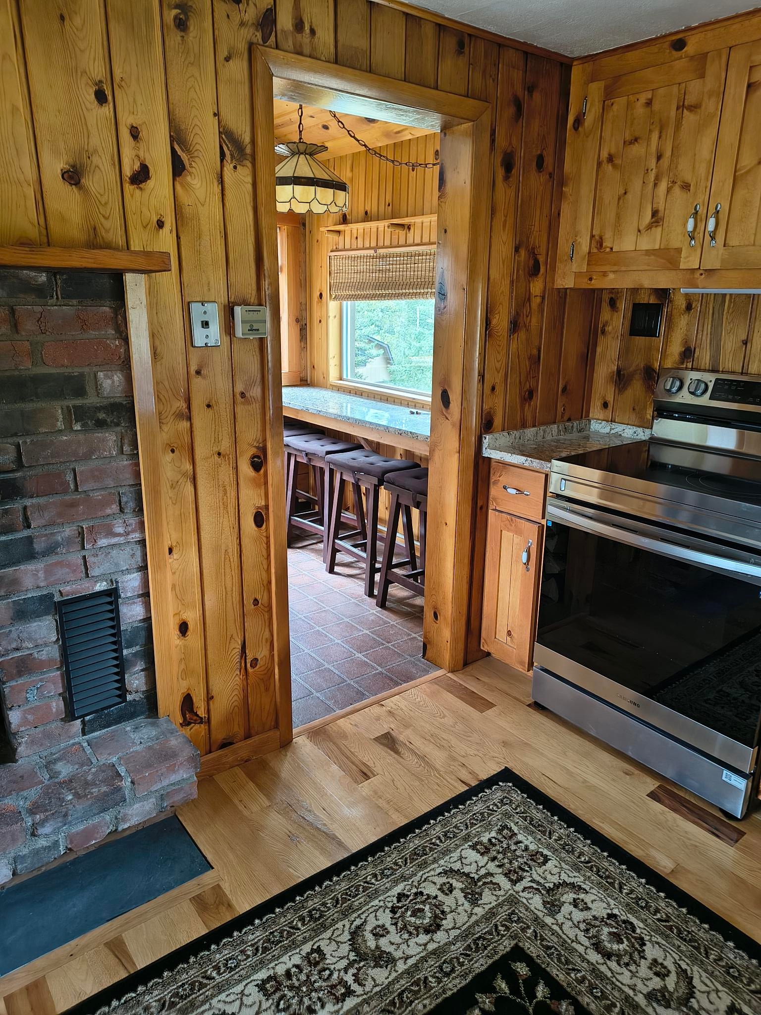Single story cottage with sleeping loft -- Recently updated:   Living Room - Full Kitchen Open Concept 11.6 X 15.10 ,    Fireplace with Wood Burning insert,
