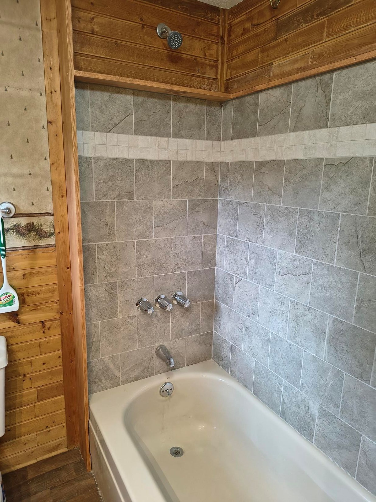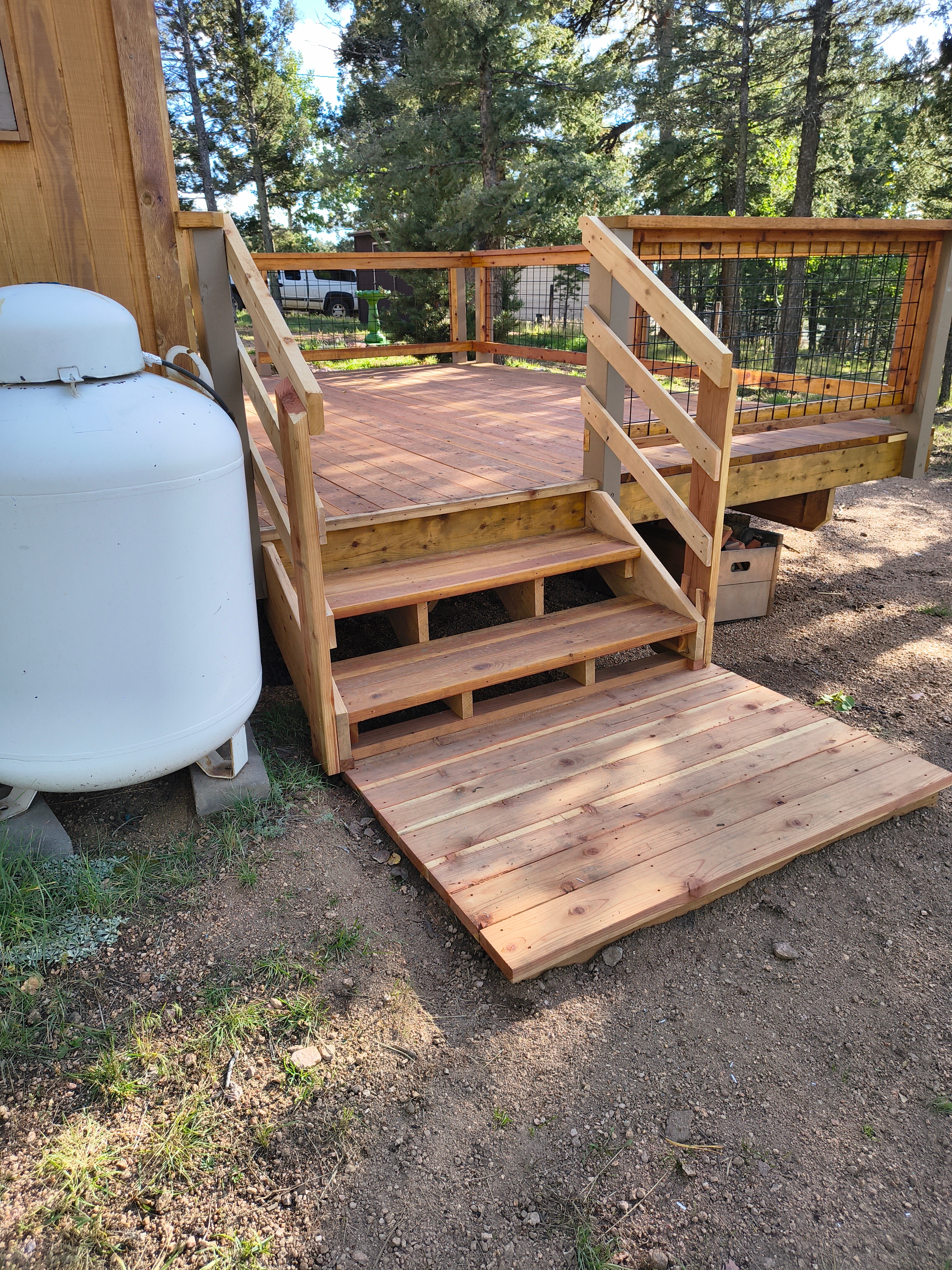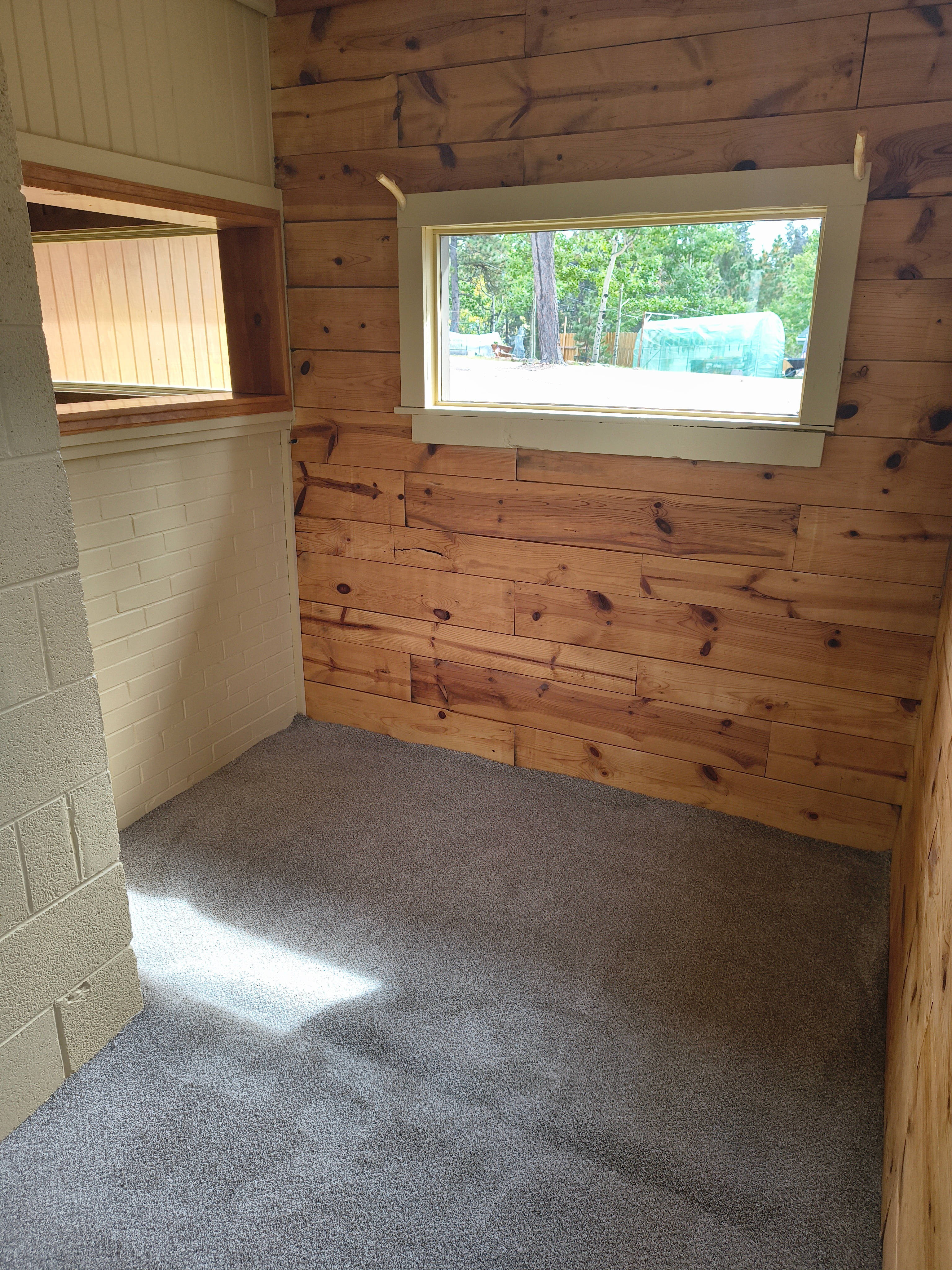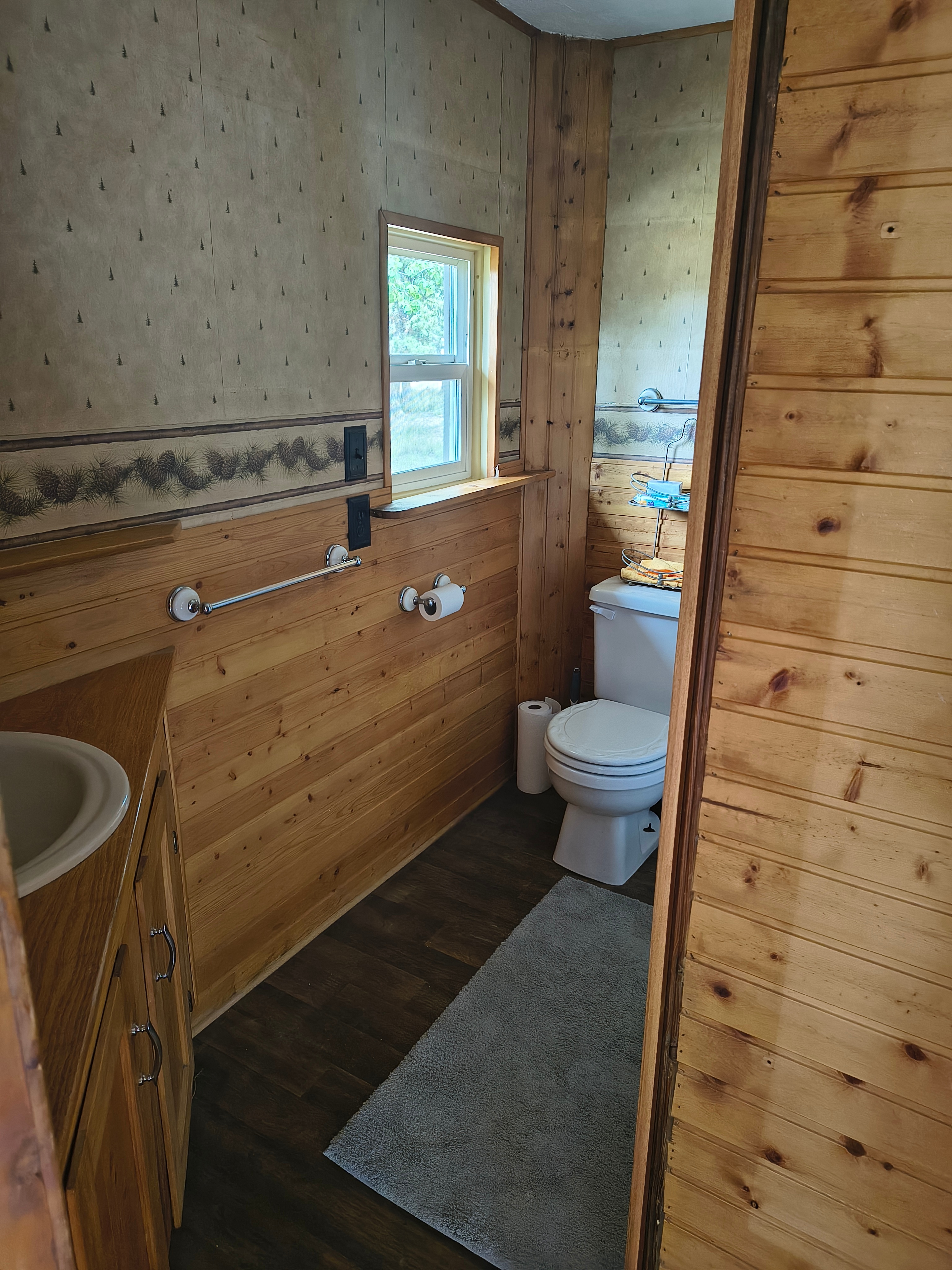 Recent updates:   New genuine redwood 12 X 16 deck with side entrance to cabin.   Interior;   Kitchen new stainless-steel stove and refrigerator, granite countertops, granite eating bar with stools, situated in nook right off kitchen. Close to entrance to the deck.   Bathroom, newly tiled shower with bathtub.