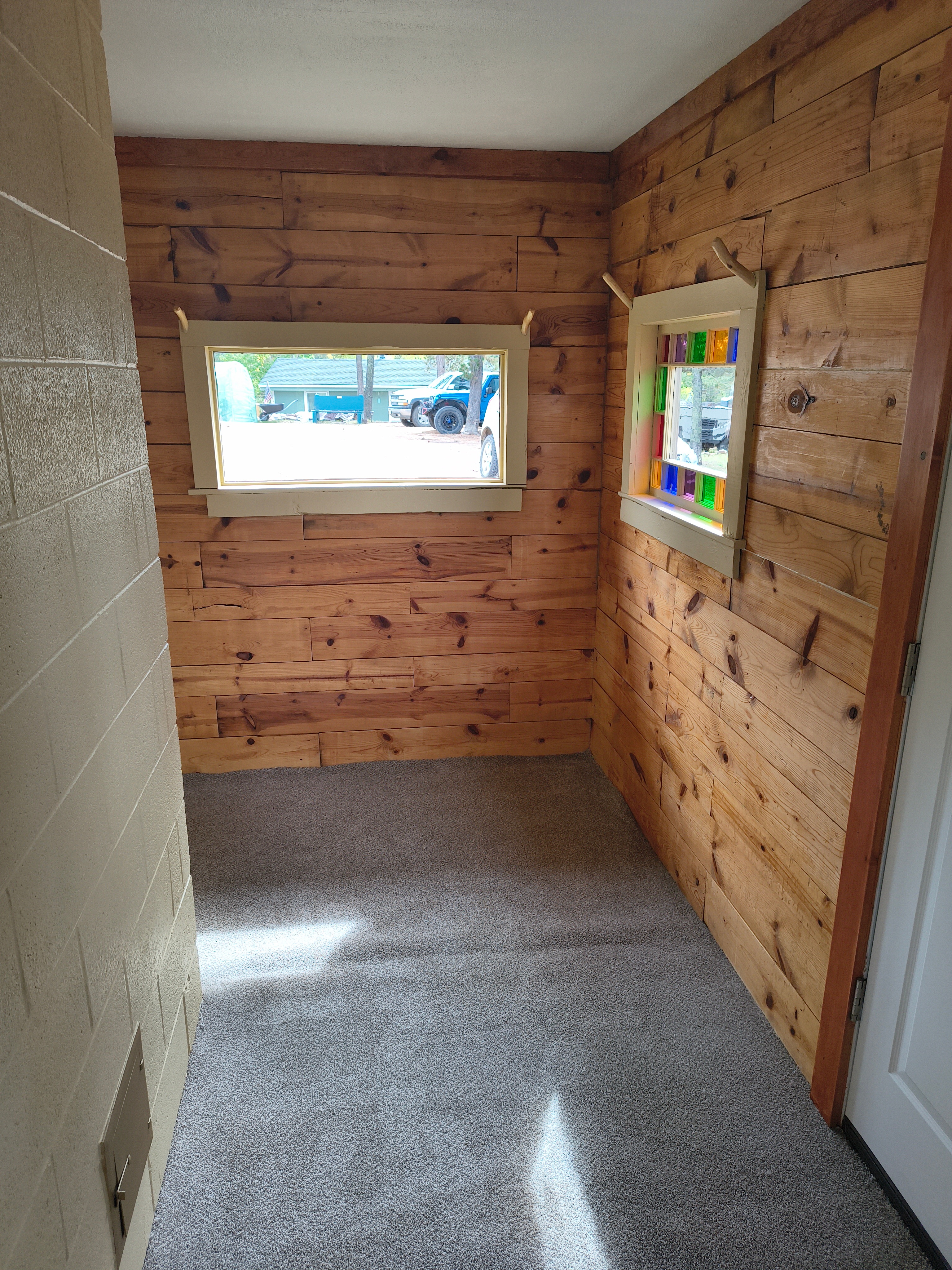 Dining Nook 7 X 6 ,  1 Bedroom 8 X 7.6,   Sleeping Loft 5 X 8,  1 Full Bathroom 6 X 8,   Bonus Room 60 sq ft,   Outdoor Storage Shed 12X8, Knotty pine walls in Living Room/Kitchen and Bedroom.  Large Deck just waiting for entertaining guests, or just a quiet morning with a cup of coffee, watching the deer and wildlife and enjoying the outdoor beauty.